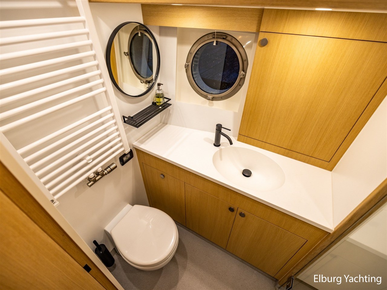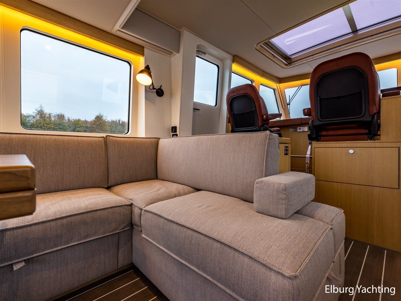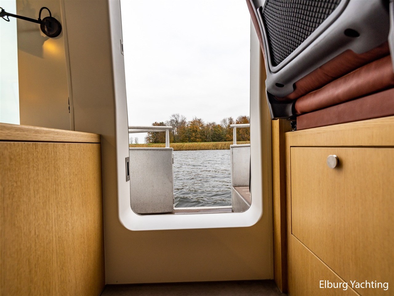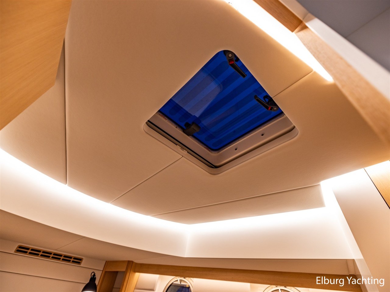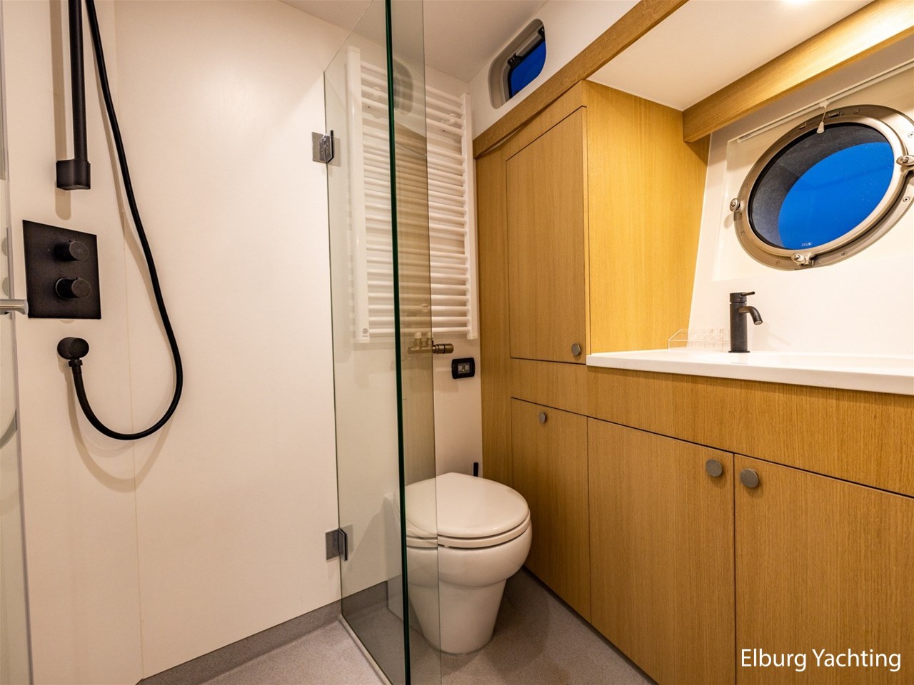 Het jacht wat u ter inspiratie kunt bezichtigen beschikt over : Achterdek en salon gelijkvloers, zij-ingang, elektrisch schuifdak bij stuurhut ( ca. 1.10 x 1.80 m, zij-ingang in reling, grote openslaande deuren naar de kuip om de salon en buitendek, dekdouche met warm/koud water bij zwemplateau, ruime leefomgeving in salon, buiten verlichting op tredes , Garmin navigatiepakket, 2 x 16" scherm, CTCV Camerasysteem voor achterdek en machinekamer, Dockmate - 2 motoren en boegschroef, Humphree interscepter set (4 x) met roll en pitch demping software + carbon vinnen, 4 x zonnepanelen op het achterdak, Fusion radio + 2 x speakers salon en 2 x cockpit (iPhone compatible), Miele was-droogcombinatie. Siemens vaatwasser, Ocean Air horren in eigenaar hut bij dekluik, shades/gordijnen in salon, lederen bekleding van de dashboardunit, elektrische lift voor vaarstoel- en passagiersstoel voor optimaal zicht, Lampe Gras zwarte design lampen, Frost zwarte douche armaturen, elektrische lift voor eettafel om te transformeren naar salon/lounge tafel, Kvadrat bekleding, geïntegreerde aluminium bolders, aluminium tredeplaat in voorroef, Aluminium geïntegreerde trap naar dak op bovenbouw, machinekamer akoestisch geïsoleerd, 3 x ruitenwissers met sproeisysteem. Lewmar dekluiken, Marlan tops, douche en toilet gescheiden voor gastenhut, Prebit leeslampjes, met USB aansluiting en dimbaar, Prebit plafondlampen dimbaar in rood/wit, Flatscreen 43" TV + lift, verborgen in salon rugleuning. In exclusieve samenwerking met Yachtfull International.