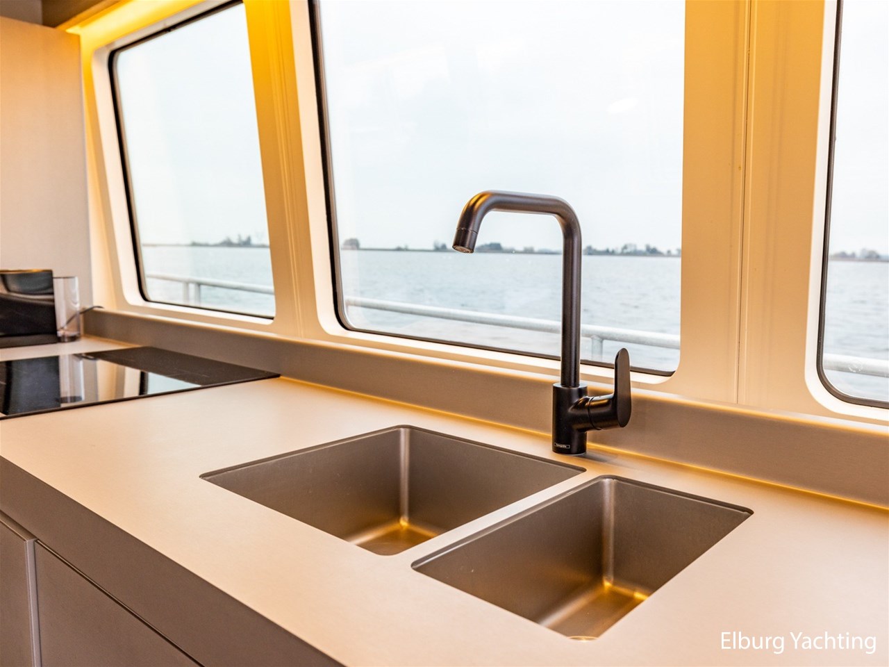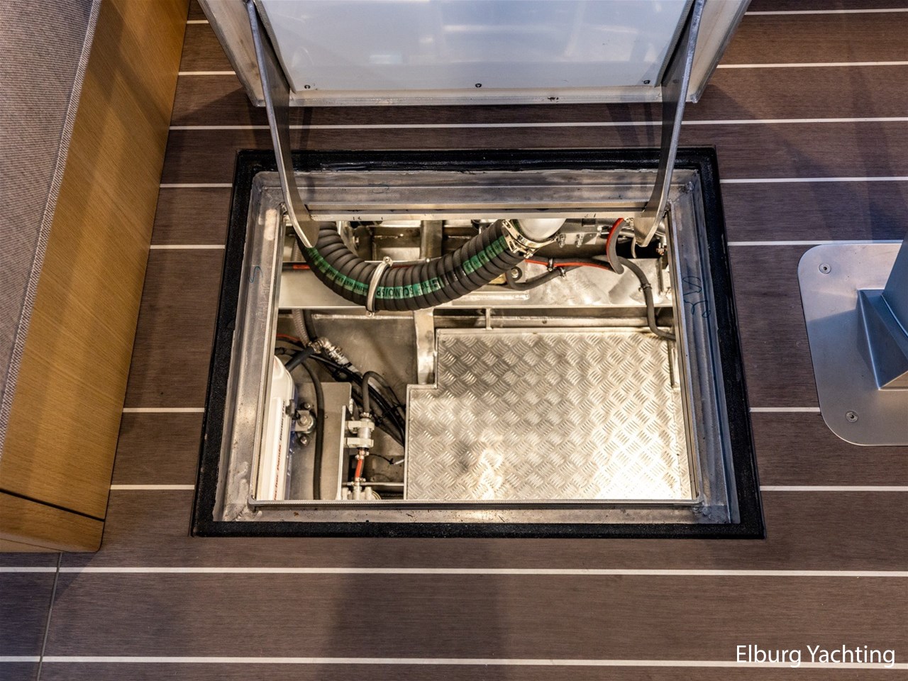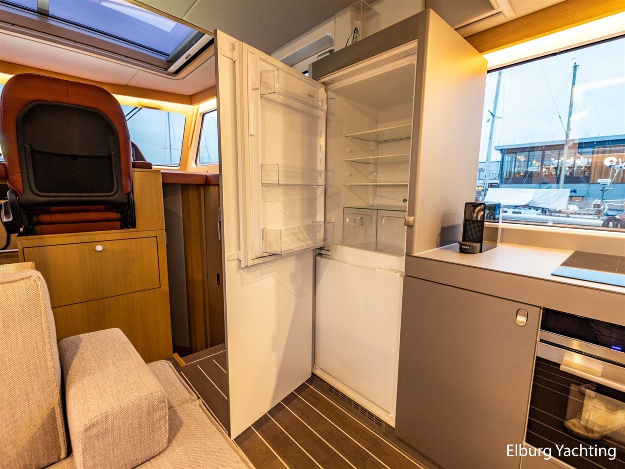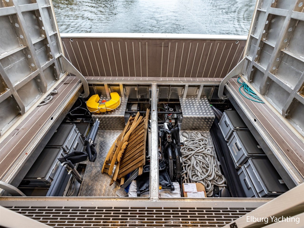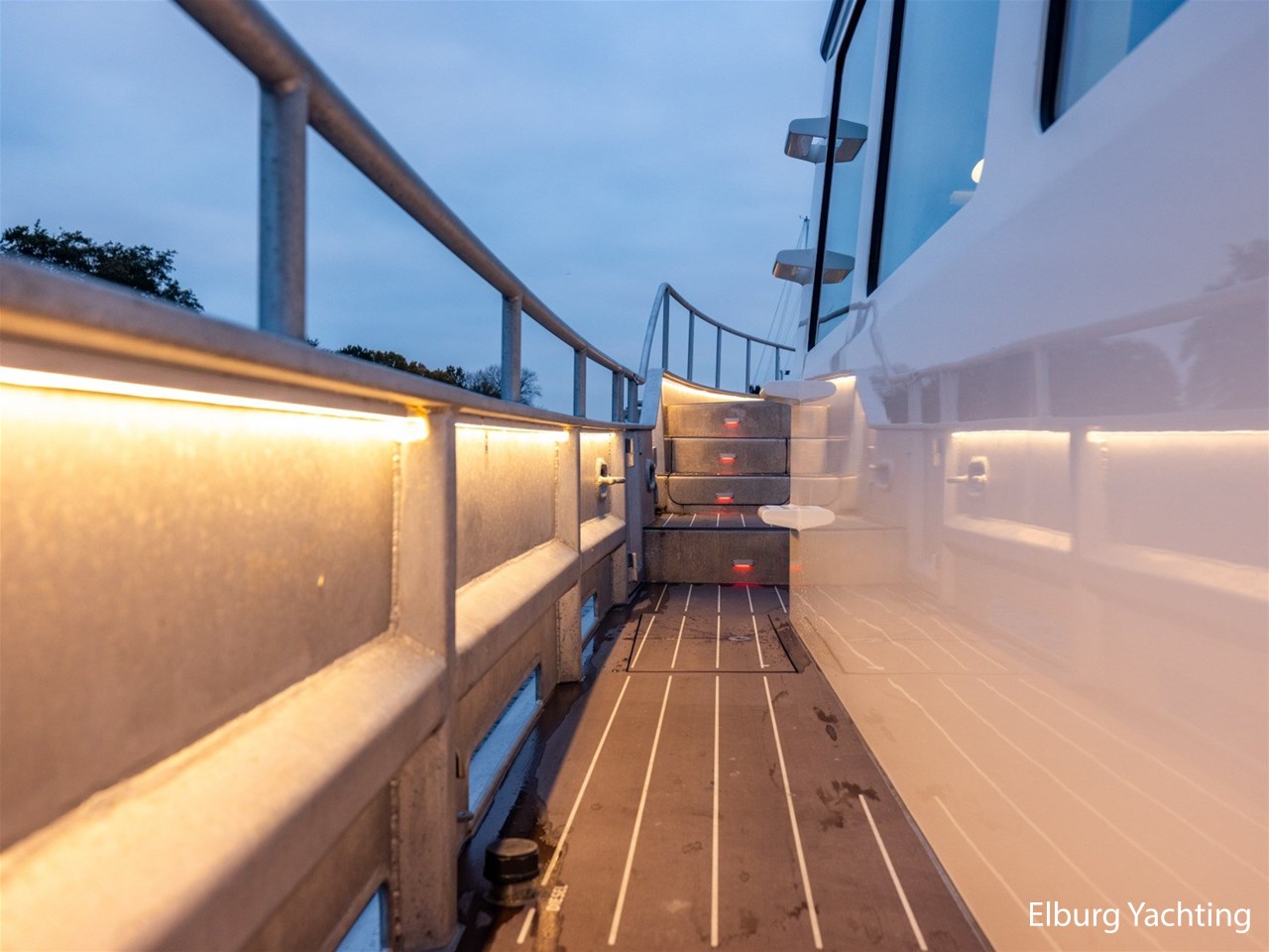 Het jacht wat u ter inspiratie kunt bezichtigen beschikt over : Achterdek en salon gelijkvloers, zij-ingang, elektrisch schuifdak bij stuurhut ( ca. 1.10 x 1.80 m, zij-ingang in reling, grote openslaande deuren naar de kuip om de salon en buitendek, dekdouche met warm/koud water bij zwemplateau, ruime leefomgeving in salon, buiten verlichting op tredes , Garmin navigatiepakket, 2 x 16" scherm, CTCV Camerasysteem voor achterdek en machinekamer, Dockmate - 2 motoren en boegschroef, Humphree interscepter set (4 x) met roll en pitch demping software + carbon vinnen, 4 x zonnepanelen op het achterdak, Fusion radio + 2 x speakers salon en 2 x cockpit (iPhone compatible), Miele was-droogcombinatie. Siemens vaatwasser, Ocean Air horren in eigenaar hut bij dekluik, shades/gordijnen in salon, lederen bekleding van de dashboardunit, elektrische lift voor vaarstoel- en passagiersstoel voor optimaal zicht, Lampe Gras zwarte design lampen, Frost zwarte douche armaturen, elektrische lift voor eettafel om te transformeren naar salon/lounge tafel, Kvadrat bekleding, geïntegreerde aluminium bolders, aluminium tredeplaat in voorroef, Aluminium geïntegreerde trap naar dak op bovenbouw, machinekamer akoestisch geïsoleerd, 3 x ruitenwissers met sproeisysteem. Lewmar dekluiken, Marlan tops, douche en toilet gescheiden voor gastenhut, Prebit leeslampjes, met USB aansluiting en dimbaar, Prebit plafondlampen dimbaar in rood/wit, Flatscreen 43" TV + lift, verborgen in salon rugleuning. In exclusieve samenwerking met Yachtfull International.