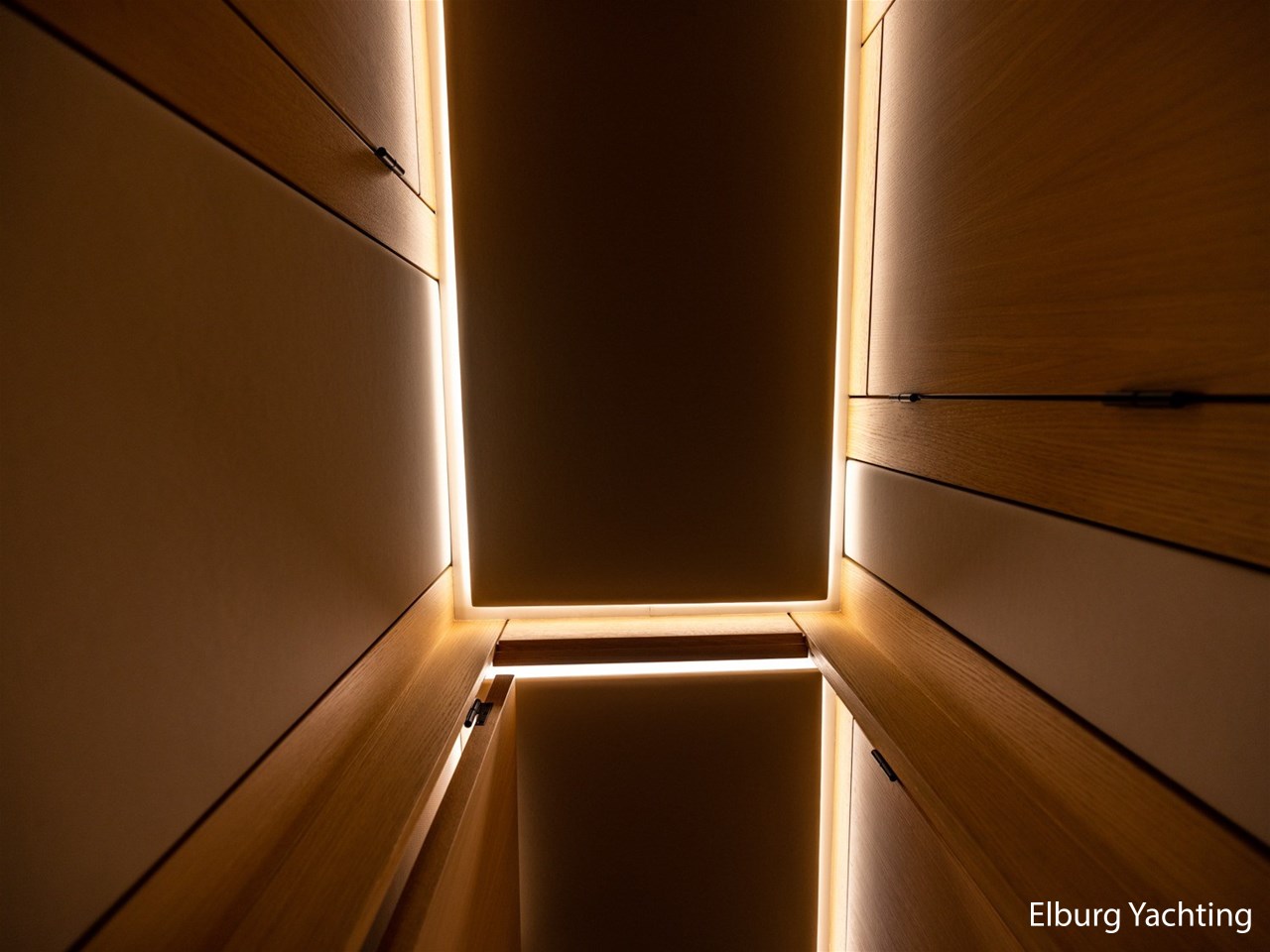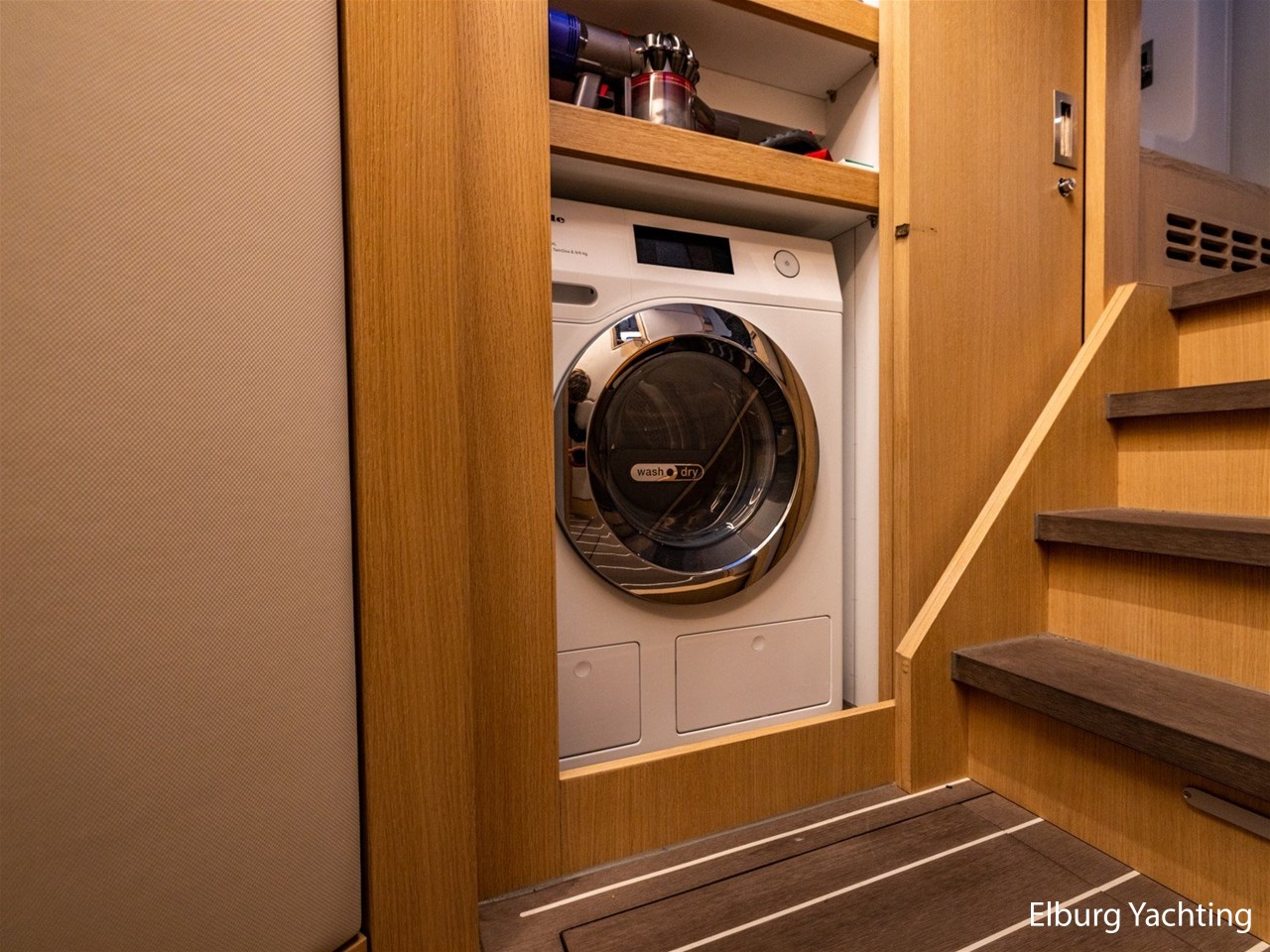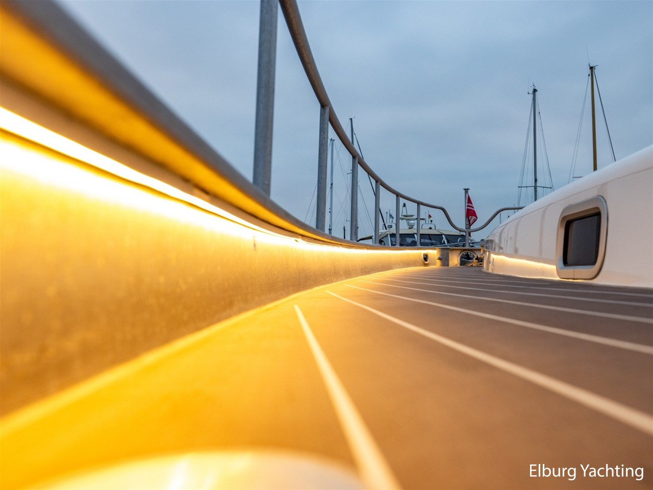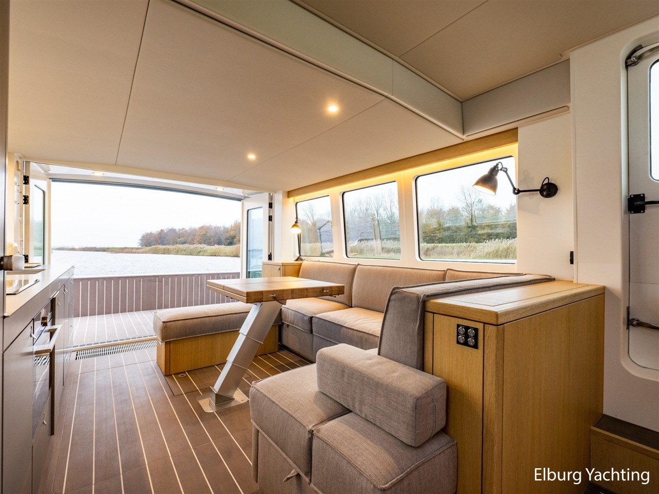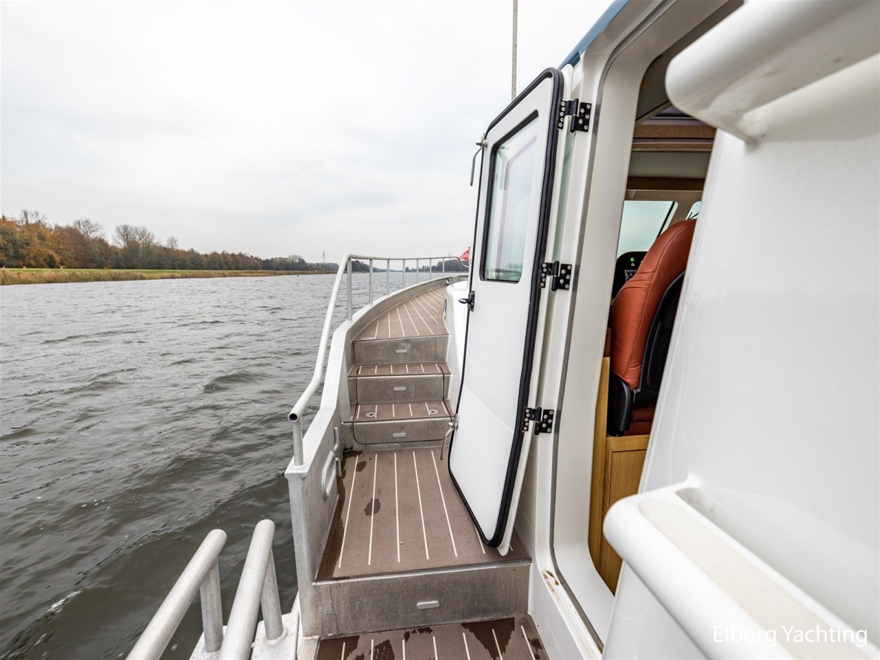 Het jacht wat u ter inspiratie kunt bezichtigen beschikt over : Achterdek en salon gelijkvloers, zij-ingang, elektrisch schuifdak bij stuurhut ( ca. 1.10 x 1.80 m, zij-ingang in reling, grote openslaande deuren naar de kuip om de salon en buitendek, dekdouche met warm/koud water bij zwemplateau, ruime leefomgeving in salon, buiten verlichting op tredes , Garmin navigatiepakket, 2 x 16" scherm, CTCV Camerasysteem voor achterdek en machinekamer, Dockmate - 2 motoren en boegschroef, Humphree interscepter set (4 x) met roll en pitch demping software + carbon vinnen, 4 x zonnepanelen op het achterdak, Fusion radio + 2 x speakers salon en 2 x cockpit (iPhone compatible), Miele was-droogcombinatie. Siemens vaatwasser, Ocean Air horren in eigenaar hut bij dekluik, shades/gordijnen in salon, lederen bekleding van de dashboardunit, elektrische lift voor vaarstoel- en passagiersstoel voor optimaal zicht, Lampe Gras zwarte design lampen, Frost zwarte douche armaturen, elektrische lift voor eettafel om te transformeren naar salon/lounge tafel, Kvadrat bekleding, geïntegreerde aluminium bolders, aluminium tredeplaat in voorroef, Aluminium geïntegreerde trap naar dak op bovenbouw, machinekamer akoestisch geïsoleerd, 3 x ruitenwissers met sproeisysteem. Lewmar dekluiken, Marlan tops, douche en toilet gescheiden voor gastenhut, Prebit leeslampjes, met USB aansluiting en dimbaar, Prebit plafondlampen dimbaar in rood/wit, Flatscreen 43" TV + lift, verborgen in salon rugleuning. In exclusieve samenwerking met Yachtfull International.
