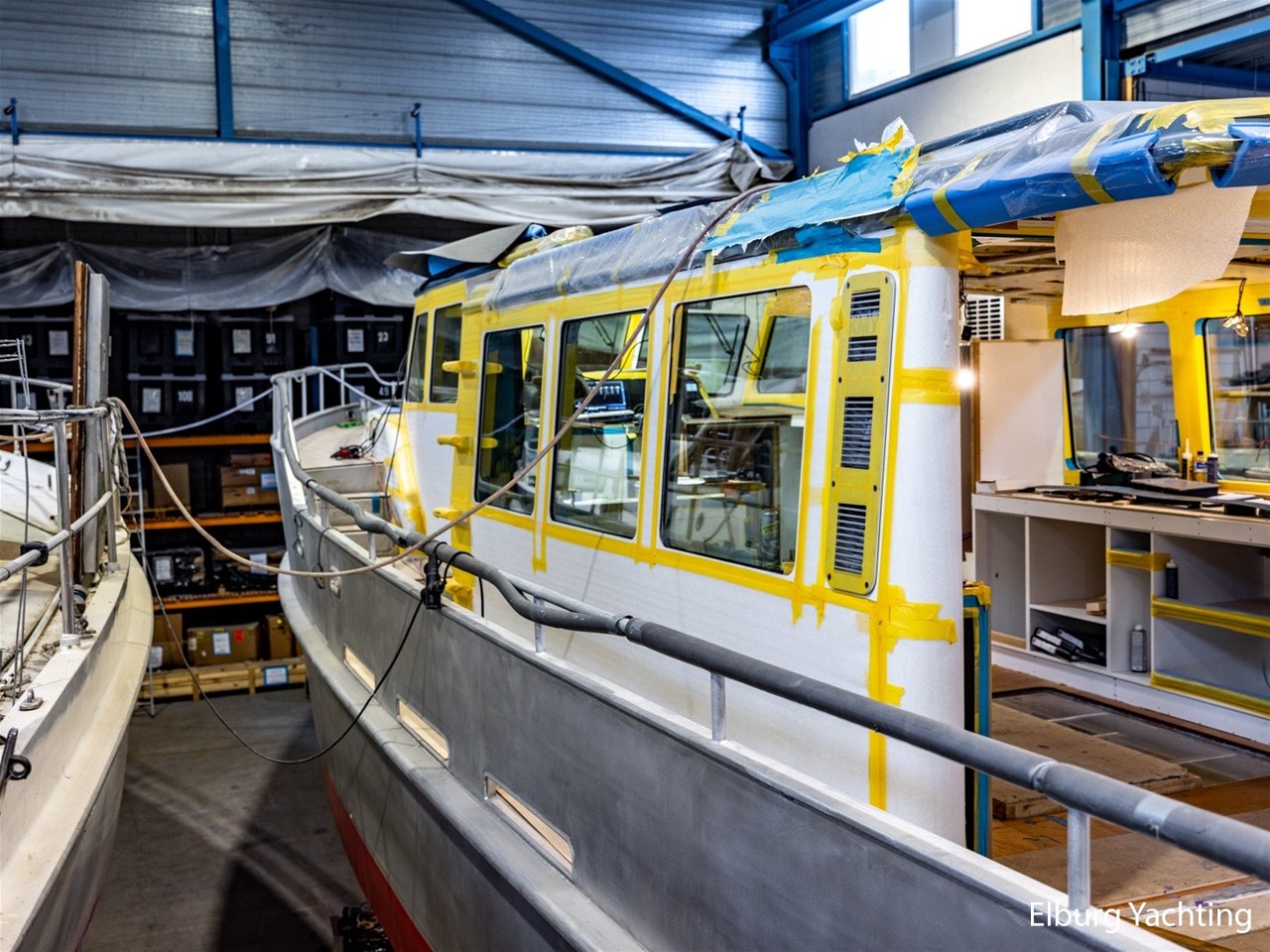 - Dubbel glas Thermopane in vast stuurhuis, elektrisch schuifdak bij stuurhut ( ca. 1.10 x 1.80 m