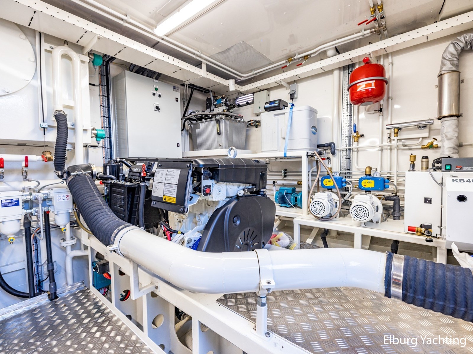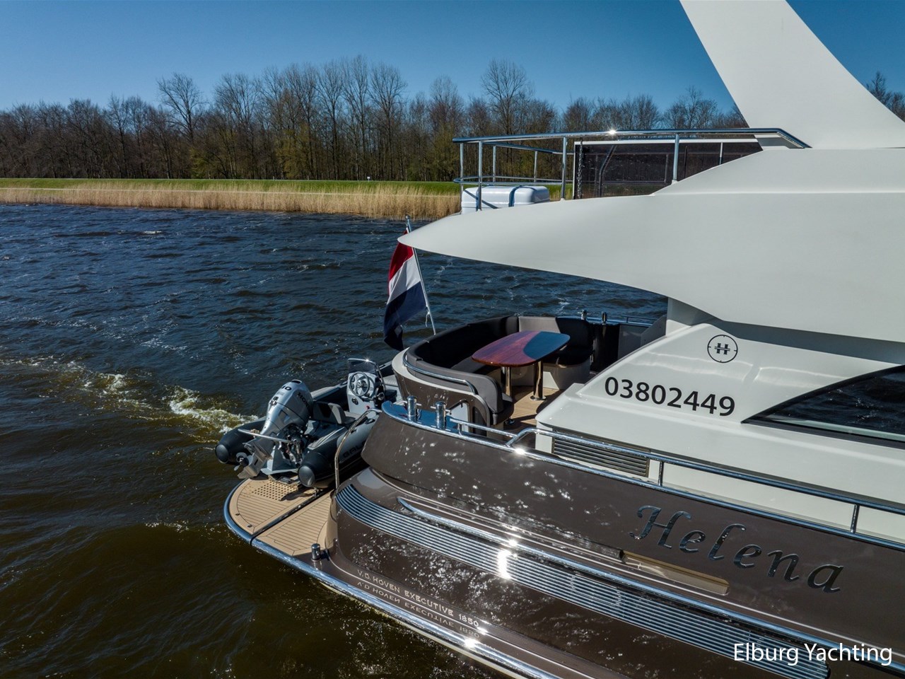De Van den Hoven Executive is voorzien van o.a.: Vetus hydraulische stabilisatoren, Yachtcontrol software, Hull Vane , hydraulisch bedienbare aluminium mast, r.v.s. reling met een bovenbuis van 42mm, 10 bolders 90 mm op bolderplaten met omgezette randen, 4 ovale kikkers, 2 x r.v.s. vlaggenstok, ronde stootlijsten, instrumentenbeugel op mast, r.v.s. ankerkluis zijboeg, losse r.v.s trap voor afstap roef-/salondek, losse r.v.s. trap voor afstap gangboord/zwemtrap, 3 thermostaten, radiator in salon, gehele schip onder de waterlijn geïsoleerd met 4 cm purschuimisolatie, 12 patrijspoorten (175 x 375 mm) (Gebo) voorzien van los vliegenhor, 6 patrijspoorten romp (310 x 690 mm) volledig r.v.s. opendraaiend met vliegenhor, buiten en binnenverlichting waarvan 55 led plafondspots , 4 wandspots, 2 x dimmer in salon en eigenaarshut, 3 x ruitenwisser Exalto 240BS met wisserarmen, 2 x luxe badkamer met meubel, spoelbak en 2 x vrij hangend toilet, toegang tot flybridge d.m.v. geïntegreerde trap + afsluitbaar luik Gebo, bar/grill, zitgedeelte met tafel, mast op flybridge, airco in mastercabin, salon en omschakelbaar naar VIP en Guest cabin, alarminstallatie incl. rookmelders met melding naar gsm, wateronthardingssysteem, 1 x schuifraam salon verwerkt in plakbeglazing, verwarming achterdek d.m.v. warmtelucht unit met capaciteit van 10 KW gekoppeld aan Kabola KB40 kachel.