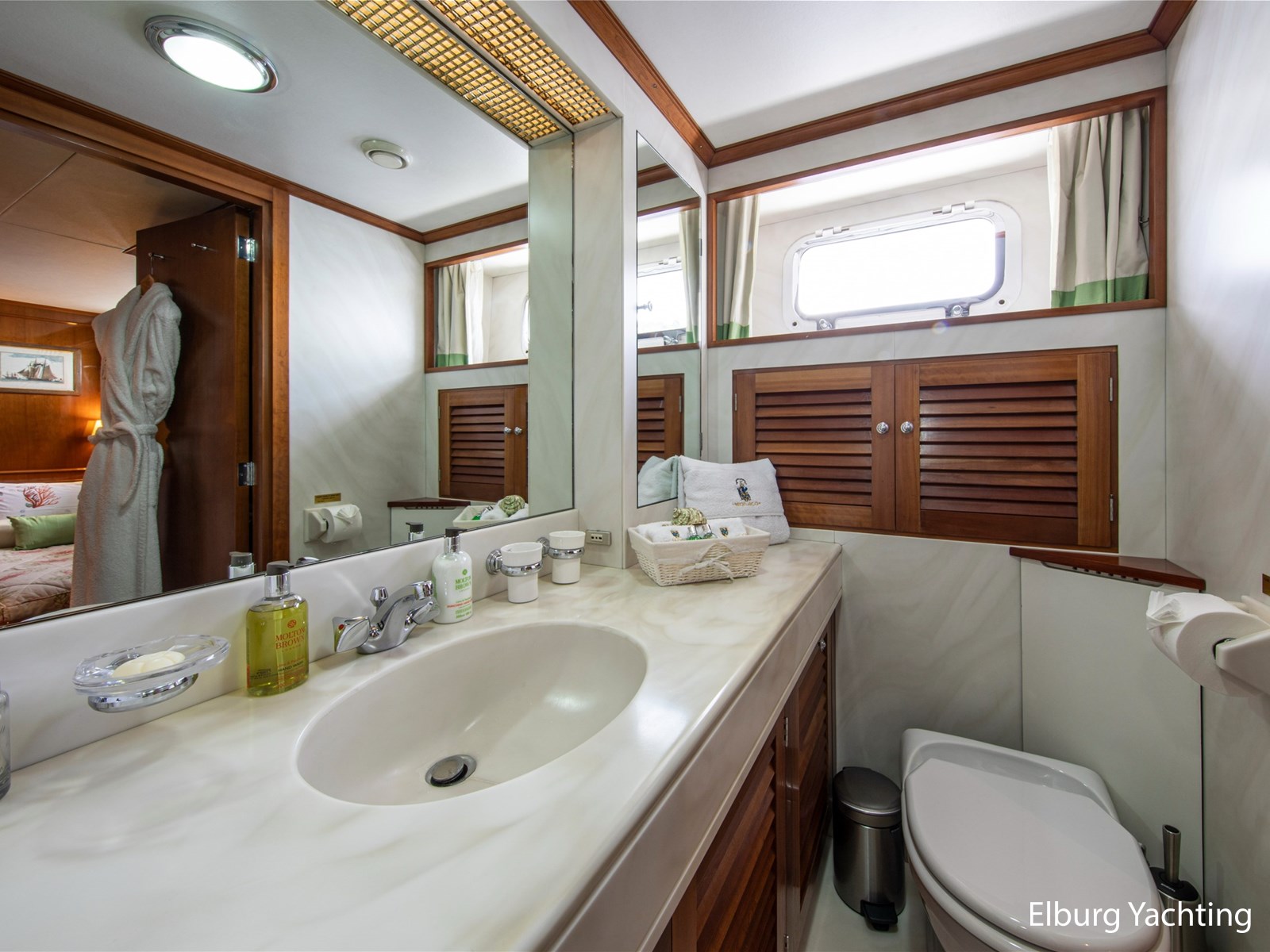 Binnen biedt de open, ruime salon informele zitplaatsen met grote banken en stoelen. Daarnaast bevindt zich ook een formeel eetgedeelte. Verder naar voren op het hoofddek treft u de ruime eigenaarshut met eigen badkamer en inloopkast.