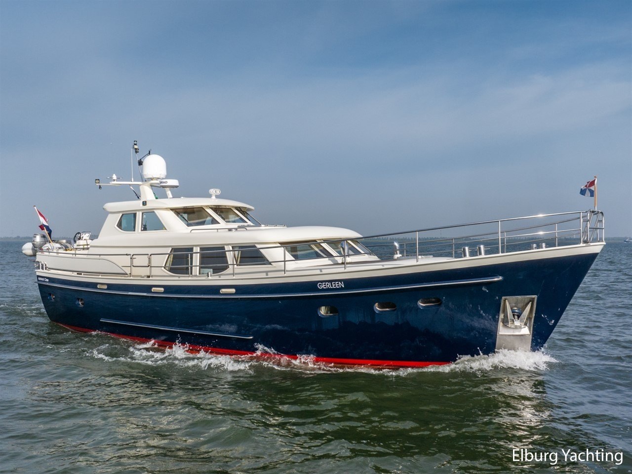 Zeer hoogwaardig gebouwd rondspant stalen motorjacht van jachtwerf De Gier en Bezaan, ontworpen door René van der Velden. Het houtwerk in het interieur is zeer rijk aan details en laat echt vakwerk zien. De machinekamer is professioneel geïsoleerd waardoor het geluid van de aandrijving tijdens het varen naar de achtergrond verdwijnt. Het jacht is compleet uitgerust om zowel op zee als binnenwateren goed en comfortabel te kunnen varen. Deze Admiral Class 1500 is voorzien van: AEG vaatwasser, Corian topbladen, 2 x diepe opbergluik op achterdek, luxe Recaro maritieme vaarstoelen in stuurhuis, in 4 delen klapbare deuren naar het stuurhuis, dek loopt gelijkvloers rondom met dubbele r.v.s. reling, 2 x doorgang in reling aan SB & BB + opstap via inklapbare r.v.s. boegladder, dakluik in stuurhuis en salon tevens voorzien van muggenhor, 1 x voorraam in stuurhuis te openen voor ventilatie, Bosch was/droog combinatie, dubbele Separ brandstoffilters per motor, inklapbare vaarbank in stuurhuis, beide badkamers voorzien van wandradiator, overzichtelijk en toegankelijk elektrisch paneel, doorvaarthoogte met mast op ca. 5,40m en met geklapte mast ca. 4,05m. Laatste onderhoud aan de hoofdmotoren en generator uitgevoerd in 2023. 9 x redtop accu's vernieuw in 2022.