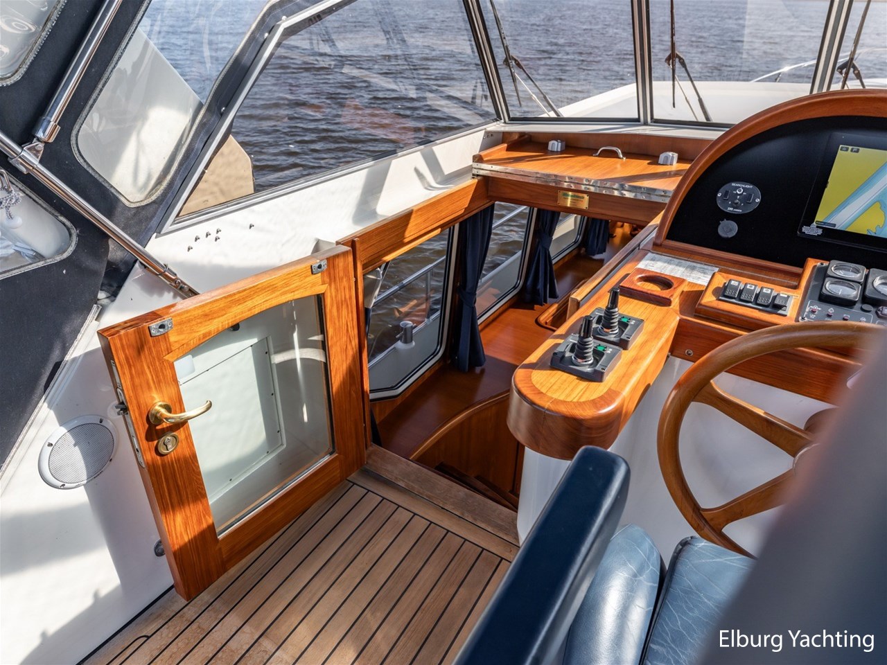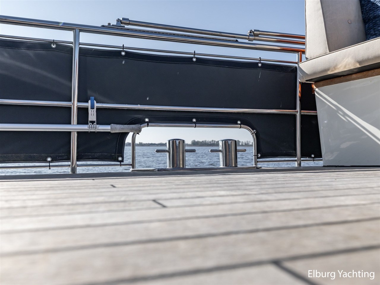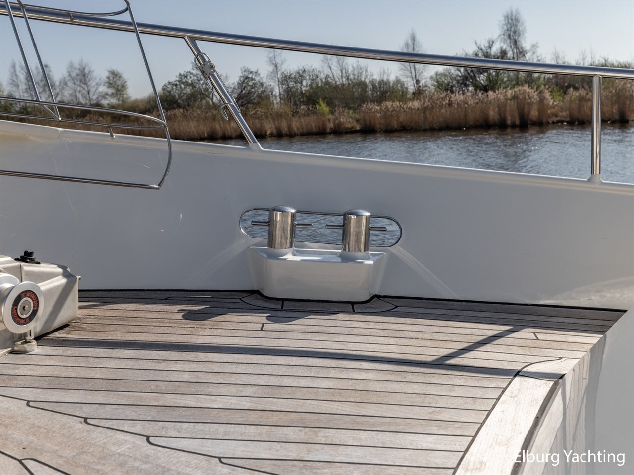 Verder uitgerust met een zeer overzichtelijke motorkamer met alle componenten bereikbaar, Corian werkbladen in kombuis en natte ruimtes, comfortabele stuurstoel, bimini, kussens op vaste bakskisten, prachtige hoogglans kuiptafel op 2 dikke RVS poten, dubbele bolders voor en achter, WIFI + router, 2 x middenbolder aan beide boorden, doorgang in zeereling midscheeps, 2 x klapbaar raam in salon, breed gangboord met vaste verschansing, poolanker met RVS slijtstrips op romp, 5 x voorraam, RVS handgrepen op opbouw voorschip, anti-fouling vernieuwd 2025.