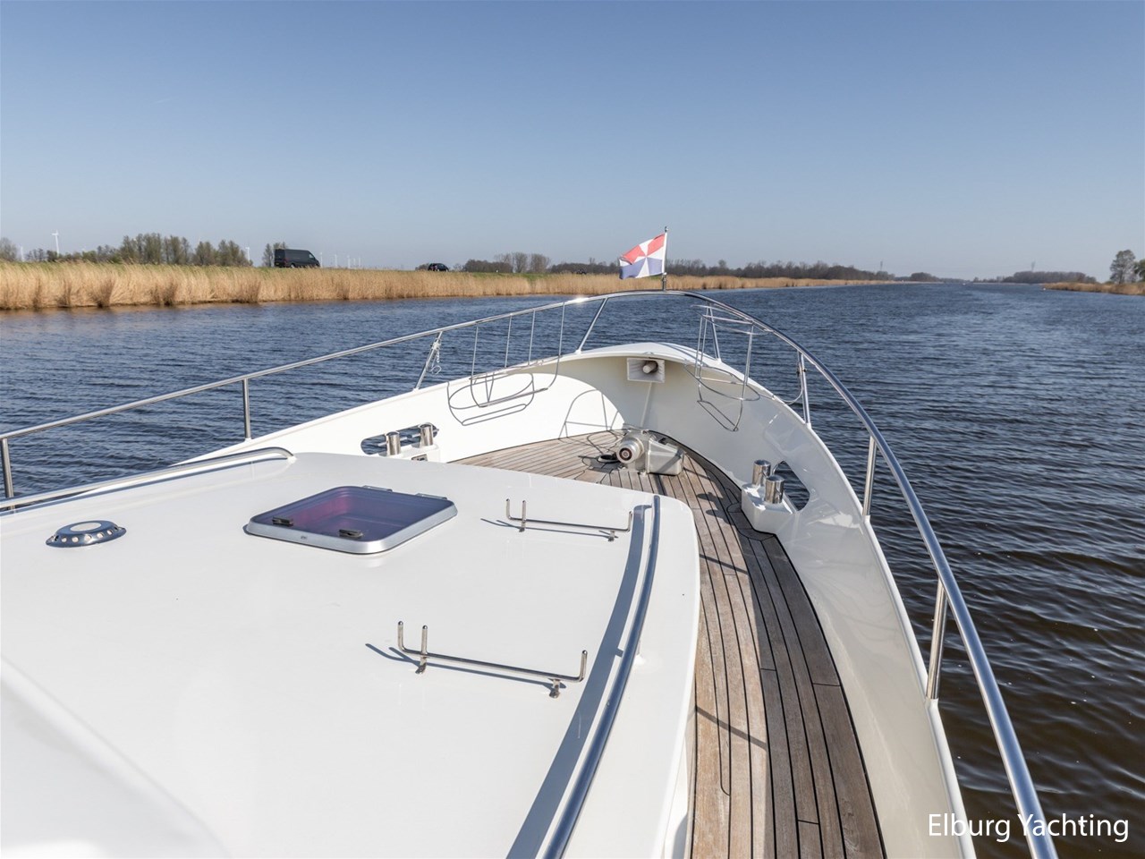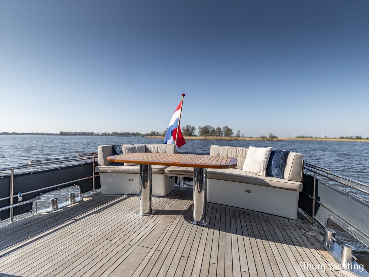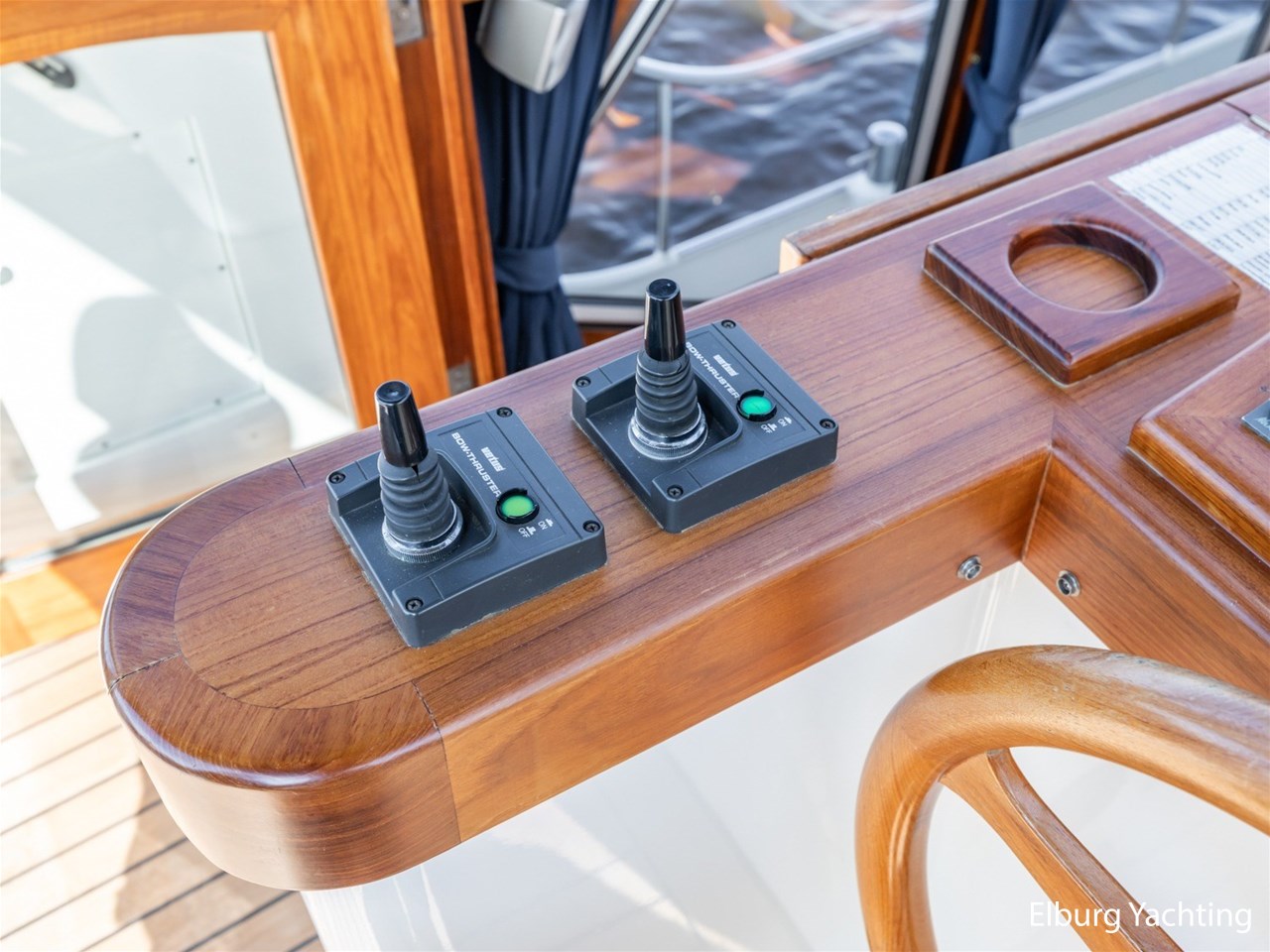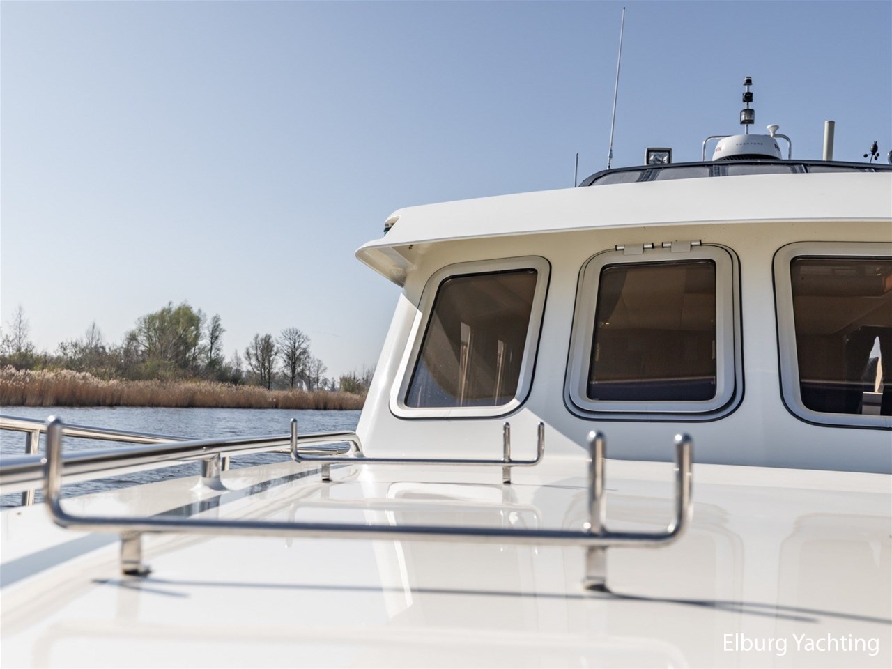 Verder uitgerust met een zeer overzichtelijke motorkamer met alle componenten bereikbaar, Corian werkbladen in kombuis en natte ruimtes, comfortabele stuurstoel, bimini, kussens op vaste bakskisten, prachtige hoogglans kuiptafel op 2 dikke RVS poten, dubbele bolders voor en achter, WIFI + router, 2 x middenbolder aan beide boorden, doorgang in zeereling midscheeps, 2 x klapbaar raam in salon, breed gangboord met vaste verschansing, poolanker met RVS slijtstrips op romp, 5 x voorraam, RVS handgrepen op opbouw voorschip, anti-fouling vernieuwd 2025.