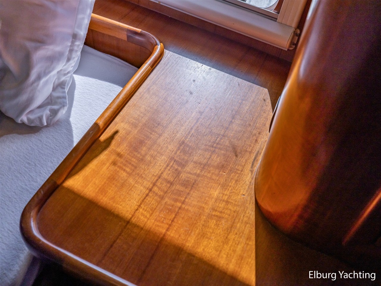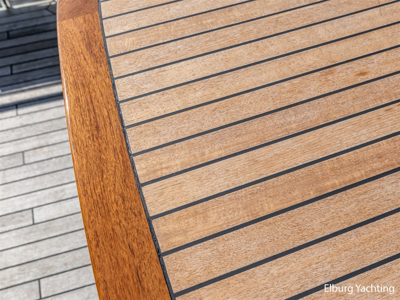 - Zeer hoogwaardig teakhouten interieur + Merbau treden + veel rondingen in de houtafwerking
