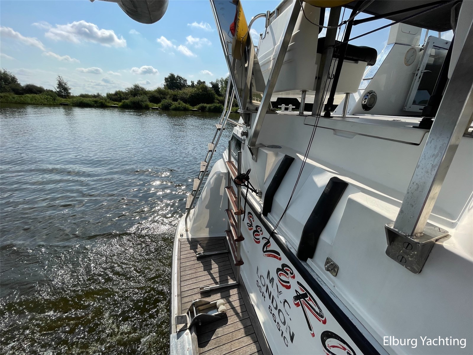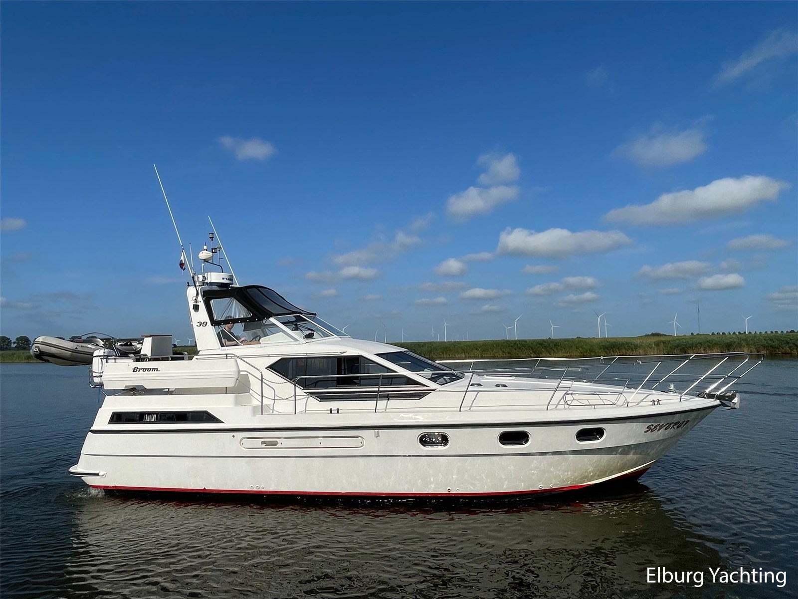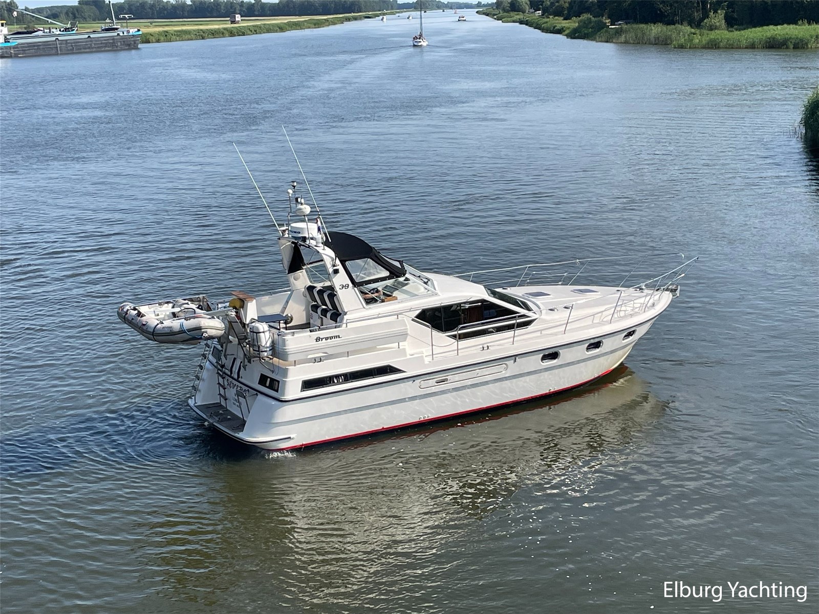Deze Broom 39 is een echte comfortabele allrounder, geschikt voor zowel zee- als binnenwateren, het jacht is door de huidige eigenaar aankocht in 2004 en heeft reizen gemaakt van Groot-Brittannië naar Parijs en heeft gevaren in Nederland, Duitsland, Scandinavië en heeft tevens diverse Baltische havens bezocht. Zij is verder voorzien van o.a.: hoezen voor voorruiten en achterbank, bimini, muggenhorren, quadrofonisch geluidssysteem, meerdere drankkabinetten, kluis, reserve schroef, een selectie van Volvo motoronderdelen, volledige servicebeurt waarbij alle motorfillers en impellers zijn vervangen in 2024 (jaarlijks onderhouden) , transmissie olie vervangen (2023), stuurboord motor gereviseerd 2019, bakboordmotor nieuwe warmtewisselaar, 100 uur sindsdien, 2024 nieuwe elektrische macerator pomp voor toilet achter, Pomp toilet achter service 2024, vloerbedekking (2019), dynamo stuurboord vernieuwd (2023), V-snaren motor vervangen (2023) , nieuwe verf romp en antifouling (2019), nieuwe douche achter (2021), nieuwe anodes op romp en motor-assen (2024), nieuwe motor- en service accu`s (2024).