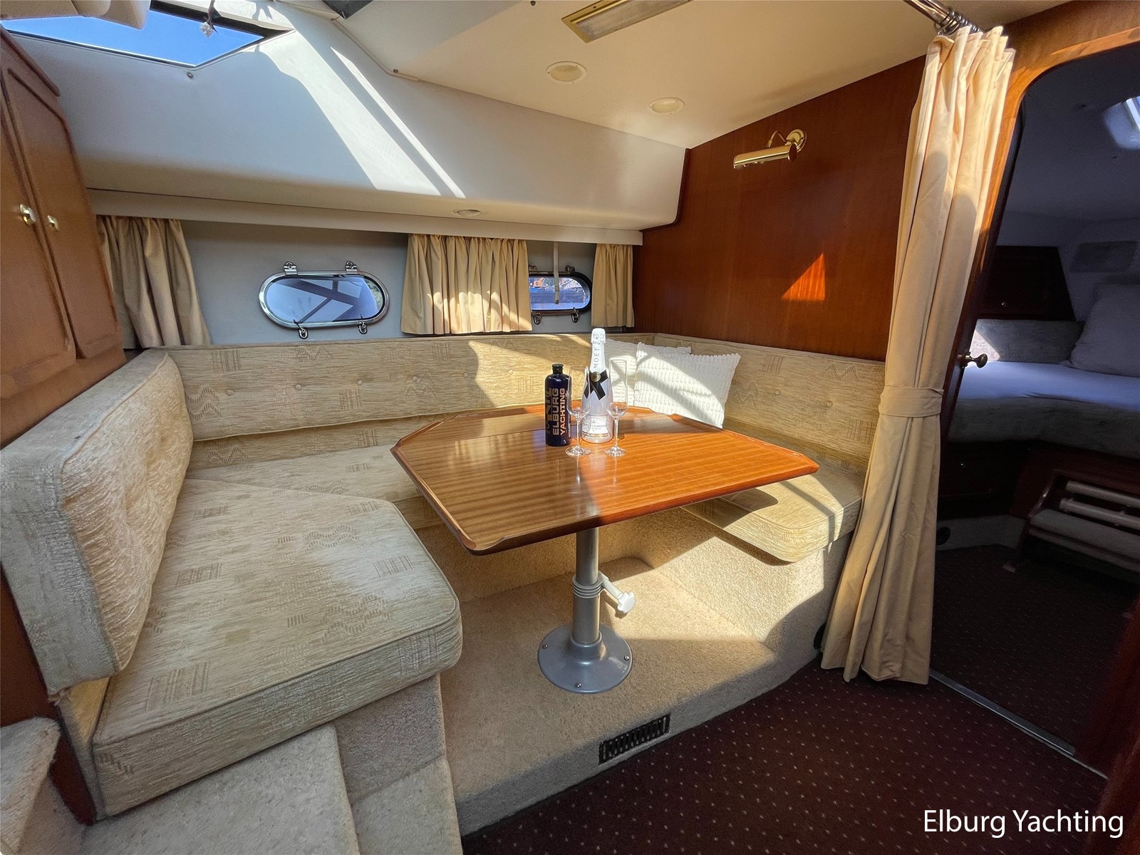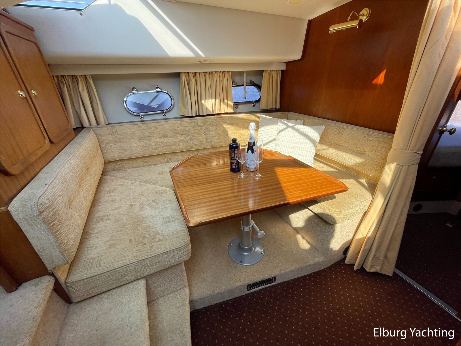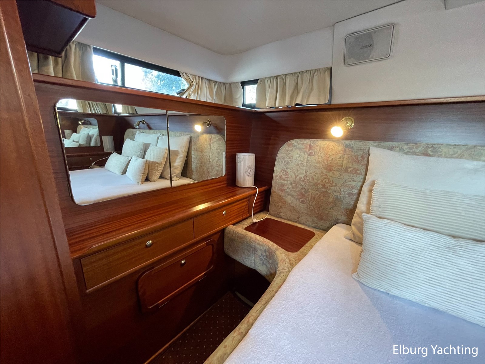 Deze Broom 39 is een echte comfortabele allrounder, geschikt voor zowel zee- als binnenwateren, het jacht is door de huidige eigenaar aankocht in 2004 en heeft reizen gemaakt van Groot-Brittannië naar Parijs en heeft gevaren in Nederland, Duitsland, Scandinavië en heeft tevens diverse Baltische havens bezocht. Zij is verder voorzien van o.a.: hoezen voor voorruiten en achterbank, bimini, muggenhorren, quadrofonisch geluidssysteem, meerdere drankkabinetten, kluis, reserve schroef, een selectie van Volvo motoronderdelen, volledige servicebeurt waarbij alle motorfillers en impellers zijn vervangen in 2024 (jaarlijks onderhouden) , transmissie olie vervangen (2023), stuurboord motor gereviseerd 2019, bakboordmotor nieuwe warmtewisselaar, 100 uur sindsdien, 2024 nieuwe elektrische macerator pomp voor toilet achter, Pomp toilet achter service 2024, vloerbedekking (2019), dynamo stuurboord vernieuwd (2023), V-snaren motor vervangen (2023) , nieuwe verf romp en antifouling (2019), nieuwe douche achter (2021), nieuwe anodes op romp en motor-assen (2024), nieuwe motor- en service accu`s (2024).