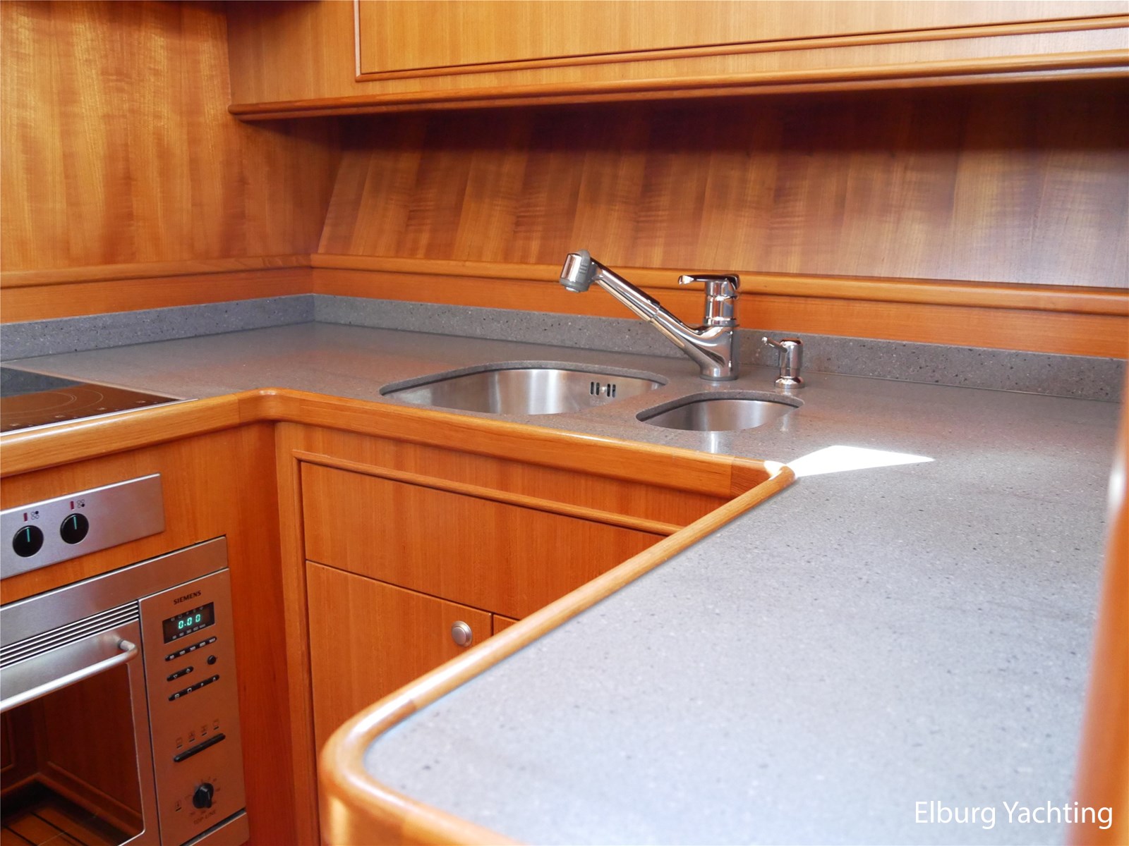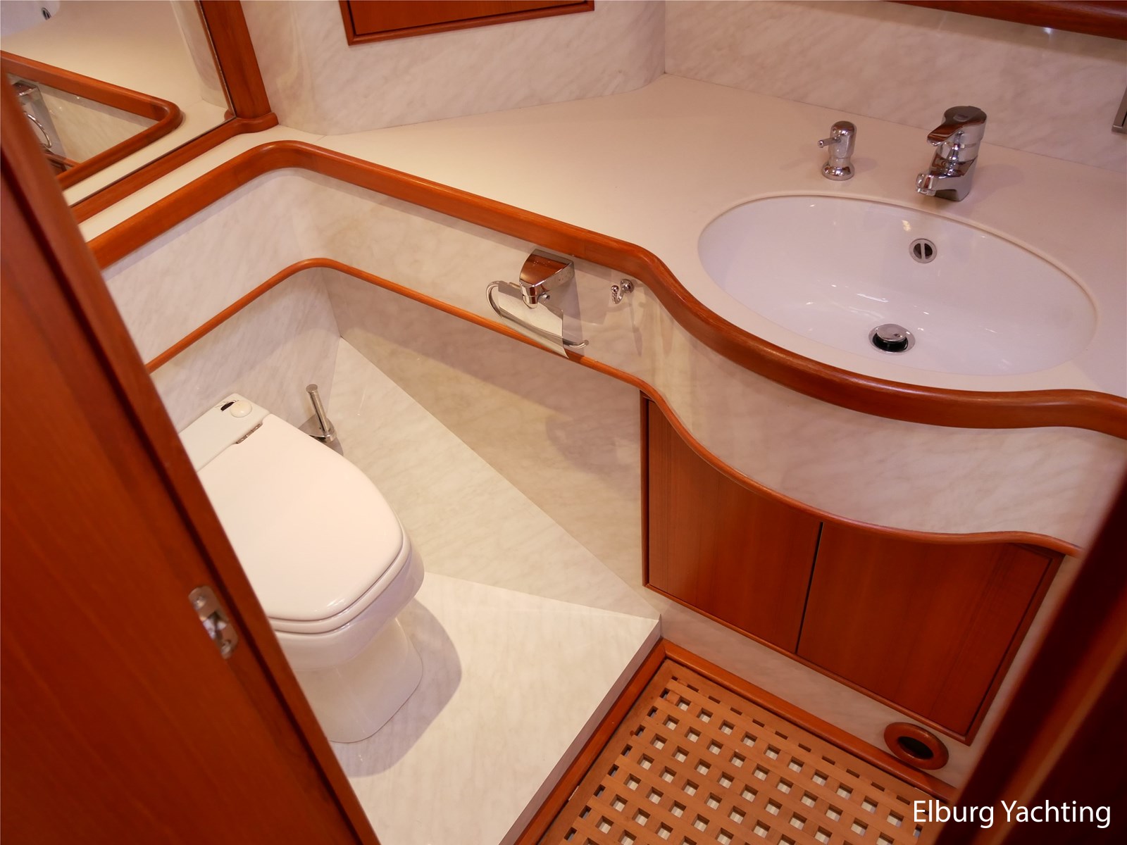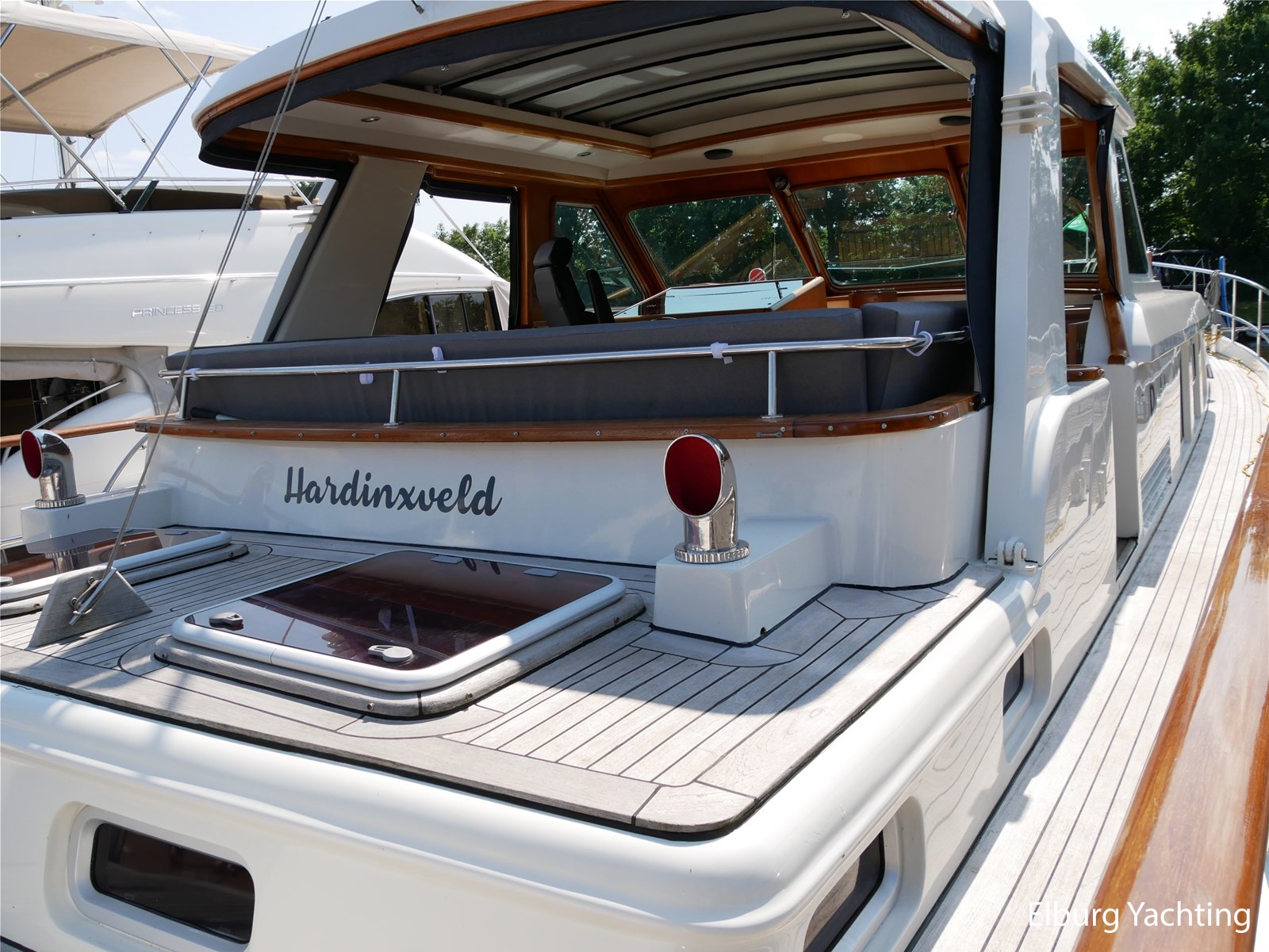 - Geintegreerd met teak dek + r.v.s. zwemtrap