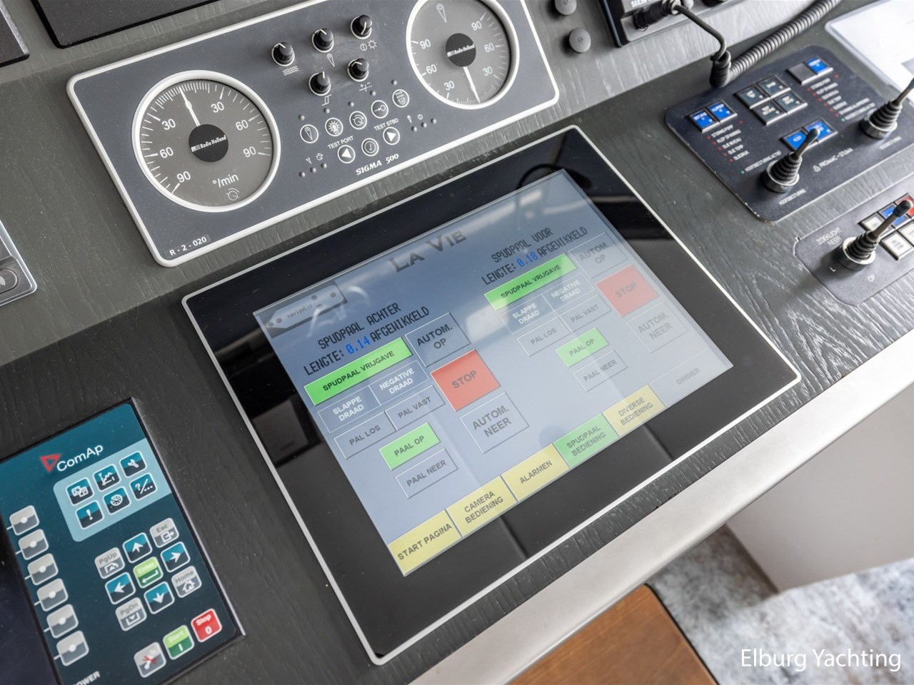 - Boeg; Elsto Elektrisch 400 Volt, 2,5 kW met twee poolankers van 95kg ieder. Hek: Elsto elektrisch 400 Volt met anker en ankerlijn, Leeuwenstein spudpalen.