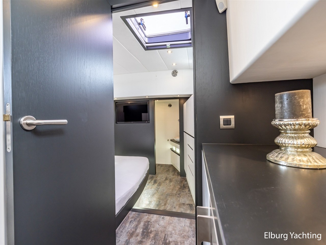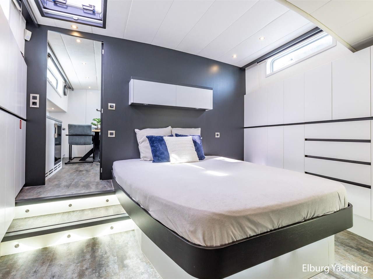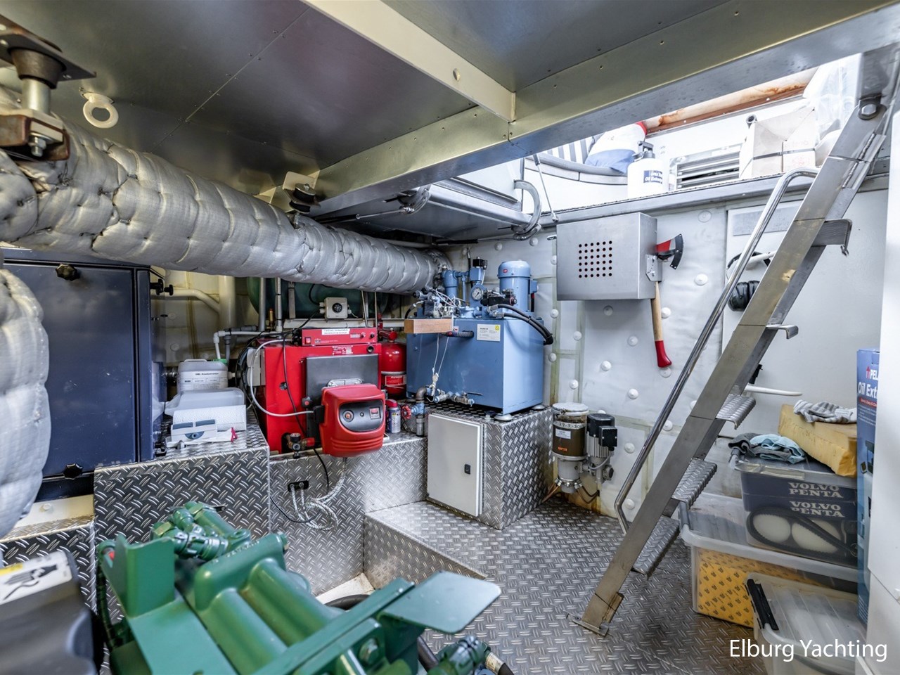- Kabola HR 500 (19,7 kW) met vloerverwarming door gehele schip + Mar-IX airco in eigenaarshut op 24 Volt