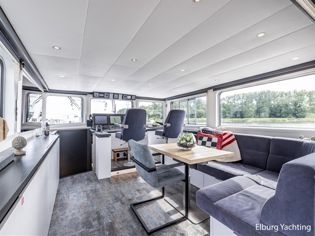 Het jacht is voorzien van een CBB certificaat Rijn, geldig tot 2027, laden van de accu's gebeurt in volgorde a) zonnepanelen b) walstroom en c) kleine generator via autostart als laadstatus onder 60% is, of als de motor draait via de 140 A dynamo, Leeuwenstein spudpalen 4.50 meter onder het schip, zeer complete documentatie met tekeningen, schema's en isolatieplan, complete eigenaarshistorie bekend, camerasysteem (boeg / mast voorwaarts / beide gangboorden voorwaarts / achteruit vanaf dak / motorkamer), was-droogcombinatie Siemens (2024), Siemens vaatwasser, dekwaspomp (gebruikt uit watertank) Router met WIFI, buitenkussens kuip (2024), kuiptent geïmpregneerd 2024, beunkoeling, bijboot 2012, RVS BBQ-plateau aan kuiprand, geventileerde elektraruimte in boeg met accu's, omvormers, walscheidingstrafo etc., zoeklicht, blauw bord (voor passeren stuurboord-stuurboord op de rivieren), sunscreens bij de voorste schuif zijramen en midden voorraam, hor bij beide dakluiken, lamellen stuurhuis, dekdouche in kuip, perslucht middels compressor, Promac-Stuwa hoofd-noodbesturing, noodbedieningspaneel hoofdmotor en keerkoppeling, touchscreen, roerstandaanwijzer op Sigma 500, Intelivision scherm voor uitgebreide motorinformatie tijdens vaart, zeer veel RVS aan dek en verwerkt in casco, automatisch vetsmeringssysteem, reserve filters en snaren, 2 x carrousselkasten in kombuis.