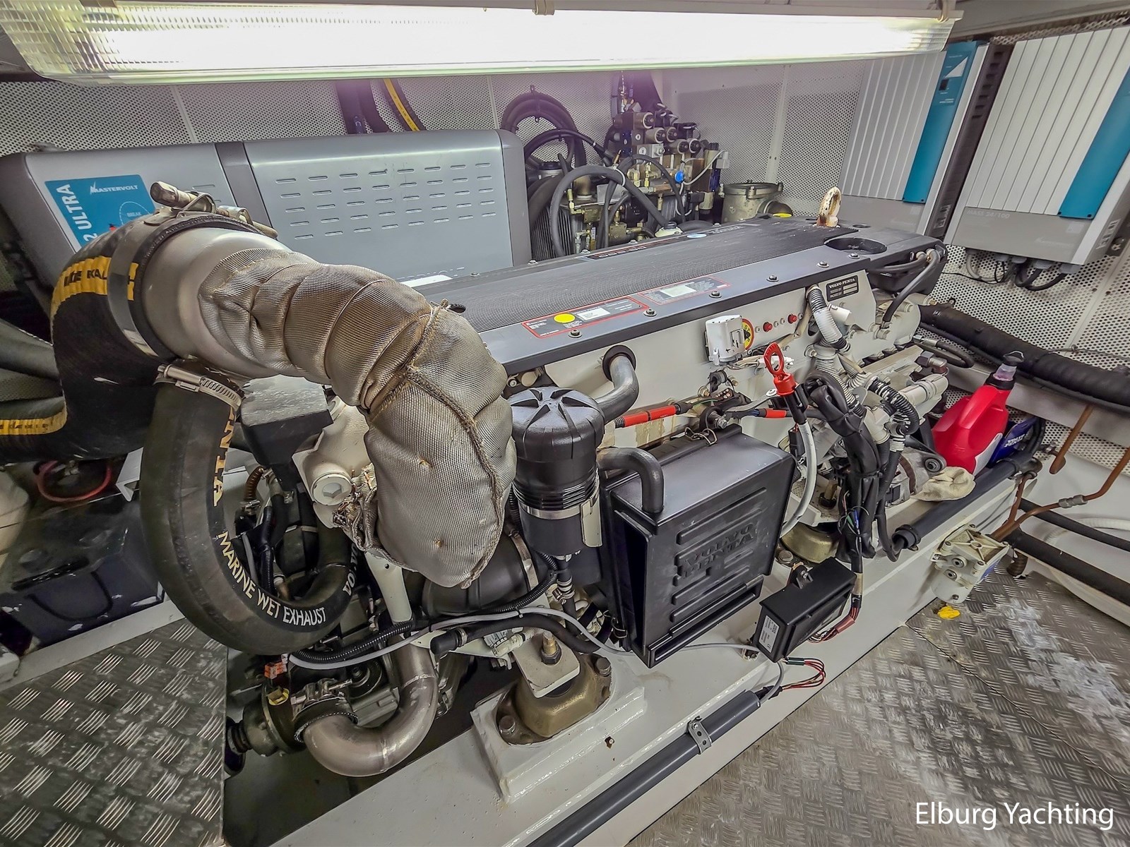 De combinatie van haar stille dubbele Volvo Penta D6-310 pk motoren, boeg-/ hekschroef en haar op afstand bedienbare dockingsysteem maakt manoeuvreren in havens en sluizen eenvoudig. Met haar ROTOSWING stabilisatoren is ze ideaal voor langere afstanden en het bevaren van rivieren. Haar marineblauwe romp en witte bovenzijde zijn in 2023 professioneel overgeschilderd in Alexseal. De teakhouten dekken zijn opnieuw gekit en licht geschuurd in 2023.