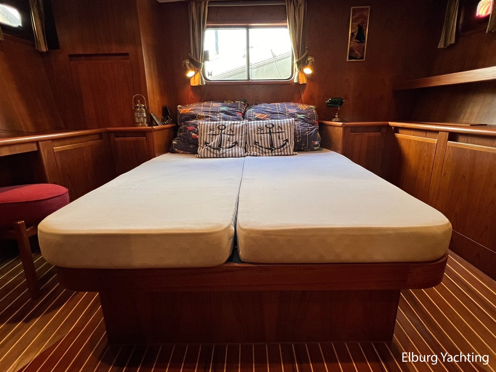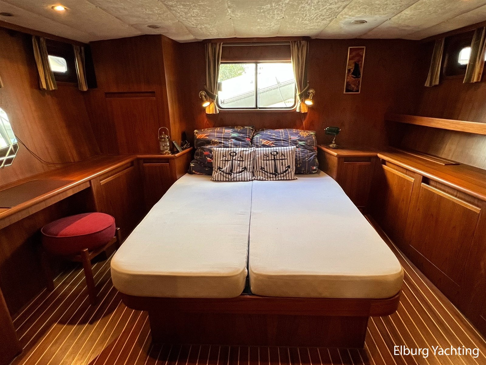 Deze Altena 48 Sedan met achterkajuit wordt verkocht door de eerste eigenaar! Het schip is van alle gemakken voorzien om ook permanente bewoning aan boord mogelijk te maken. Door zijn praktische indeling en uitgebreide techniek aan boord is dit een heerlijk vaar- en leefschip. In het oogspringende eigenschappen van dit schip zijn de 3 hutten indeling met dubbele badkamer, ruime salon, dubbel glas, centrale verwarming, hydraulische boegschroef en KOOP-Nautic vin stabilisatoren. Deze Altena 48 Sedan is o.a. voorzien van: Volledig afsluitbare tent over het achterdek, ruime buiten zit met geïntegreerde bank inclusief bijbehorende kussens, in vier delen te openen deuren naar het stuurhuis om binnen en buiten met elkaar te verbinden, vast stuurstoel met meevaarzit, Afneembare zonneschermen rondom ramen stuurhuis, hydraulisch klapbare mast, r.v.s. fenderhouders op voordek, horren voor patrijspoorten, half ronde trap naar het zwemplateau, TV in salon, veel kast ruimte met hang en leg mogelijkheid, buitenverlichting, Eumenia wasmachine, Megasat ontvanger.