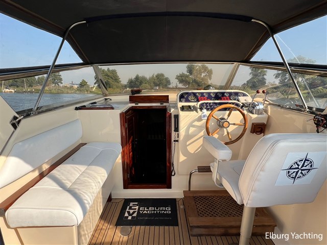 Origineel Nederlands geleverde Apreamare 9 Semi Cabinato. Met haar charmante klassieke uitstraling is het een mooie verschijning op het water. Deze Apreamare is uitgerust met: Afsluitbare tent rondom stuurstand, geintegreede kuipbanken met bijbehorende kussens (2021), groot zwemplatform, Bluetooth radio + 2 x buiten speakers, LED verlichting in salon, vaste stuurstoel + meevaarbank, TV in salon, zonnebed op voordek, r.v.s. railing + r.v.s. bolders, dekwaspomp, elektrisch beweegbaar motorluik. In 2024 is al het houtwerk aan de buitenzijde kaal gehaald en daarna voorzien van 7 lagen Sigma Cetol TGX Gloss en nieuwe kitnaden aangebracht. Verder zijn er in 2024 de volgende werkzaamheden uitgevoerd: Antifouling en anodes vernieuwd, lichtaccu vervangen, acculader vernieuwd, verlichting spots vervangen door LED, Victron 2000W omvormer geïnstalleerd. In 2021 is het volledige dek vervangen voor kunststof Flexiteek voor minimaal onderhoud aan het dek.