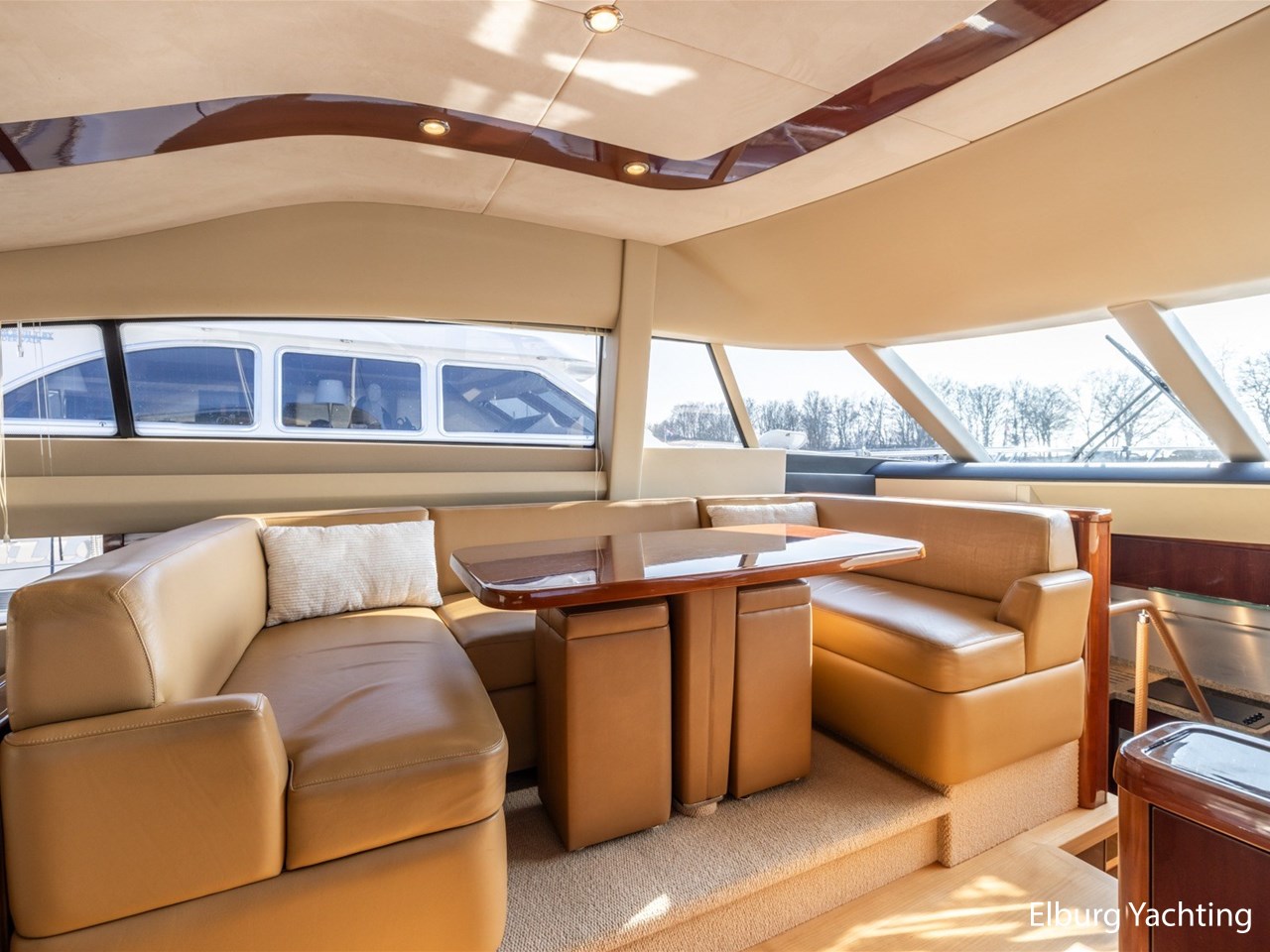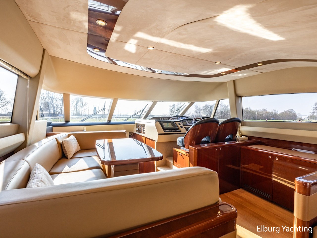 Luxueus interieur. Ruime open kuip die volledig af te sluiten is door middel van een tent en is voorzien van nieuwe bekleding (2024). Een grote r.v.s. schuifdeur naar ruime salon waardoor binnen- en buitenruimte verbonden worden. Bij binnenkomst in de salon treft u een ruime u-vormige bank aan met een TV op lift. De ruime dinette naast de stuurstand zorgt ervoor dat het mogelijk is dat de schipper in contact blijft met het gezelschap aan boord, de stuurstand beschikt over 2 luxe vaarstoelen, en een yachtcontroller afstandsbediening waardoor aan- en afmeren eenvoudig is.