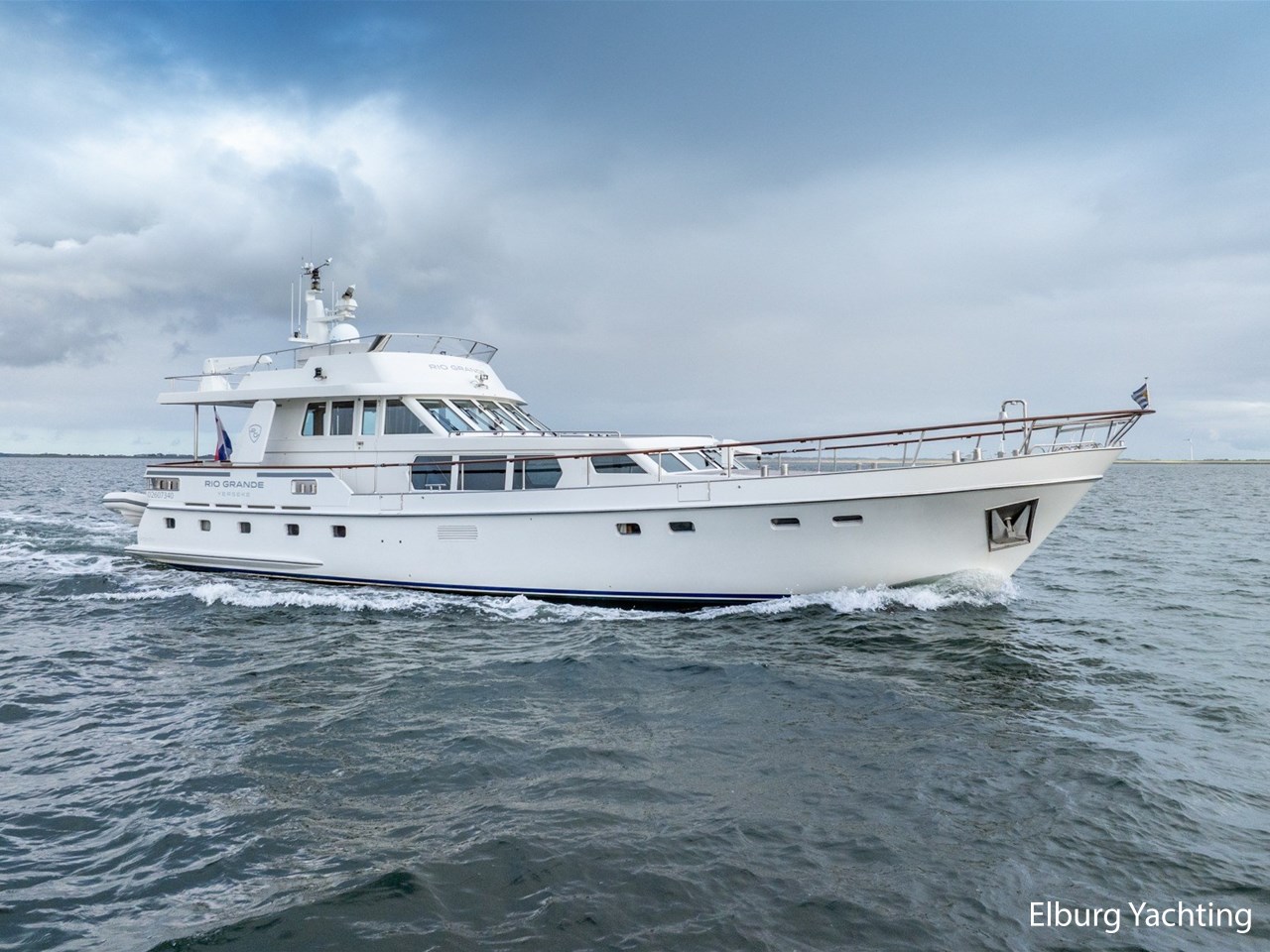 Deze Moonen 68 'Rio Grande' is gebouwd voor een zeer ervaren eigenaar uit de beroepsvaart. Tijdens de bouw is op verzoek van de eigenaar het schip geluidsarm gemaakt na een akoestisch onderzoek door Van Cappellen, hierdoor is het schip extra goed geïsoleerd en geluidsarm. De huidige en 3e eigenaar van de Rio Grande heeft in 2021 een flybridge laten vervaardigen waarmee er een prachtige extra zitgelegenheid is gecreëerd en een extra stuurstand met alle basis functies. De flybridge is ontworpen en gebouwd door Nederlandse gerenommeerde partijen in de scheepsbouw. Aan boord staan naast de 20 mappen van Moonen van de bouw en ook 2 nieuwe mappen waarin de refit en opbouw Flybridge goed is gedocumenteerd. Alle tekeningen en berekeningen zijn daarin opgenomen. Met de refit in 2021 zijn de o.a. de volgende werkzaamheden uitgevoerd: Gehele schip opnieuw gestoffeerd, matrassen vernieuwd, extra kinderbed aangebracht in SB voorhut, verlichting geheel vervangen voor LED verlichting, zonwering binnenzijde / jaloezieën aangebracht, AIS Class A & Navigatieapparatuur vervangen met PC Navigo, motorbediening en actuatoren vervangen (Aventics / Bosch / Rexroth), volledig nieuwe flybridge geplaatst met banken en windscherm, tweede stuurstand op flybridge geplaatst, extra tendersteunen aan achterzijde geplaatst voor Williams Sport 395 (niet inbegrepen), nieuwe keuken geplaatst in stuurhuis met koelkast/kookplaat/wasbak/kastruimte, keuken / dinette benedendeks gerefit, nieuwe tent rondom kuip, nieuwe zeilen en buitenzonwering, teakdekken waar nodig hersteld / gereinigd / geschuurd, potdeksels en houtwerk buitenzijde opnieuw gelakt, stabilisatoren gereviseerd, schroefassen en schroeven gebalanceerd, alle pompen voorzien van nieuwe rubbers, hydrofoor en pomp vernieuwd, watertank gereinigd.