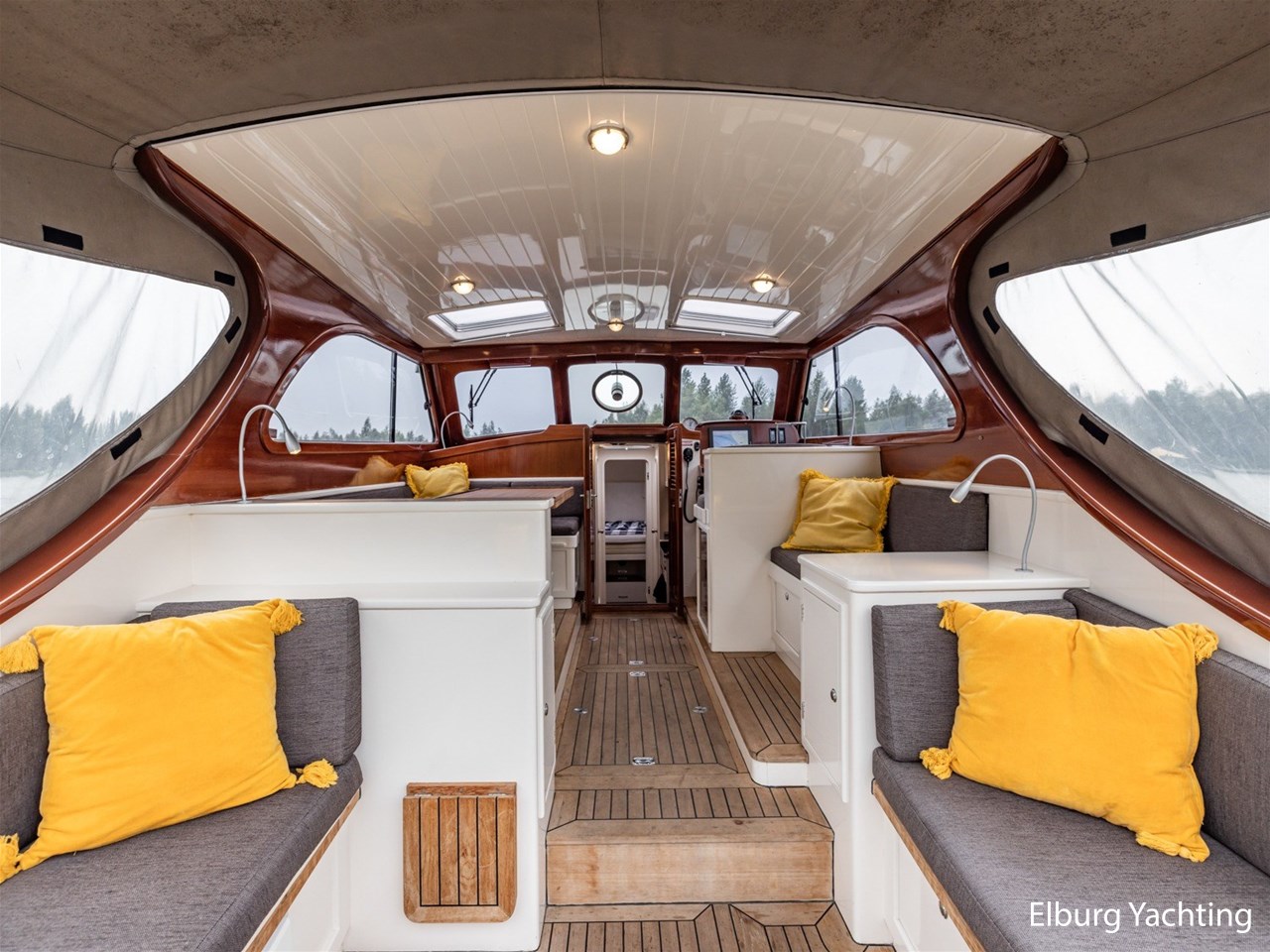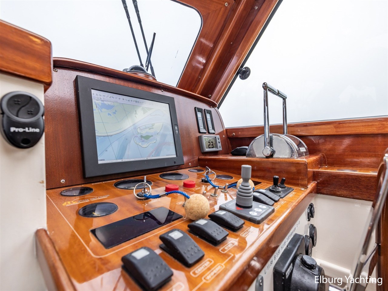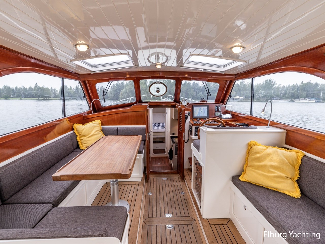 Uiterst fraaie Rapsody 40 Offshore uit bouwjaar 2002 - voorzien van een prachtig Teakdek met gelakte omlijsting en r.v.s. zeerailing. Het jacht beschikt over een prachtige klassieke lijn met moderne ingrediënten zoals de ruime open kuip en het frisse lichte interieur. Het jacht is rondom voorzien van een Teakdek en is afgewerkt met gelakt Teak (zowel de opbouw, het dek en het zwemplateau). De ruime kuip beschikt over een prettige zitgelegenheid, een ijskast en veel bergruimte onder de banken. De stuurstand met nabijgelegen dinette is gezellig gesitueerd onder het vaste dak. Het vaste dak beschikt over twee dakluiken en twee schuiframen aan de zijden. De stuurstand is overzichtelijk vormgegeven en beschikt over onder andere een functioneel Stentec navigatiesysteem, boegschroef, motorbediening en dieptemeter . Aan boord is de kombuis aan stuurboord gesitueerd met de tweede dinette aan bakboord. De kombuis is ruimtelijk georganiseerd met een Plastimo kooktoestel + oven, koelkast, spoelbak en veel kastruimte. Voorin is de eigenaarshut gesitueerd met nabijgelegen toilet en douche. De doorvaarthoogte is ca. 3.65 meter met een minimale kruiphoogte van ca. 2.70 meter. Voor vragen en/of het maken van een afspraak bent u 7 dagen per week van harte welkom bij Elburg Yachting.