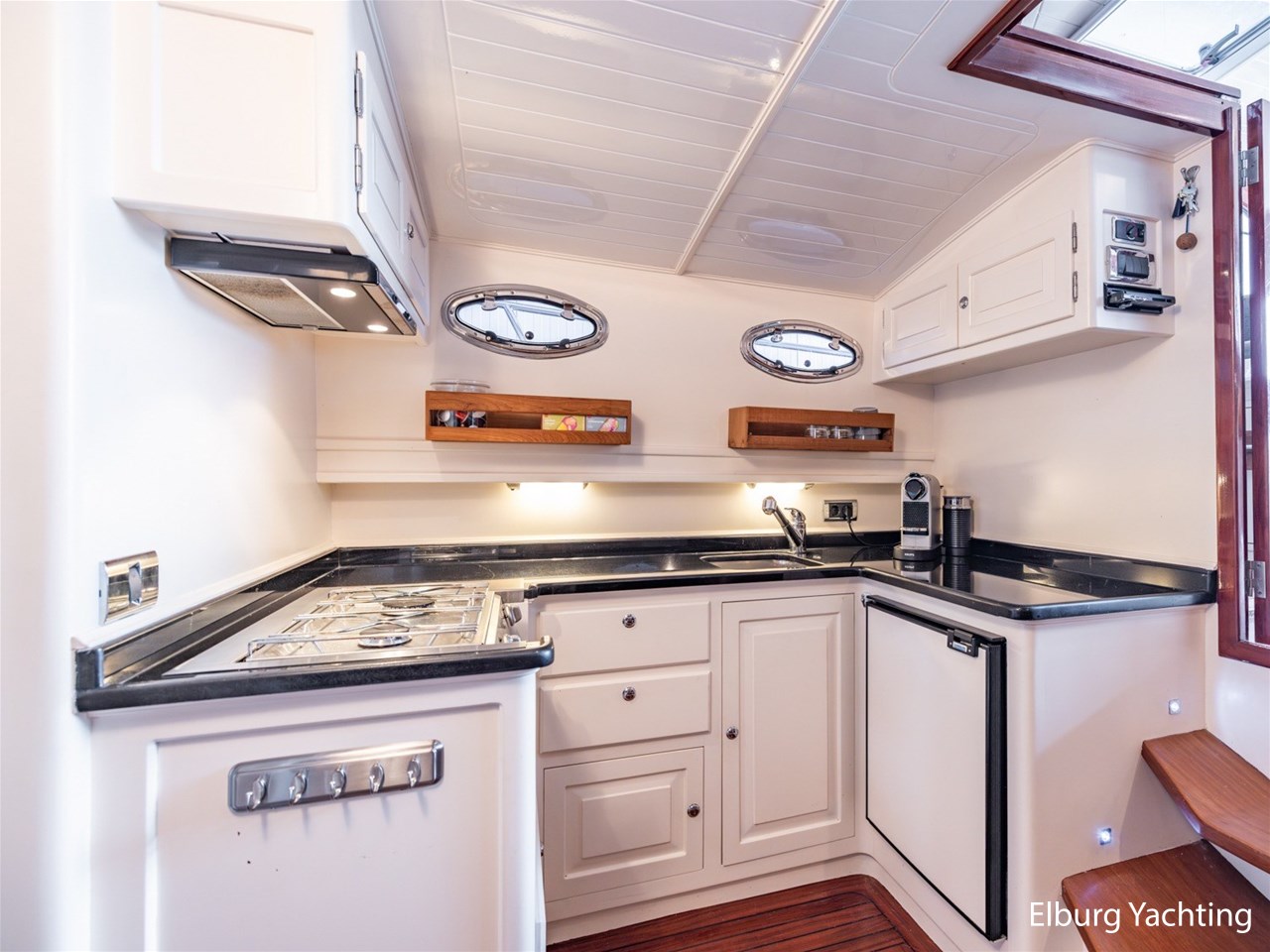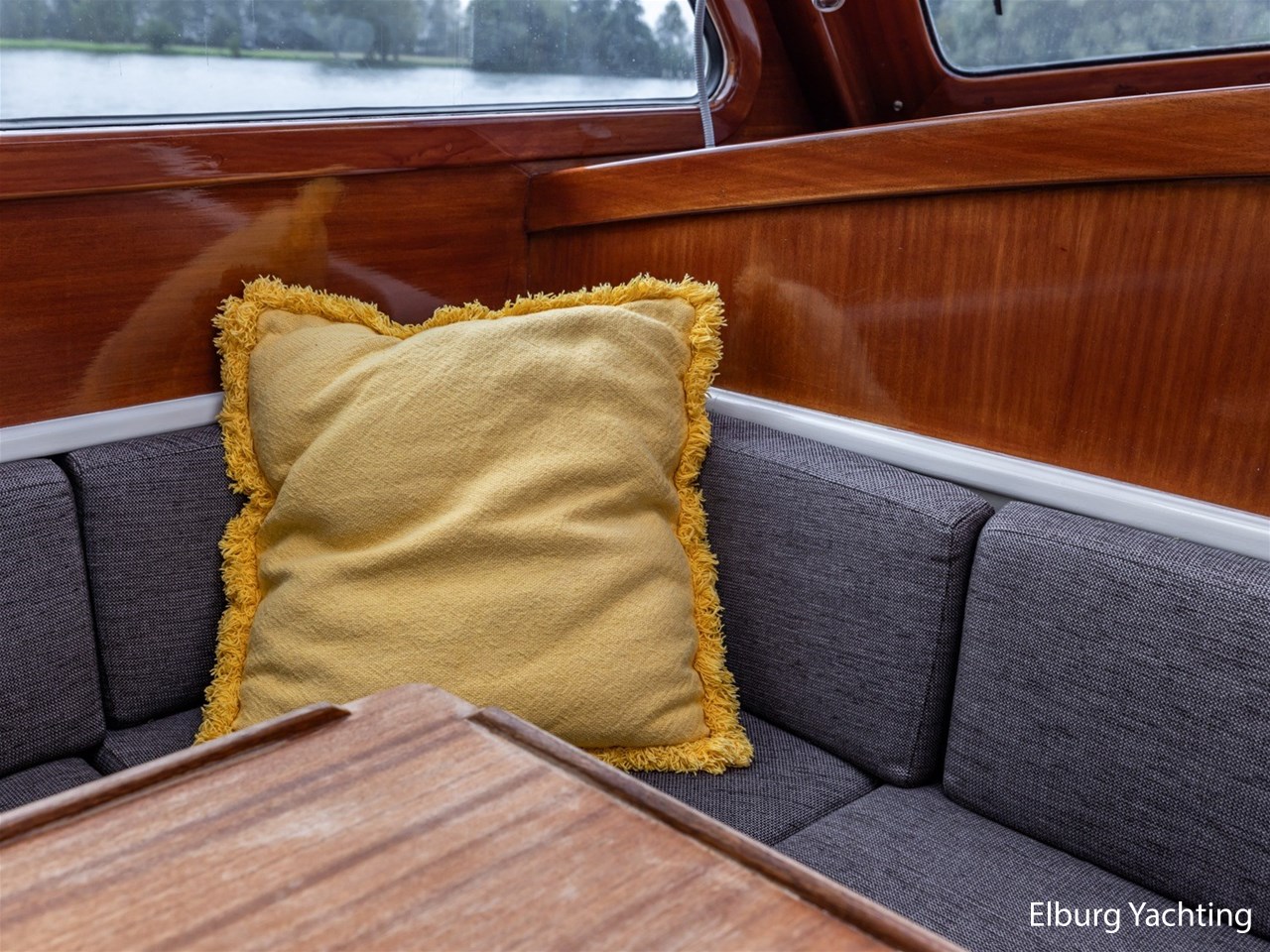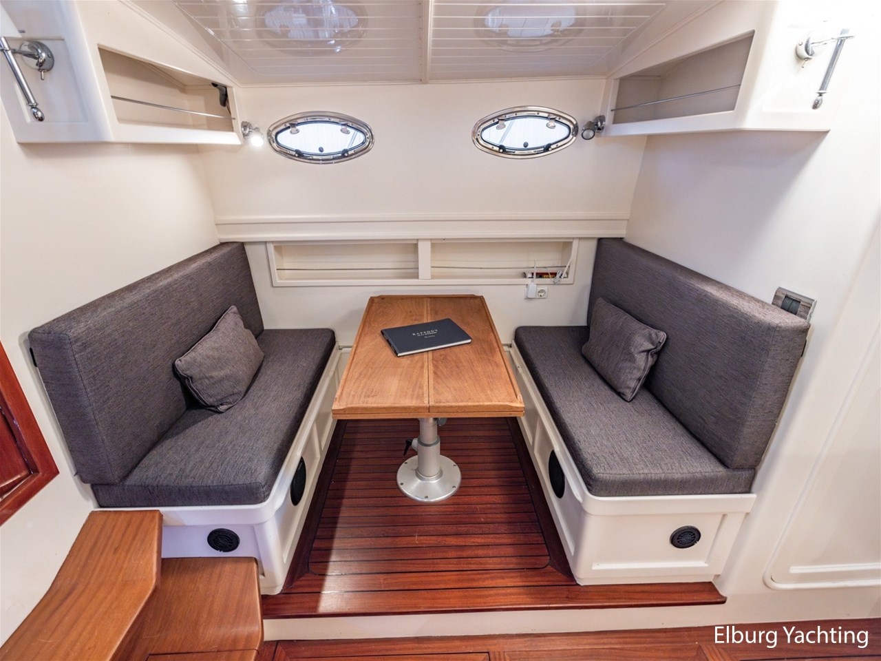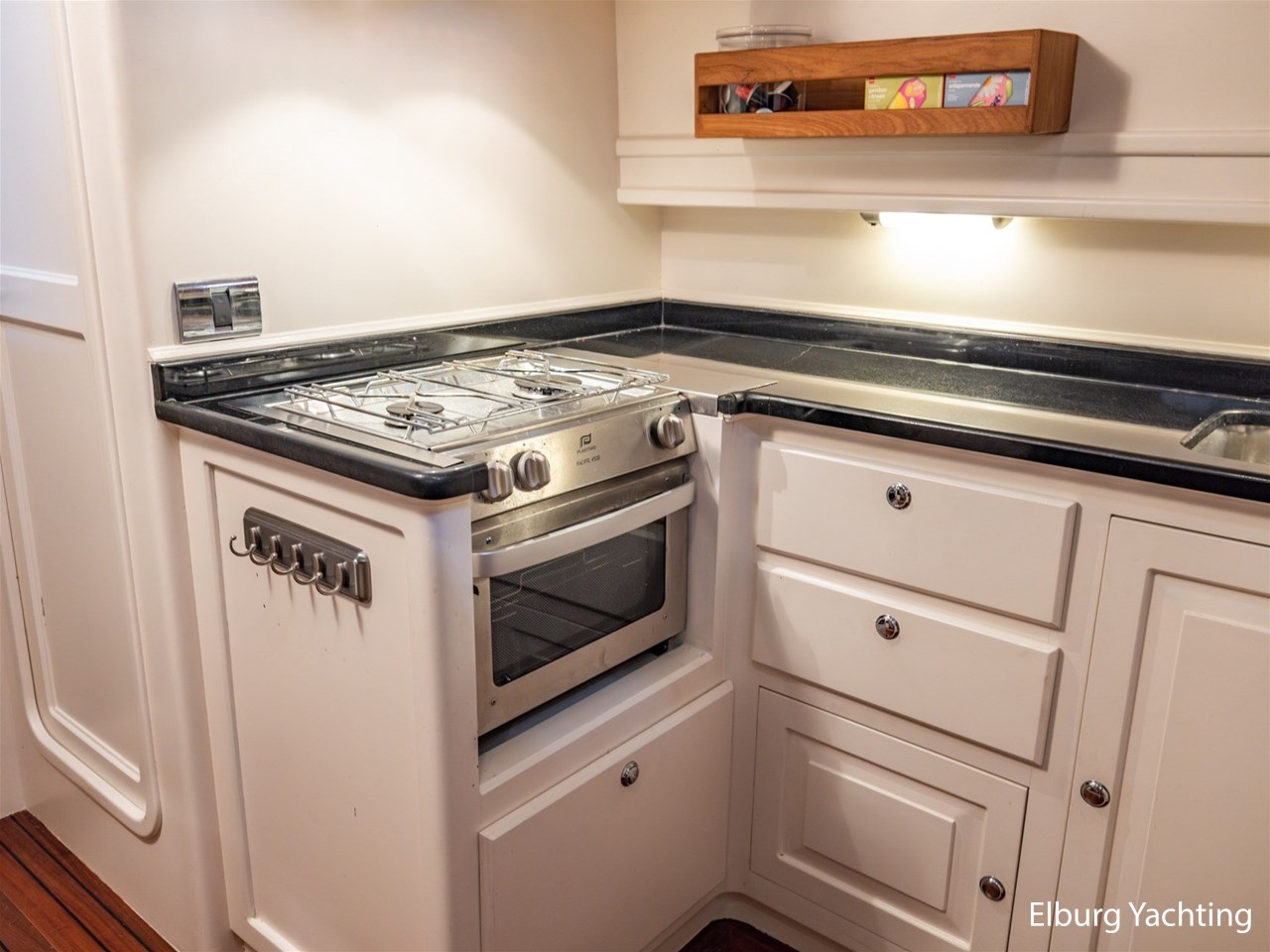 Uiterst fraaie Rapsody 40 Offshore uit bouwjaar 2002 - voorzien van een prachtig Teakdek met gelakte omlijsting en r.v.s. zeerailing. Het jacht beschikt over een prachtige klassieke lijn met moderne ingrediënten zoals de ruime open kuip en het frisse lichte interieur. Het jacht is rondom voorzien van een Teakdek en is afgewerkt met gelakt Teak (zowel de opbouw, het dek en het zwemplateau). De ruime kuip beschikt over een prettige zitgelegenheid, een ijskast en veel bergruimte onder de banken. De stuurstand met nabijgelegen dinette is gezellig gesitueerd onder het vaste dak. Het vaste dak beschikt over twee dakluiken en twee schuiframen aan de zijden. De stuurstand is overzichtelijk vormgegeven en beschikt over onder andere een functioneel Stentec navigatiesysteem, boegschroef, motorbediening en dieptemeter . Aan boord is de kombuis aan stuurboord gesitueerd met de tweede dinette aan bakboord. De kombuis is ruimtelijk georganiseerd met een Plastimo kooktoestel + oven, koelkast, spoelbak en veel kastruimte. Voorin is de eigenaarshut gesitueerd met nabijgelegen toilet en douche. De doorvaarthoogte is ca. 3.65 meter met een minimale kruiphoogte van ca. 2.70 meter. Voor vragen en/of het maken van een afspraak bent u 7 dagen per week van harte welkom bij Elburg Yachting.
