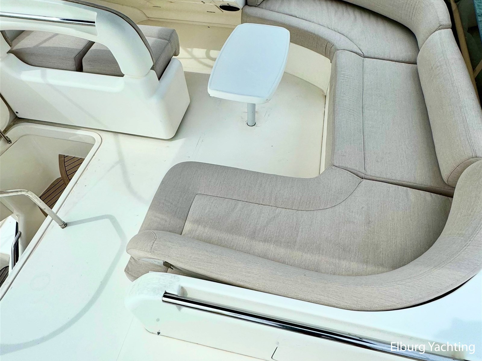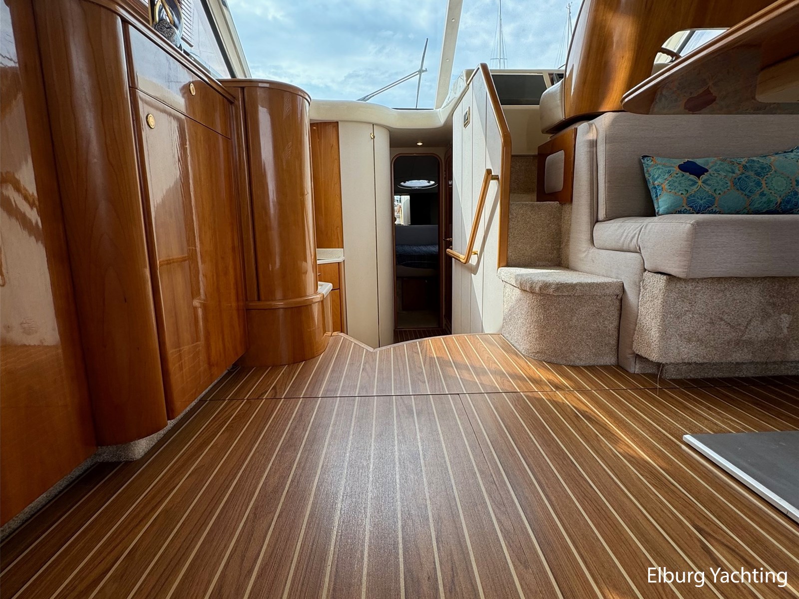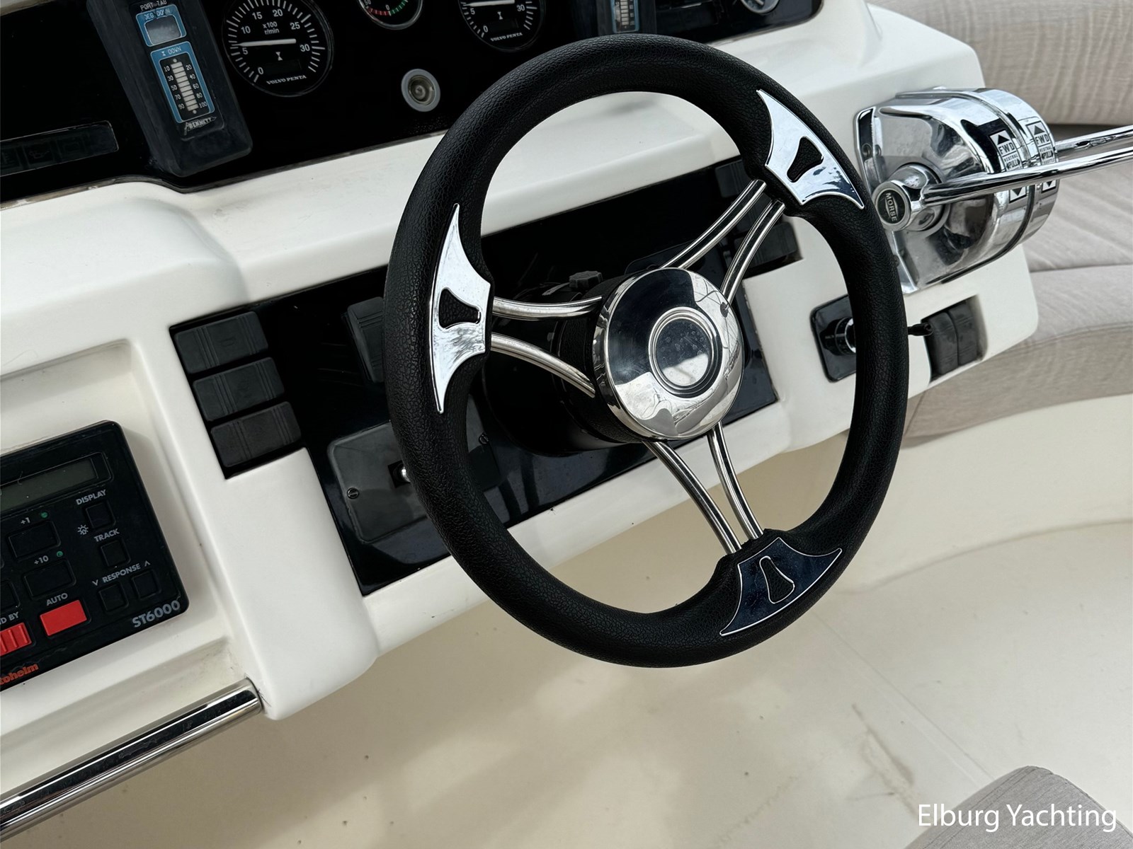 Het jacht heeft een luie trap naar de flybridge, salon, open kuip en zwemplateau gelijkvloers, biminitop op flybridge, nieuwe stoffering in 2024, nieuwe teaklook vloer in de salon, RVS reling rondom, meevaarbank bij stuurstand, RVS stootstrip rondom, de romp is gepolijst in 2024, antifouling 2024, , er is met zorg met het schip omgegaan.
