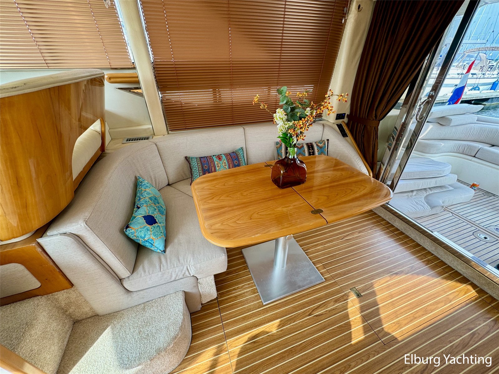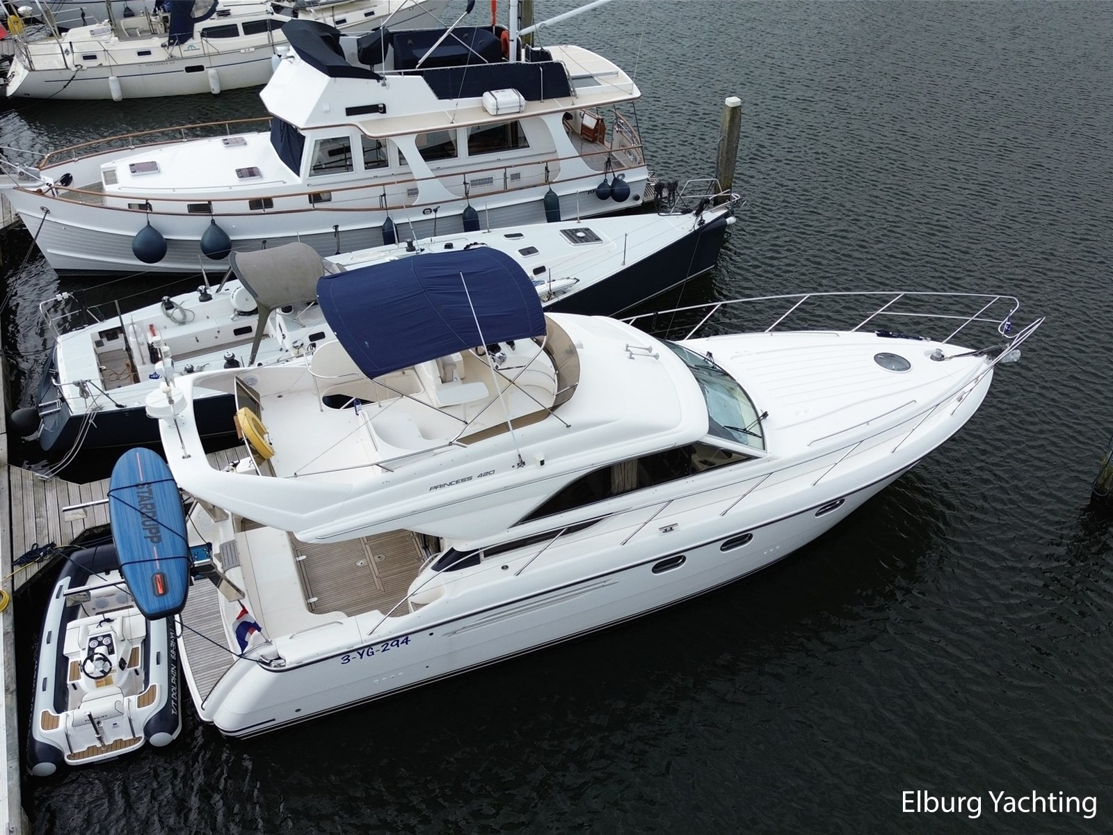 De Princess 420 is een sportief gelijnd, polyester jacht met flybridge. Het jacht beschikt over 2 hutten. Eigenaarshut met een 2 pers. bed, guestcabin heeft 2 x 1 pers. bed. Het jacht heeft een moderne uitstraling met hoogglans kersenhouten interieur.