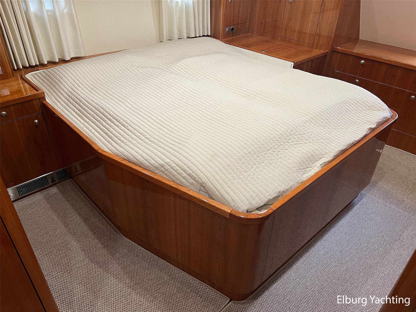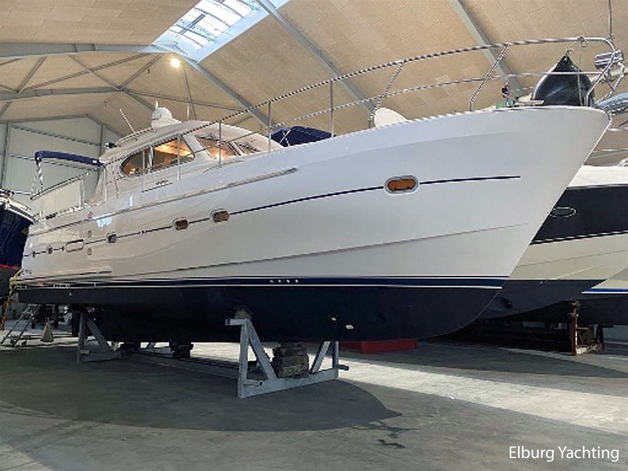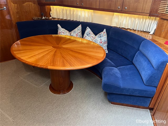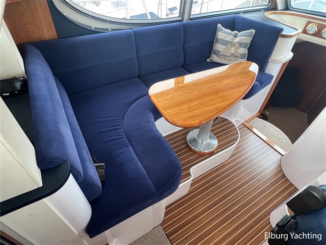 Prachtige en compleet uitgevoerde Elling E4 Ultimate van bouwjaar 2018. Deze alleskunner is zeewaardig gebouwd met CE-A categorisering en is tevens voorzien van een Seakeeper 5 Gyro stabilisator welke de rolbeweging van het schip aanzienlijk reduceert op onrustig water. Met een minimale doorvaarthoogte van ca. 3,45m heeft deze Elling E4 ook een groot vaarbereik op het binnenwater. Er is gekozen voor een 435 pk Volvo Penta hoofdmotor waarmee deze halfgleider een snelheid kan behalen van ca. 17 knopen. De 30 pk hulpmotor heeft een eigen saildrive aandrijving met klapschroef en is met een eigen dieseltank 'stand-alone' van de hoofdaandrijving. Voor de navigatie apparatuur is gekozen voor een compleet pakket van Raymarine met de opties zoals plotter / radar / autopilot / AIS / diepte en snelheid. Deze Elling E4 is uitgevoerd met: Inklapbare biminitop over achterdek, windscherm in het wit rondom reling achterdek, zoeklicht op boeg, r.v.s. fenderhouders, buitenbanken met afneembare kussenset, inklapbare bank op voordek, Yachtcontrol paneel voor bootinformatie zoals informatie over het elektrischsysteem aan boord, klapraam voorste ruit stuurhuis, vaatwasser, was-droog combinatie, ruitenwisser met sproei installatie, grote tafel op het achterdek, zonneschermen voor stuurhuis, achteruitkijkcamera, Corian topbladen, hydraulisch bedienbare gangway met eigen doorgang in reling, SB zijhut kan gebruikt worden kantoor met een bureau maar ook als extra 1 persoons slaapplaats. Laatste motorisch onderhoud uitgevoerd in 2024. Dit schip ligt momenteel op de wal voor de winterstalling en is te bezichtigen aan de Oostzee in Duitsland. Een verbeterde en uitgebreidere fotoreportage volgt op korte termijn.