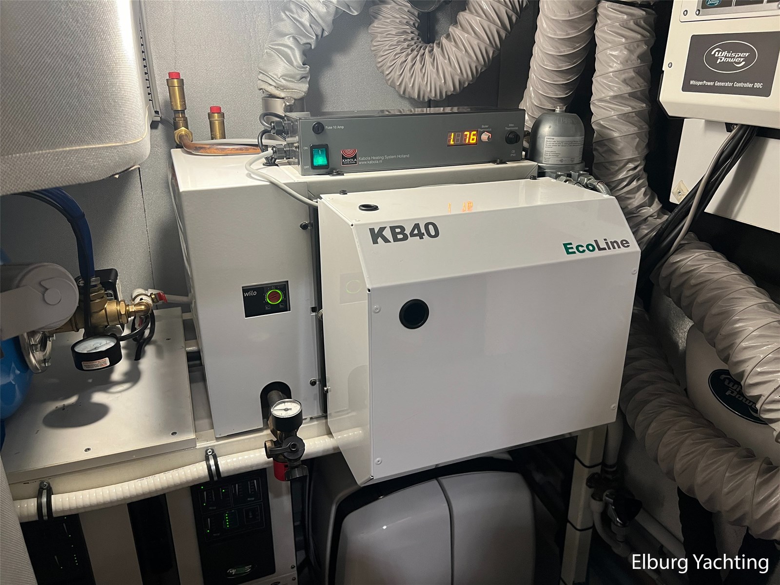 - Kabola centrale verwarming d.m.v. radiatoren door het gehele schip en vloerverwarming in het stuurhuis