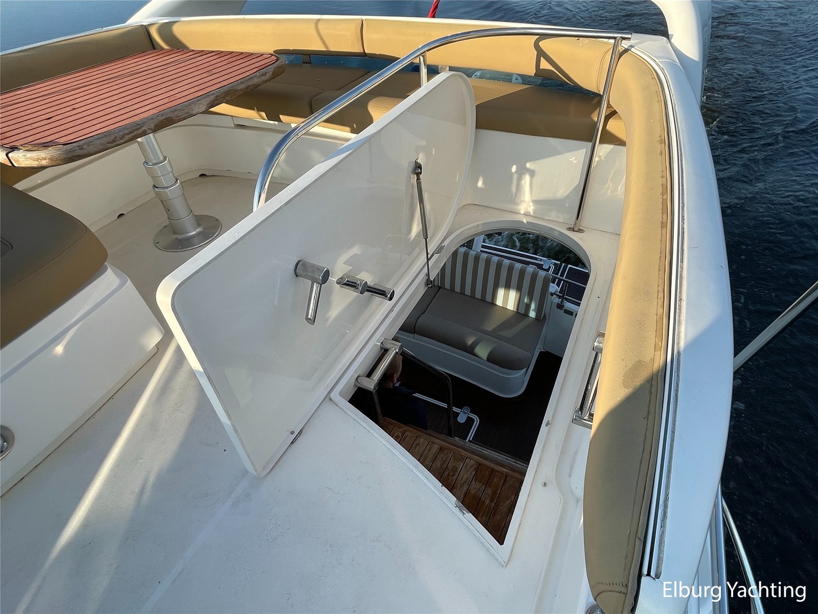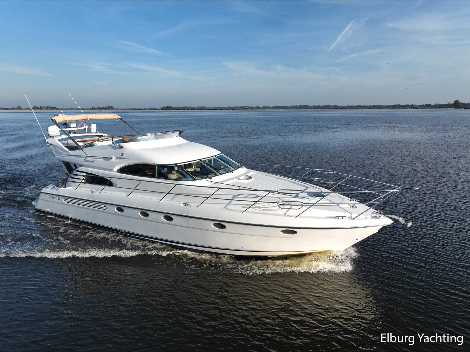 Deze snelvarende Fairline Squadron 55 biedt veel comfort en leefruimte met drie volwaardige 2-persoons vertrekken + 1 x crew. Het jacht beschikt o.a. over: Volledig afsluitbare achtertent, volledige cover over flybridge + losse covers voor bank en tafel, grote r.v.s. schuifdeur met toegang tot de salon, modern hoogglans kersenhouten interieur, 2 ruime zitbanken in de salon, utility room incl. wasmachine en koelkast, zowel binnen- als buitentrap naar flybridge, kussens voor bank op het achterdek, bekleding flybridge (2024), crew cabin met eigen slaapplaats (1 x 2 pers.) en toilet voorziening, groot opbergluik in open kuip, toegang tot machinekamer vanuit utility room en salon, Besenzoni hydraulische gangway tevens als bijboot lift te gebruiken, trim tabs, r.v.s. reling rondom, BB zijdeur in opbouw, 3 x dubbel armige ruitenwisser, volledige biminitop over flybridge, vlucht/ventilatie luiken met muggenhorren, dekwaspomp met aansluiting voor- en achterop,