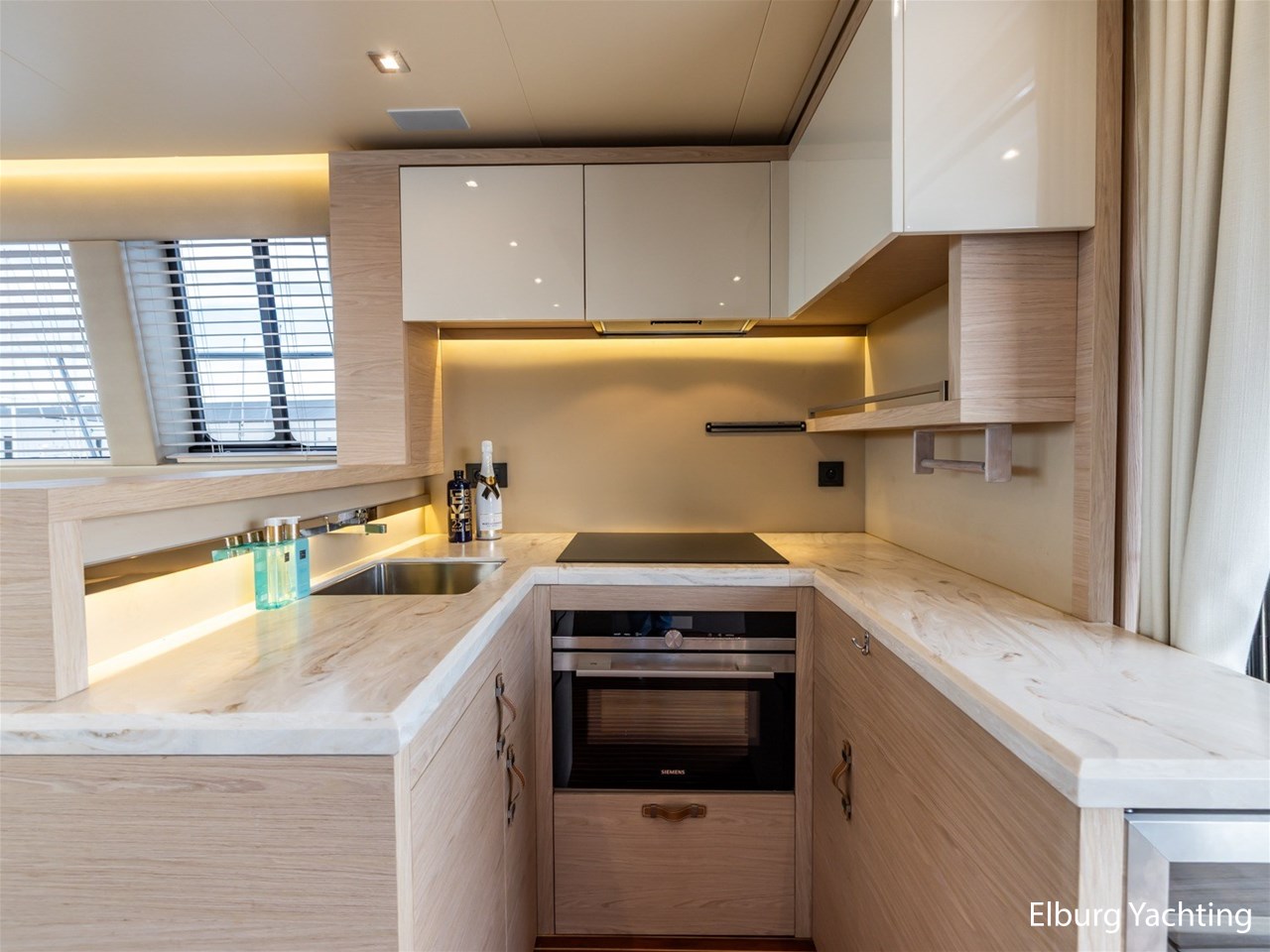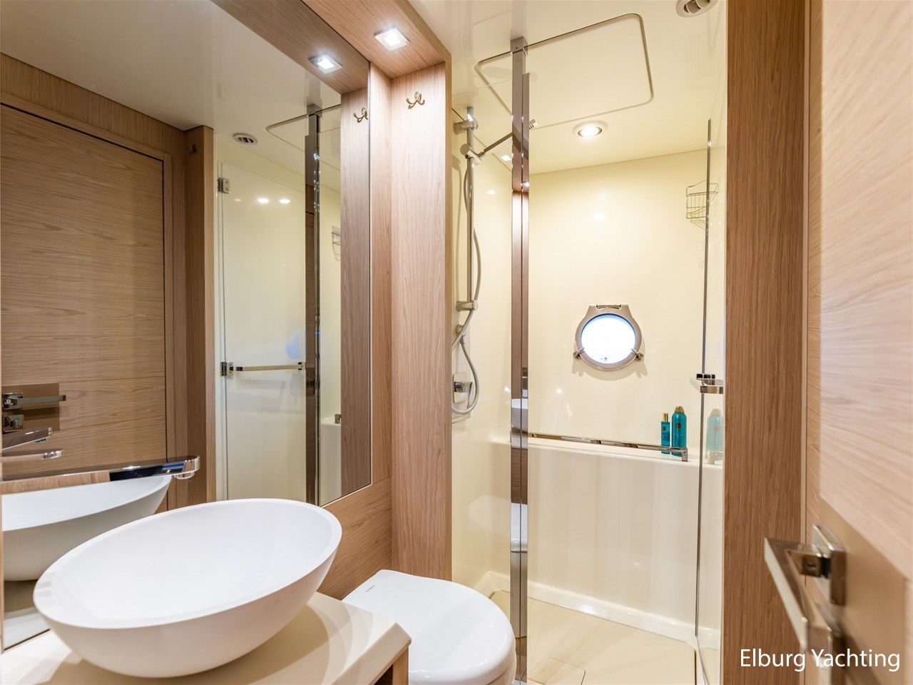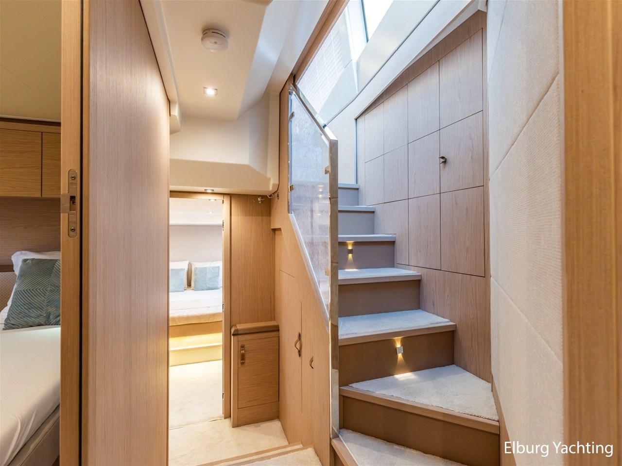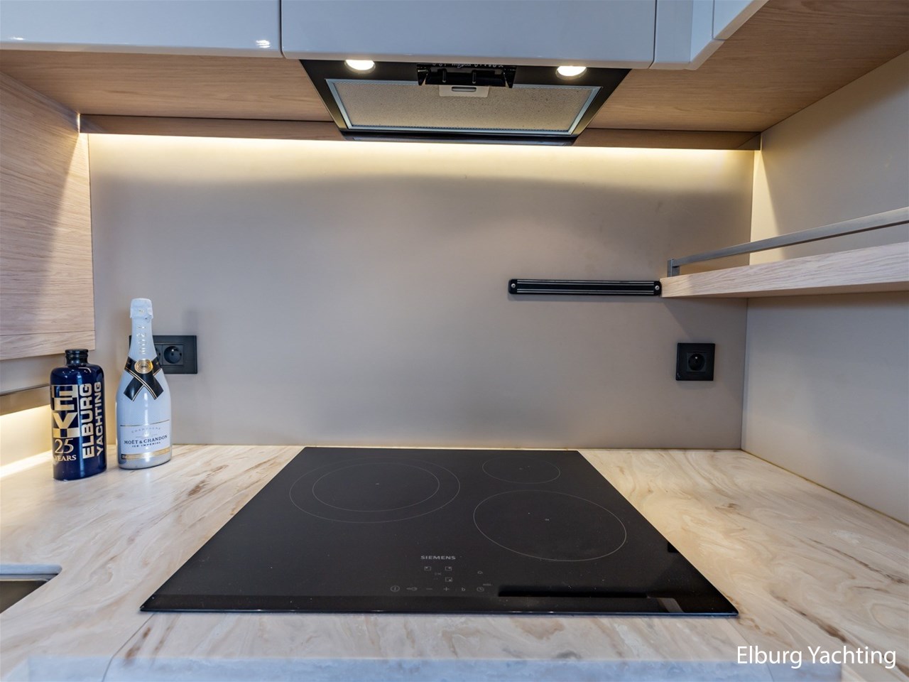 Deze fraaie Beneteau Monte Carlo 6 is een elegant, luxe, comfortabel en vooral sportief jacht en gekozen tot boot van het jaar in de categorie 'Flybridge tot 60ft' bij de 'Motor Boat Awards'. Het jacht is gebouwd in 2018 en is geleverd voor Boat Düsseldorf 2019. Het jacht wordt aangeboden door haar eerste Nederlandse eigenaar sinds haar aankoop in 2021 en is bij ons in Elburg te bezichtigen. In het ontwerp van deze Beneteau Monte Carlo 6 is goed nagedacht over de leefruimte. Het jacht is uitgerust met 3 volwaardige hutten met elk een natte cel, ook beschikt dit jacht over een volwaardige 'Crew-cabin' met eigen natte cel. Het moderne lichte interieur in combinatie met de beige bekleding geeft een ruimtelijk gevoel aan boord. Het jacht wordt voortgestuwd door 2 x 600 pk sterke Cummins Dieselmotoren in combinatie met het Cummins Zeus pod aandrijvingssysteem (middels joystickbediening) met drie stuurstanden door het jacht (1 x stuurstand in de salon + 1 x stuurstand op de Flybridge + 1 x stuurstand in de kuip). Het jacht is voorzien van een royale Flybridge met een T-top welke voorzien is van een schuifdak. Verder wordt dit jacht geleverd met onder andere: geïntegreerde hydraulische gangway, geüpgraded 17,5 KVA generator, onderwaterverlichting, koelkast op de Flybridge, grill op de Flybridge, wijnkoeler, wasmachine/droger, watergekoelde airconditioning 66KBTU door het jacht + watergekoelde airconditioning in de Crew-cabin 4000BTU en is het onderwaterschip in 2025 opnieuw opgebouwd. Voor vragen en/of het maken van een afspraak bent u 7 dagen per week van harte welkom bij Elburg Yachting.