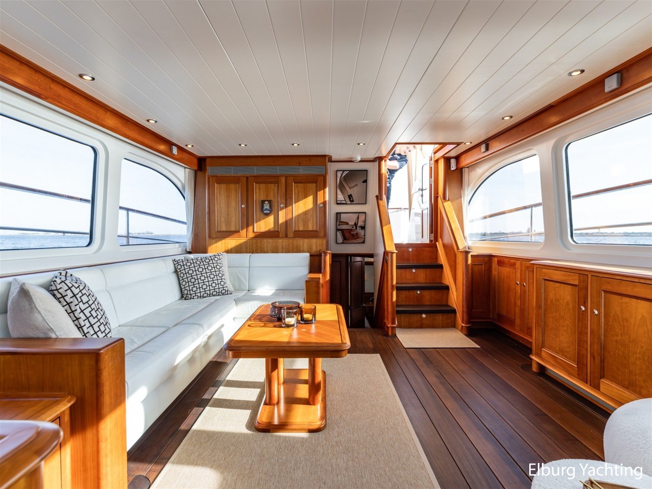 De Mulder Classic 77- Eleonore straalt een tijdloze elegantie uit. Bij binnenkomst wordt u gelijk omarmd door de warme sfeer van het interieur. Er is gebruik gemaakt van hoogwaardige materiaal, luxe afwerking, zachte lederen meubels en een open indeling. Dit creeert een omgeving van rust en ruimte maar u ervaart ook direct het ultieme familiegevoel op het water.