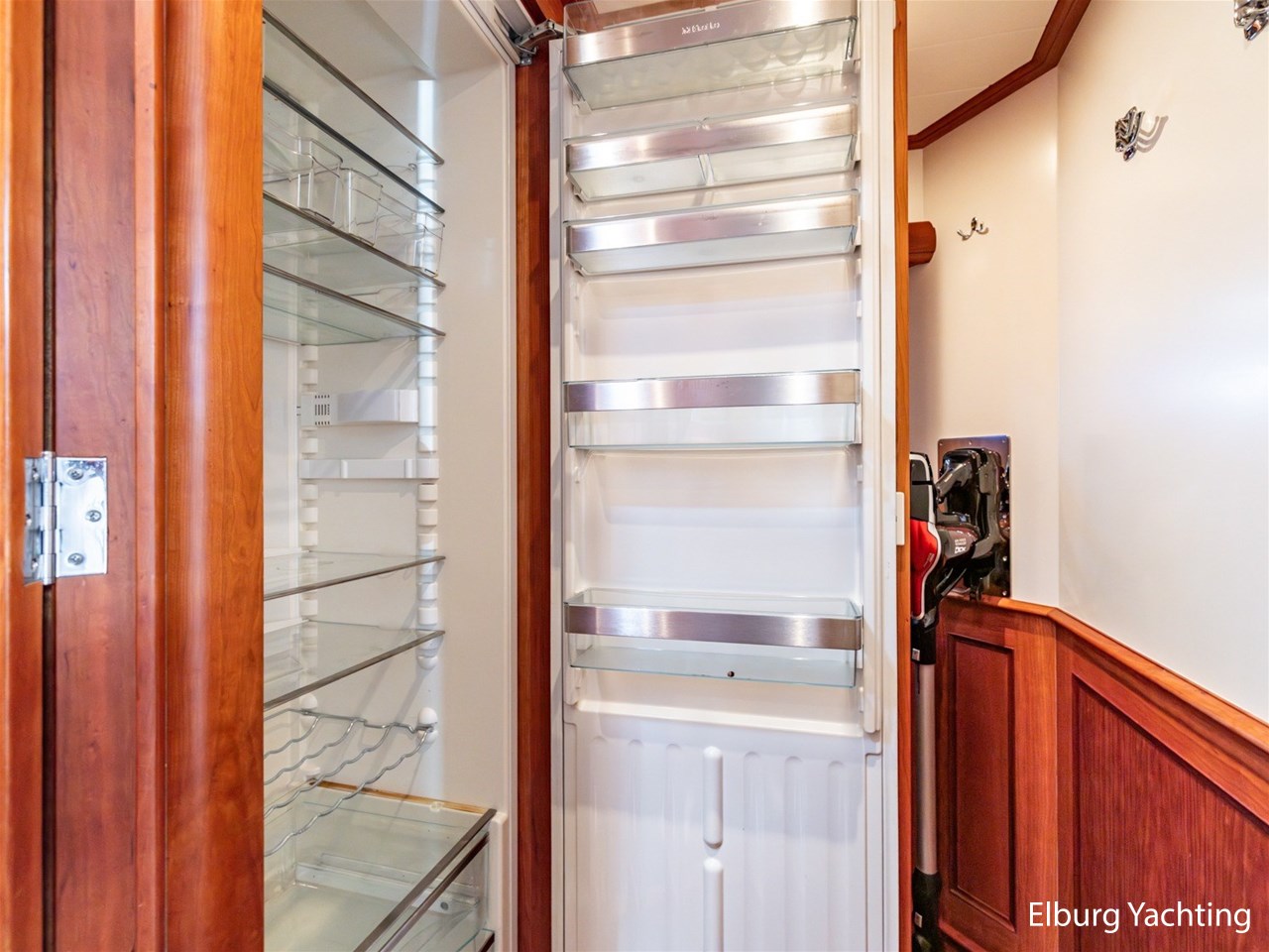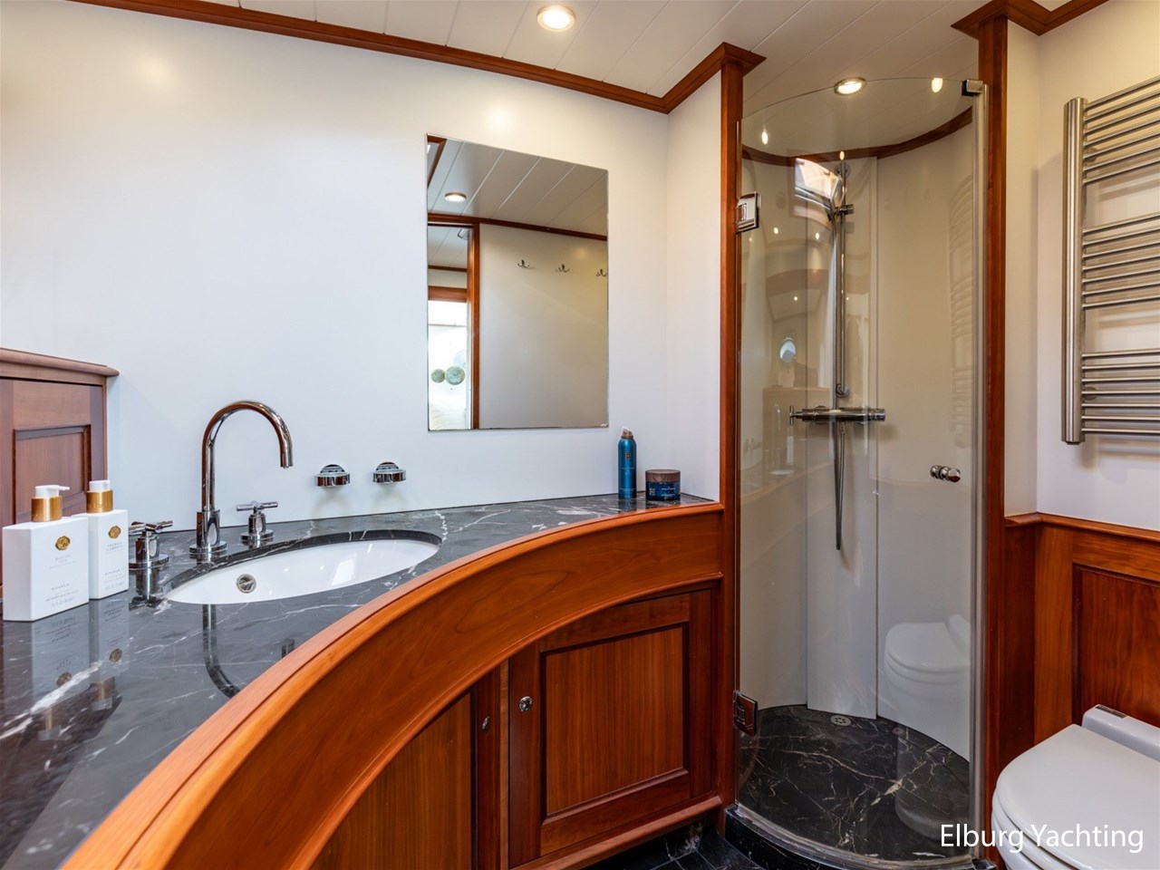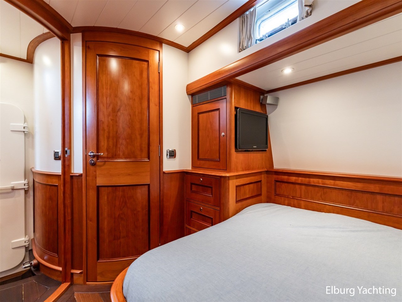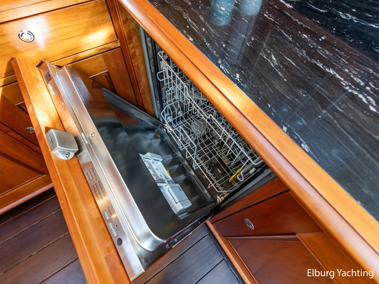 Het jacht beschikt over een ruime keuken en een zeer ruime U-vormige dinette tegenover de keuken. De eigenaarshut is ontworpen met oog voor detail en comfort. Het is een ruime hut met ensuite een badkamer, en biedt een royale inloopruimte incl. een bureau met veel kastruimte voordat de slaapruimte wordt betreedt Het interieur heeft prachtig gebogen deuropeningen en deuren, die de traditionele en klassieke charme benadrukken, terwijl de moderne accenten in het jacht haar veelzijdigheid onderstrepen.