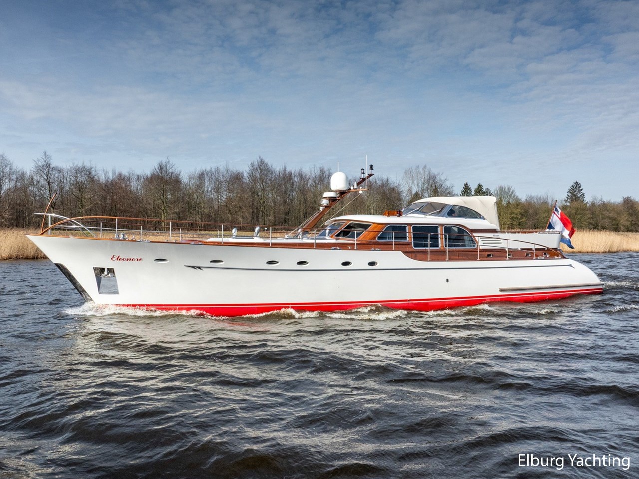 De Mulder Classic 77- Eleonore is een indrukwekkend jacht van Mulder Shipyard. Dit unieke custom one-off built jacht is ontworpen door Theo Werner. De klassieke, rondspant lijnen zijn gecombineerd met de modernere look and feel. Het is een 23 meter stalen motorjacht die wordt aangedreven door 2 Caterpillar C7 motoren. Het jacht biedt stabiliteit en comfort tijdens uw vaartocht.