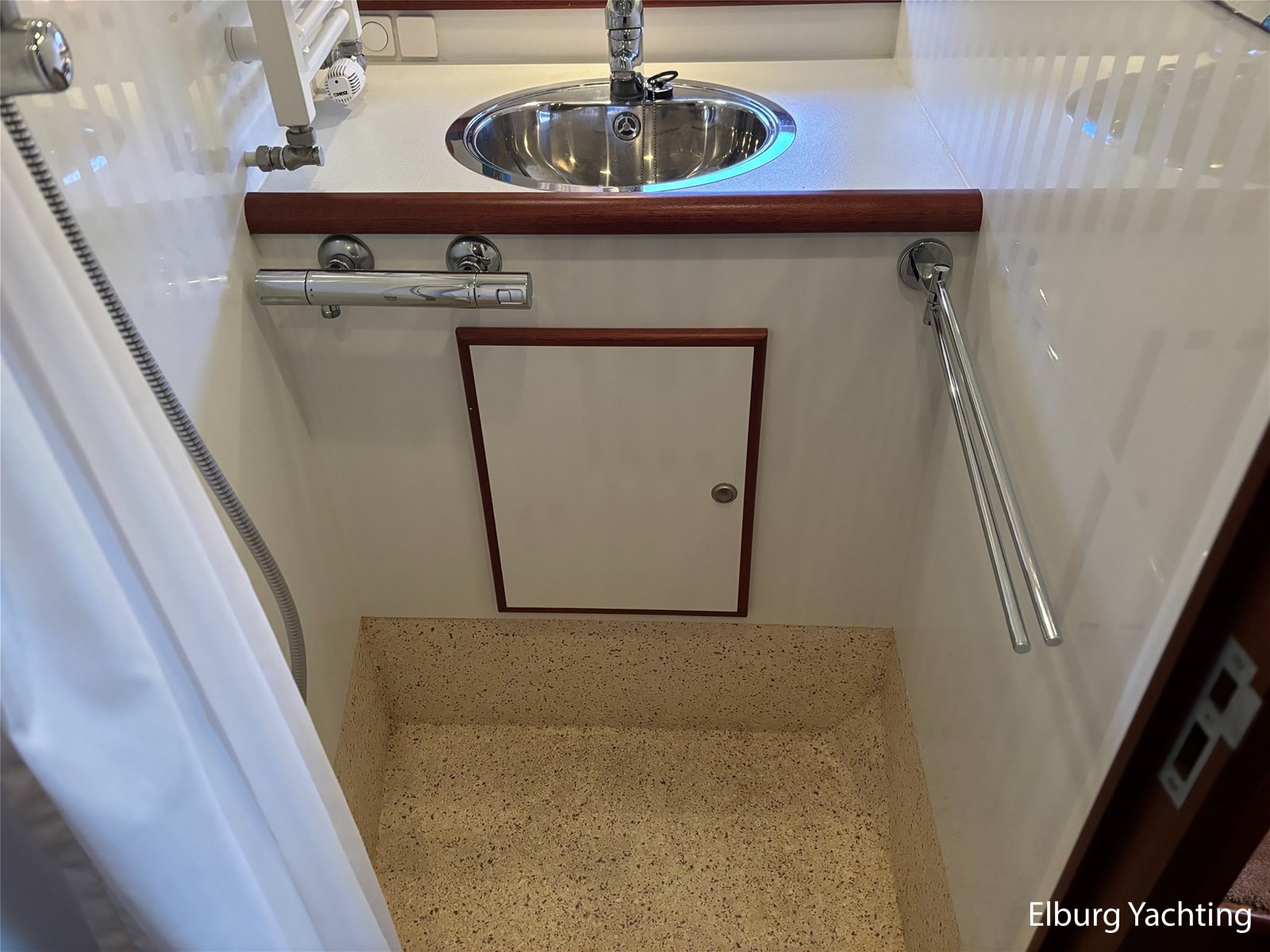 - Geïntegreerd met kunst teak + 2 x half ronde trap vanaf dek + R.V.S. zwemtrap