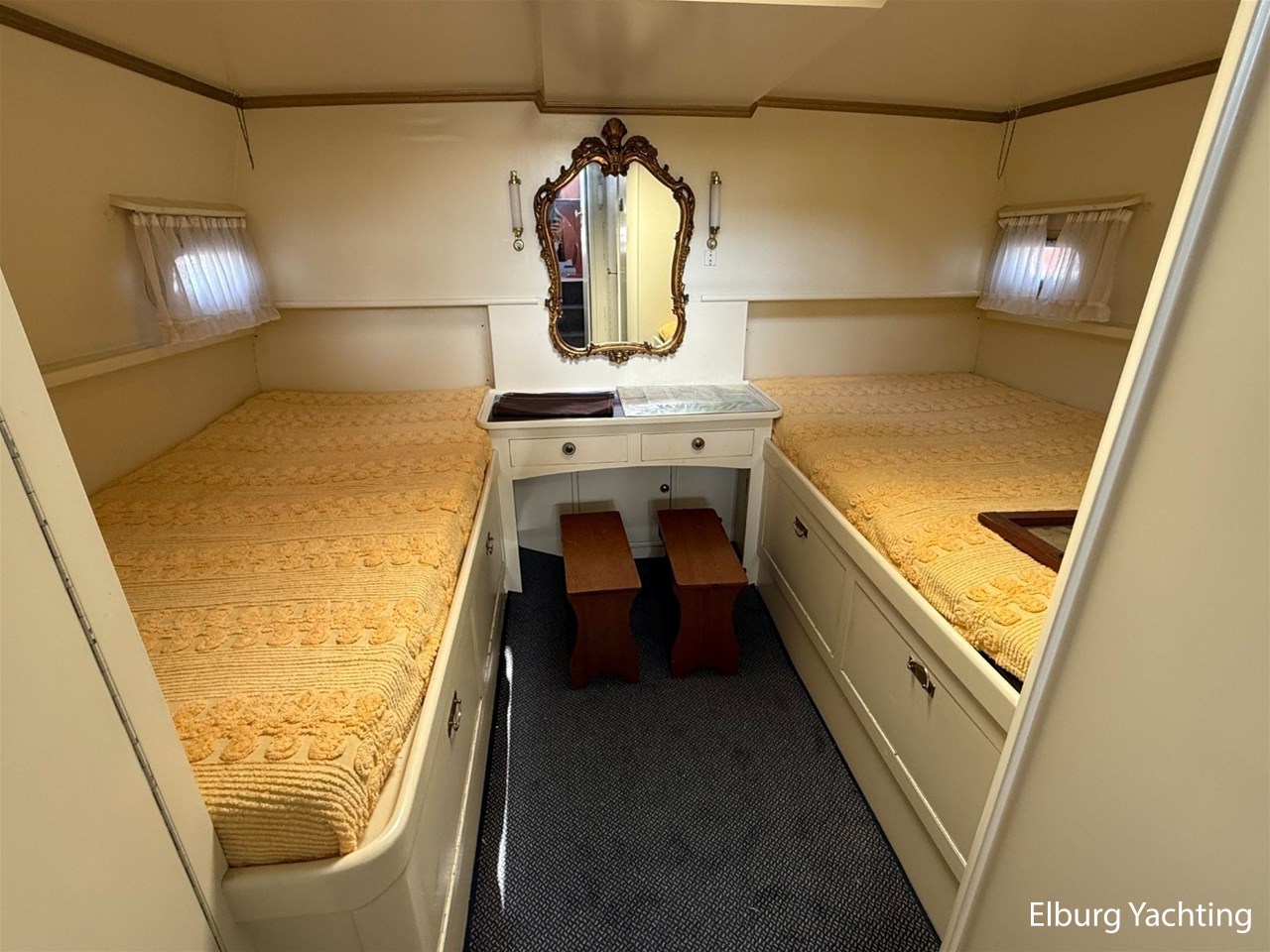 Prachtige klassieke Super van Craft 14.70 Cabrio aangeboden door haar Nederlandse eigenaar. Het jacht is gebouwd in 1968 door Klaassen te Voorschoten en in de periode rondom 2004 professioneel onder handen genomen en daarna nauwelijks nog heeft gevaren en slechts droog heeft binnen gestaan. Er zijn in 2004 2 nieuwe 120 pk sterke Volvo Penta dieselmotoren ingekomen. Het betreft een prachtige klassieke Super van Craft die klaar is voor een nieuwe eigenaar. Het jacht beschikt over een fijne rondspant romp met voorbereiding voor stabilisatoren en is rondom voorzien van Teak (gangboorden / voordek / voorroef / achterdek / zwemplateau). Onder verschillende weersomstandigheden is het jacht te varen middels de 2 stuurstanden (binnen en buiten). Het jacht beschikt verder over een ruime salon, fijne kombuis met naastgelegen dinette, voorhut met drie bedden en nabijgelegen natte cel met toilet en wastafel. De achterhut met twee bedden en nabijgelegen natte cel met toilet, wastafel en douche. Inspectierapport uit 2025 van het casco op verzoek beschikbaar. Voor vragen en/of het maken van een afspraak bent u 7 dagen per week van harte welkom bij Elburg Yachting.