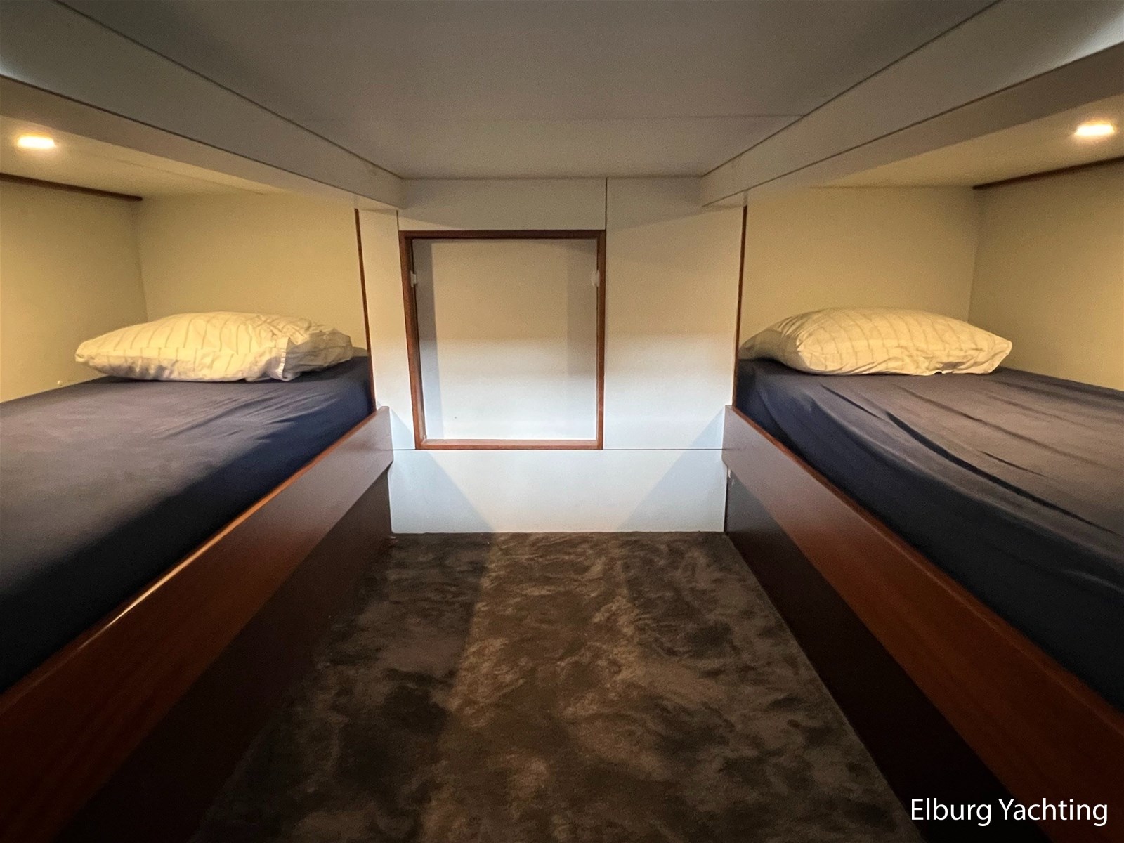 - 4 x vast (1 x 2 persoons vrijstaand bed 180x200cm in voorhut + 2 x 1 pers.)