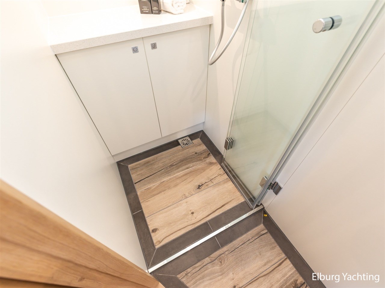 - Geïntegreerd zwemplateau voorzien van hoogwaardig kunst Teak + zwemtrap en hekanker