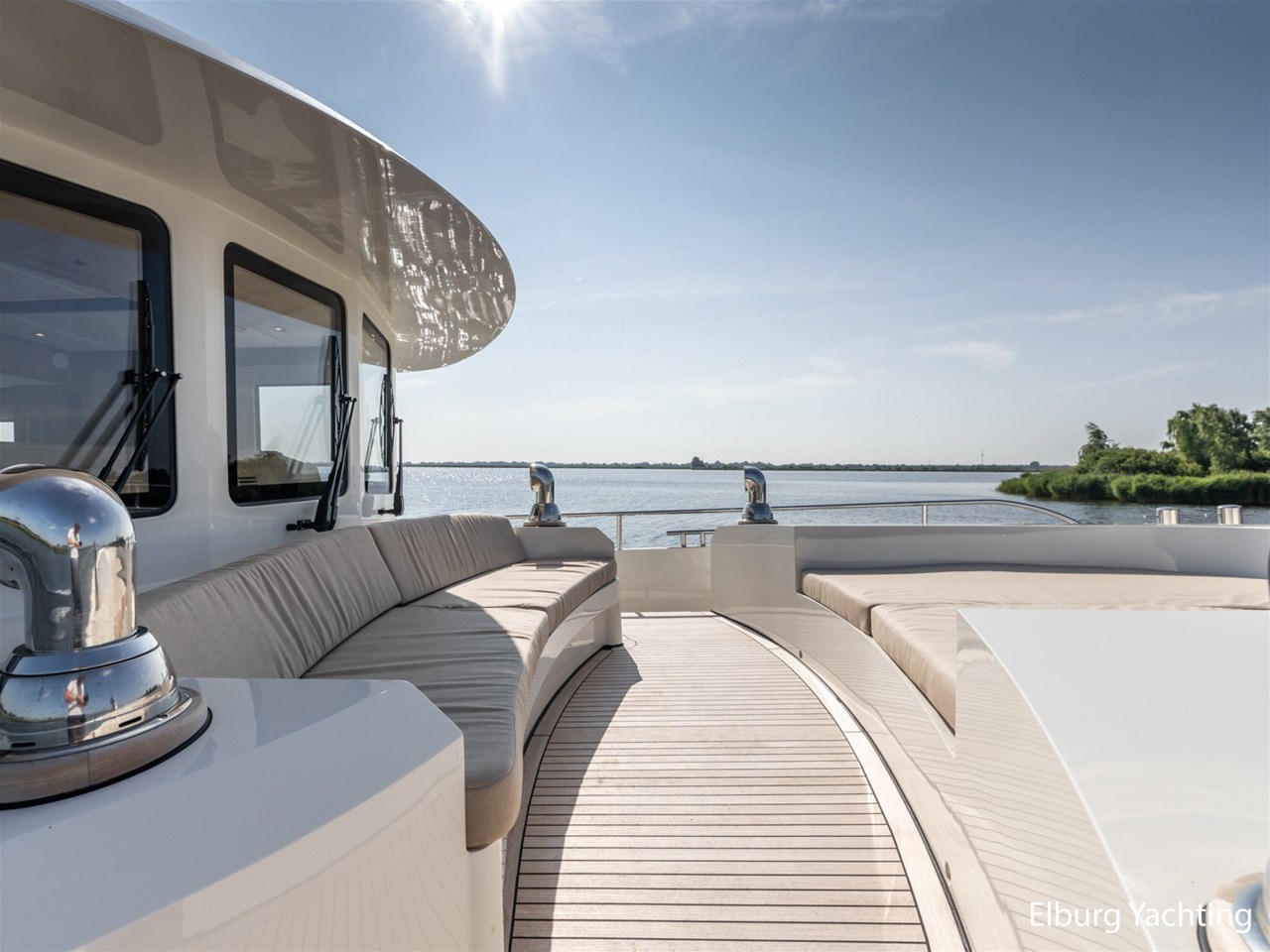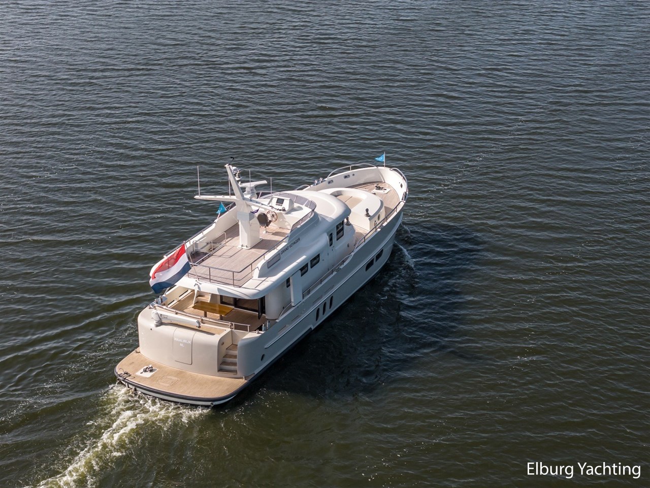 Deze prachtige nieuwe De Alm Grand Voyager 65 is gebouwd door Jachtwerf De Alm uit Waalwijk en ontworpen door Werner Yacht Design in combinatie met Azza Yachting. Dit jacht is zeer exclusief gebouwd in Grade A-steel dat is afgewerkt met een zeer hoogwaardig VANDENENDEN 2023 Awl Grip superyacht verfsysteem. Het jacht is gebouwd met een multiknikspant romp in combinatie met hydraulische stabilisatoren, twee hydraulische spudpalen en hydraulische boeg- en hekschroef. Via de dubbele stuurstand (1 x in het stuurhuis + 1 x op de flybridge) is het jacht tevens via de Hydronautica afstandsbediening eenvoudig te besturen.