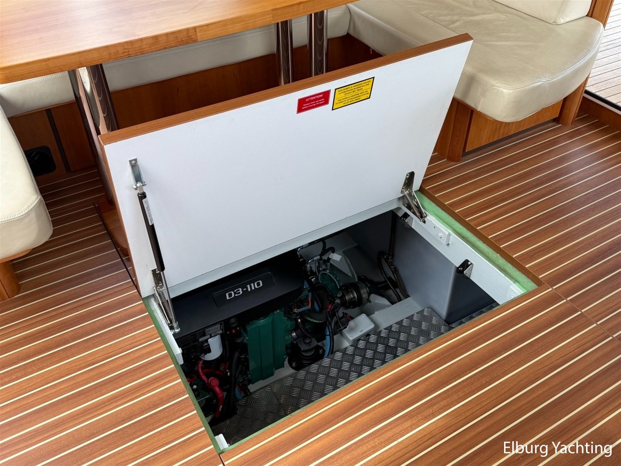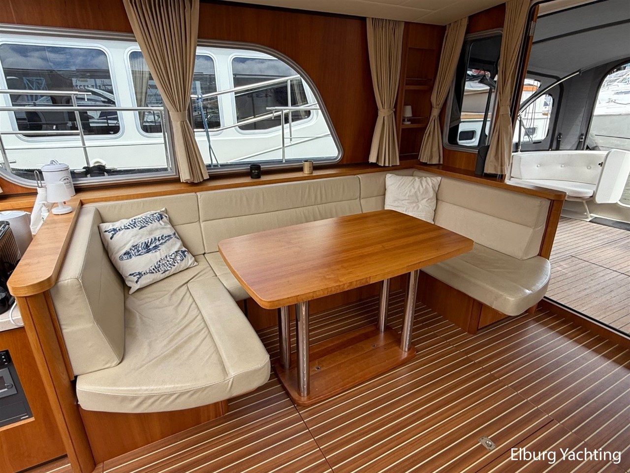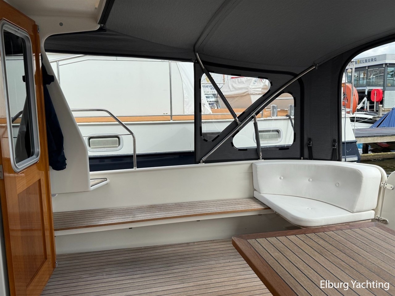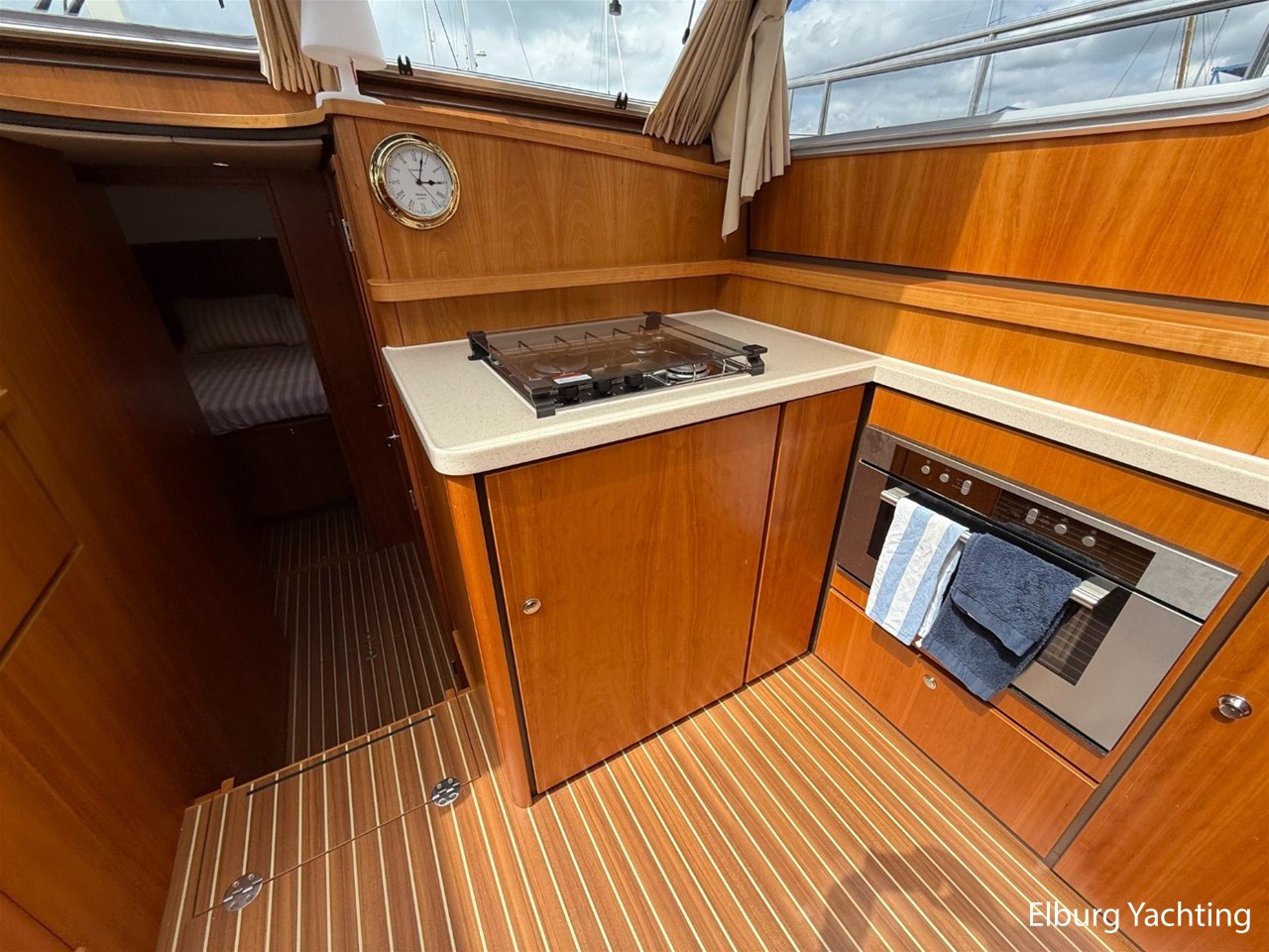 Het Sedan model kenmerkt zich met de ruime Open kuip met luxe kussens en een grote vaste Teakhouten tafel. Via deze royale kuip beweegt u zich comfortabel naar de gelijkvloerse Salon met royale U-bank (welke uit te schuiven is tot een 2 persoons bed) met daartegenover 2 comfortabele fauteuils. Aan bankboordzijde is de stuurstand gesitueerd met ruime bank voor twee personen. Boven de stuurstand is een fraai schuifdak gemonteerd voor het ultieme buitengevoel. Verder naar voren is de Kombuis gesitueerd met royale koelkast, 3 pits kooktoestel, elektrische combi oven/magnetron. Voorin is de eigenaarshut met dubbel bed, aan bakboord de gastenhut met twee enkele bedden en aan stuurboord de aparte toilet en de aparte douche met mogelijkheid tot het inbouwen van een wasmachine. Voor vragen en/of het maken van een afspraak bent u 7 dagen per week van harte welkom bij Elburg Yachting.