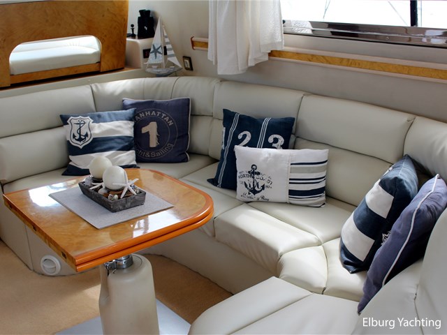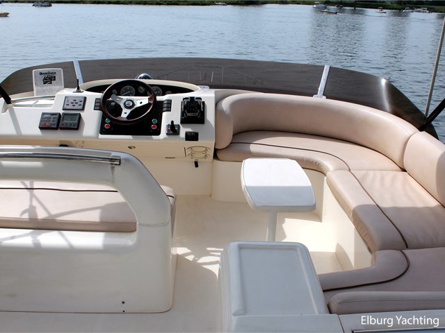 Deze Princess 480 Flybridge verkeert in zeer goede staat van onderhoud. Het schip biedt veel comfort en ruimte met 3 x volwaardige 2-persoons hutten. Het schip is o.a. uitgevoerd met: Vaste zitbank in open kuip met buitenkussens, open kuip en salon gelijkvloers, r.v.s. schuifdeur naar salon, "luie" vaste trap naar flybridge, ruime dinette op flybridge, zonnebed, vaarbank op flybridge, trim tabs, volledige afsluitbare tent rondom open kuip met afneembare verduisteringen, r.v.s. buitenreling rondom, 2 x schuifraam in salon, biminitop op flybridge, veel kastruimte, buitendouche, deur in spiegel naar zwemplatform, toegang machinekamer vanuit de open kuip, minimale doorvaarthoogte ca. 3,90 meter. Laatste complete motoronderhoud uitgevoerd in 2025, antifouling vernieuwd in 2024.