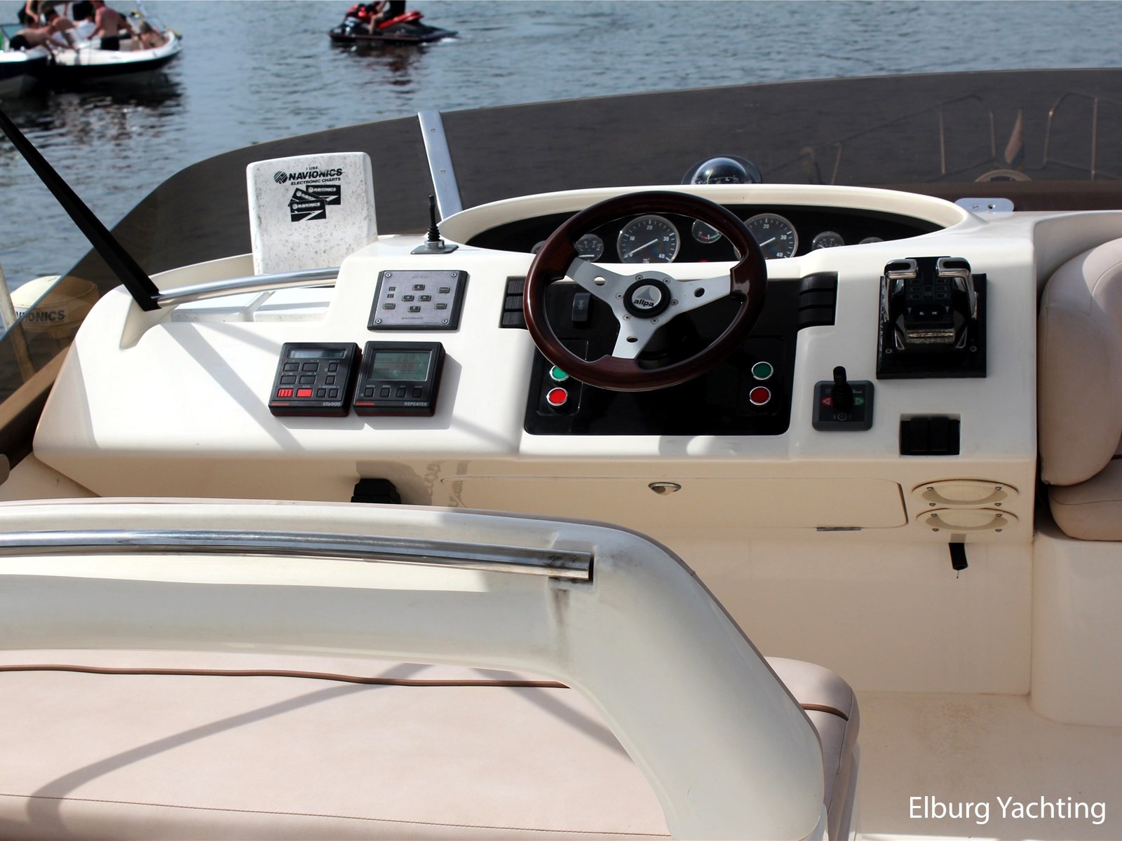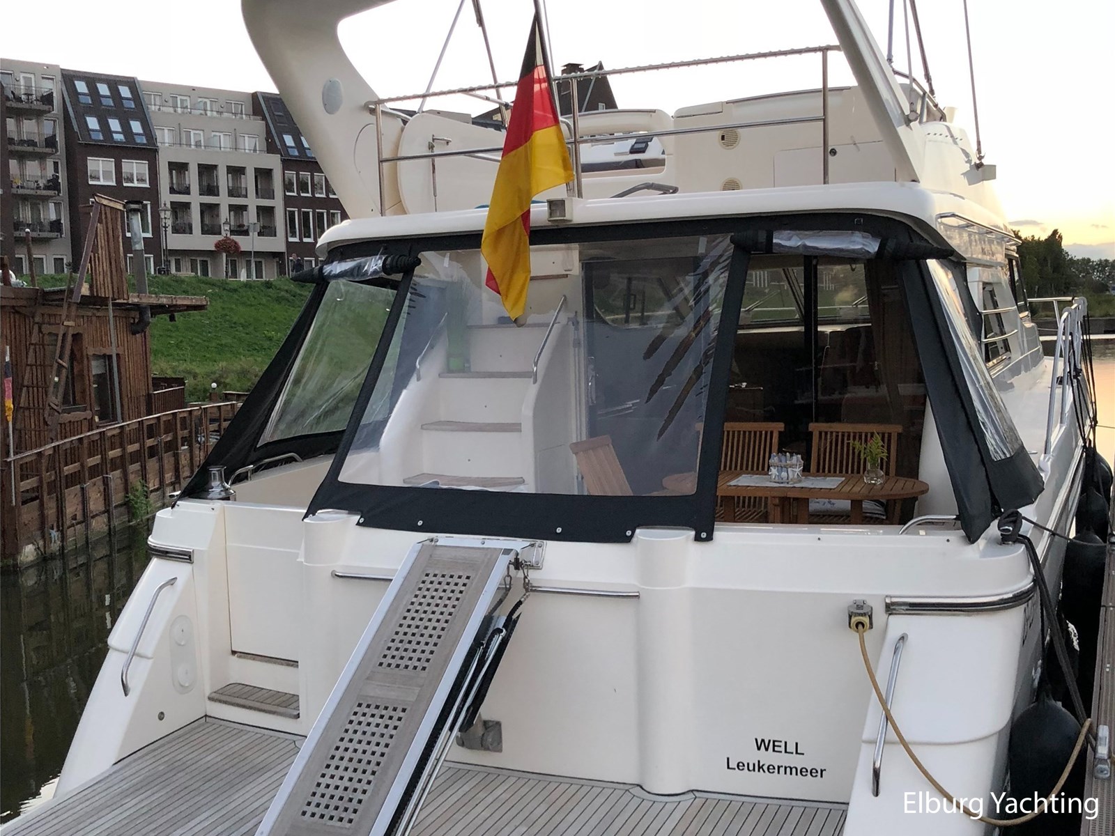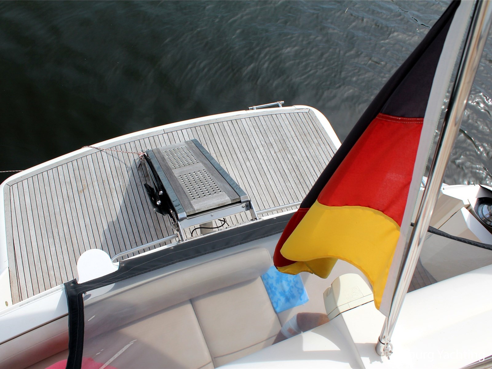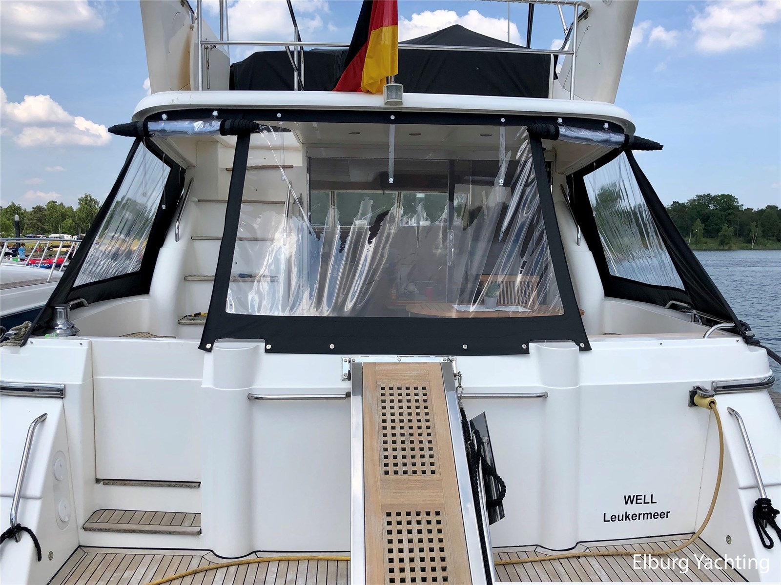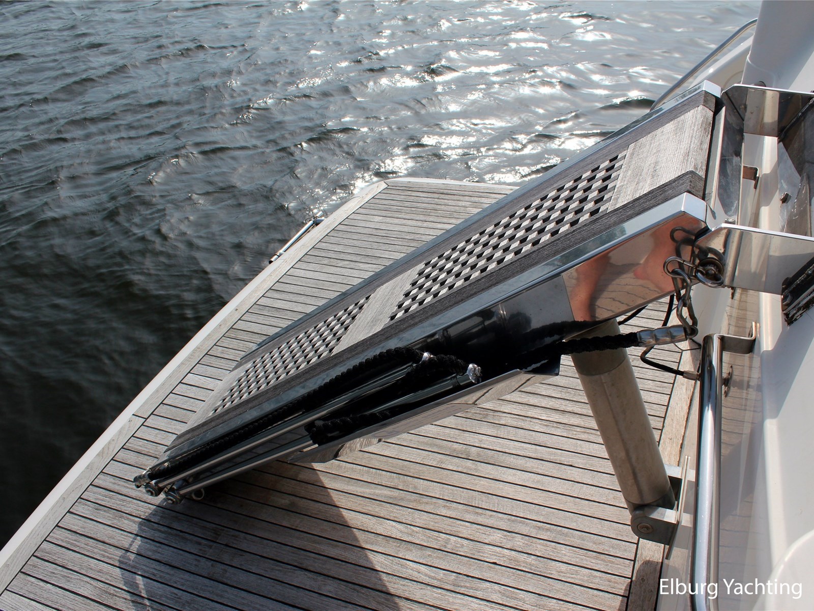 - Geïntegreerd met teak dek (vernieuwd in 2017) + r.v.s. zwemtrap
