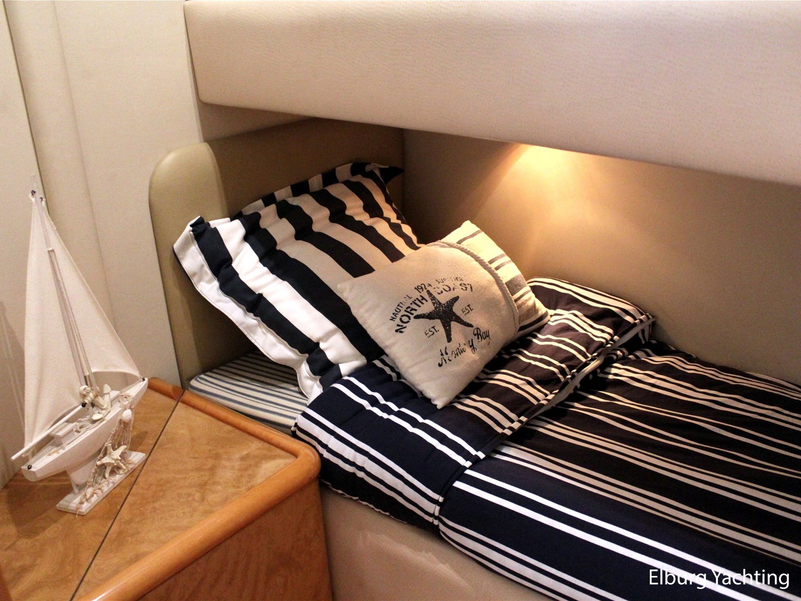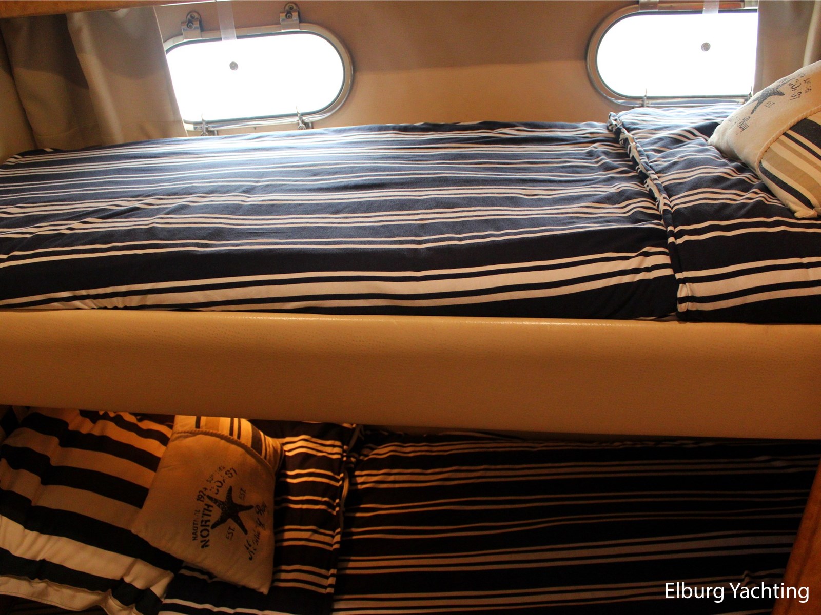 - 6 x vast (1 x 2 pers. frans bed in voorhut + 2 x 1 pers. aan SB-zijde + 2 x 1 pers. stapelbed aan BB-zijde)