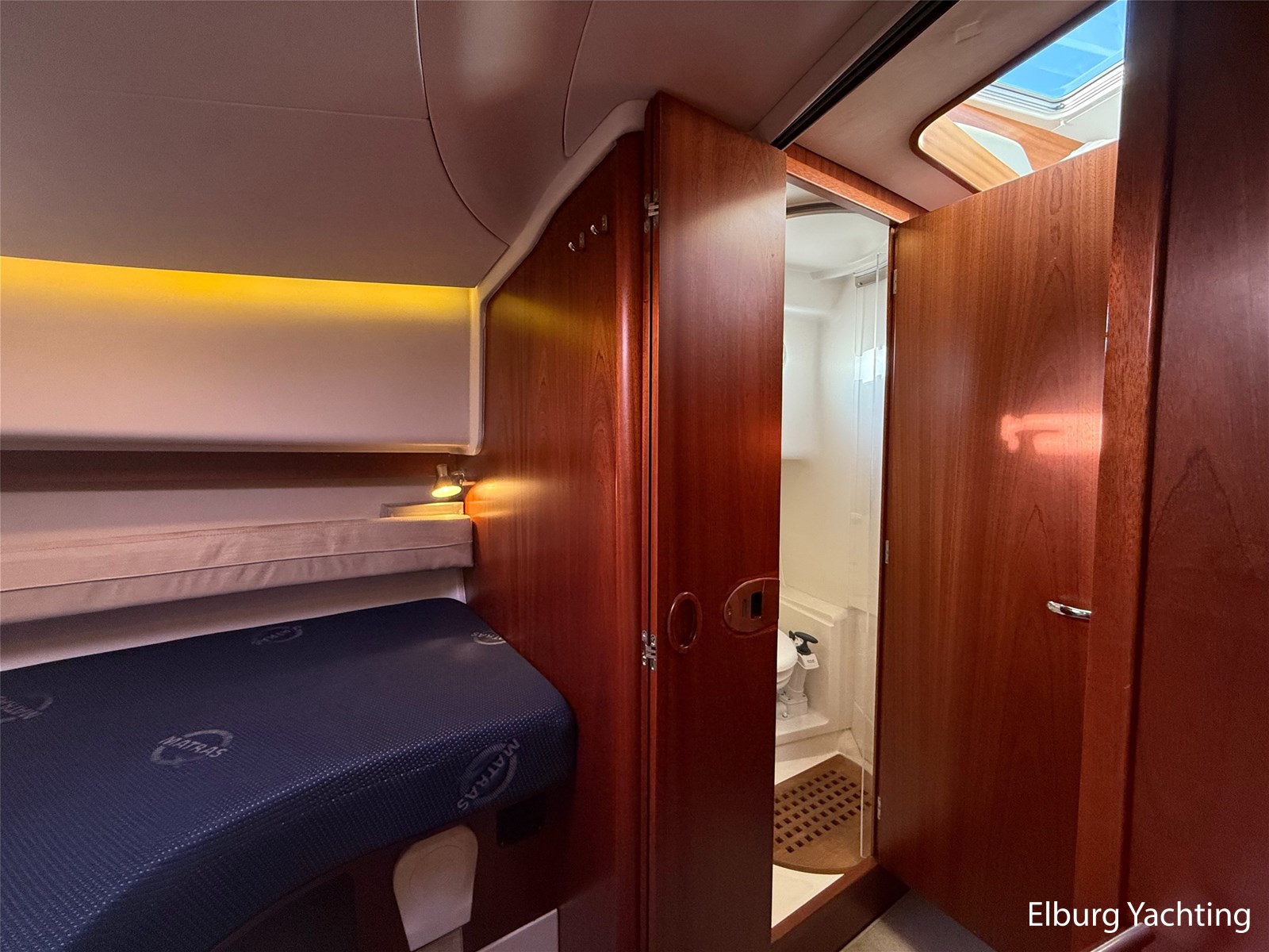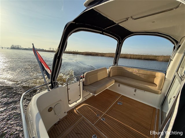 De Nimbus 335 beschikt over een ruime en verzorgde kuip, waarin comfort en functionaliteit mooi samenkomen. De zitbank met kussens nodigt uit tot ontspannen momenten aan boord, terwijl de diepe opbergbak praktische bergruimte biedt. Dankzij de volledig afsluitbare kuiptent is deze buitenruimte ook bij minder weer een prettige plek om te verblijven. Via een gemakkelijke doorgang bereikt u het zwemplatform. De salon is bereikbaar via een schuifdeur en biedt aan stuurboordzijde de kombuis en de stuurstand. De stuurstand is voorzien van een handige deur naar het gangboord. Aan bakboord bevindt zich een comfortabele dinette met in hoogte verstelbare tafel. Voorin, tegenover de stuurstand, is een klapbare meevaarbank aanwezig met een uitschuifbare tv. De combinatie van mahoniehouten betimmering en lichte bekleding geeft het interieur een warme, stijlvolle Scandinavische uitstraling. In 2025 zijn onder andere het toilet, de radar, omvormer, marifoon, Fusion-radio en de matrassen vernieuwd. De warmtewisselaar is gereviseerd. In 2025 is het schip voorzien van nieuwe antifouling en is er een uitgebreide poets- en polijstbeurt uitgevoerd. De motor kreeg in 2025 een onderhoudsbeurt en de plotter werd vervangen in 2023. Grote luiken in de kuipvloer zorgen voor uitstekende toegang tot de motorruimte, bergruimte en technische installaties. Het gemiddeld brandstofverbruik (5-6 knopen varen) bedroeg circa 3 liter per uur. Met originele Nimbus-details zoals het servies, een chique dubbele RVS zeerailing en een doordachte indeling is dit jacht een compleet geheel. Volledige documentatie beschikbaar.