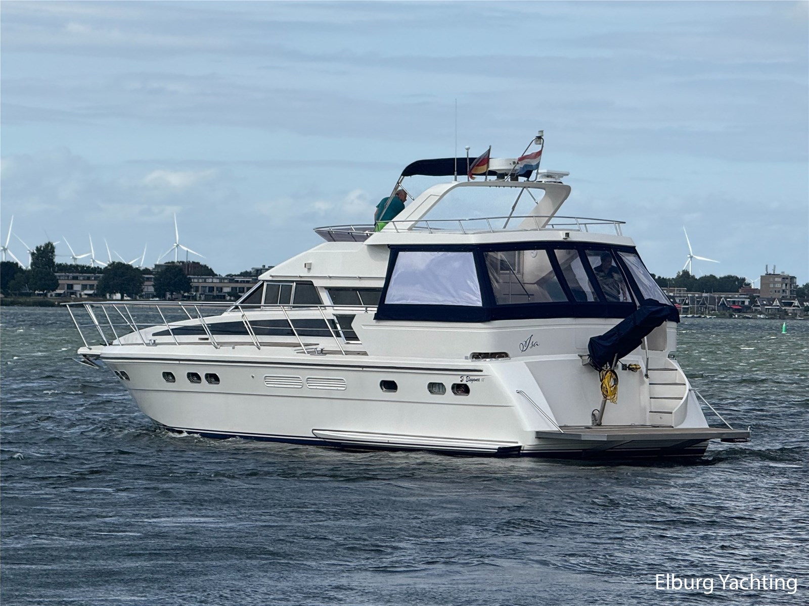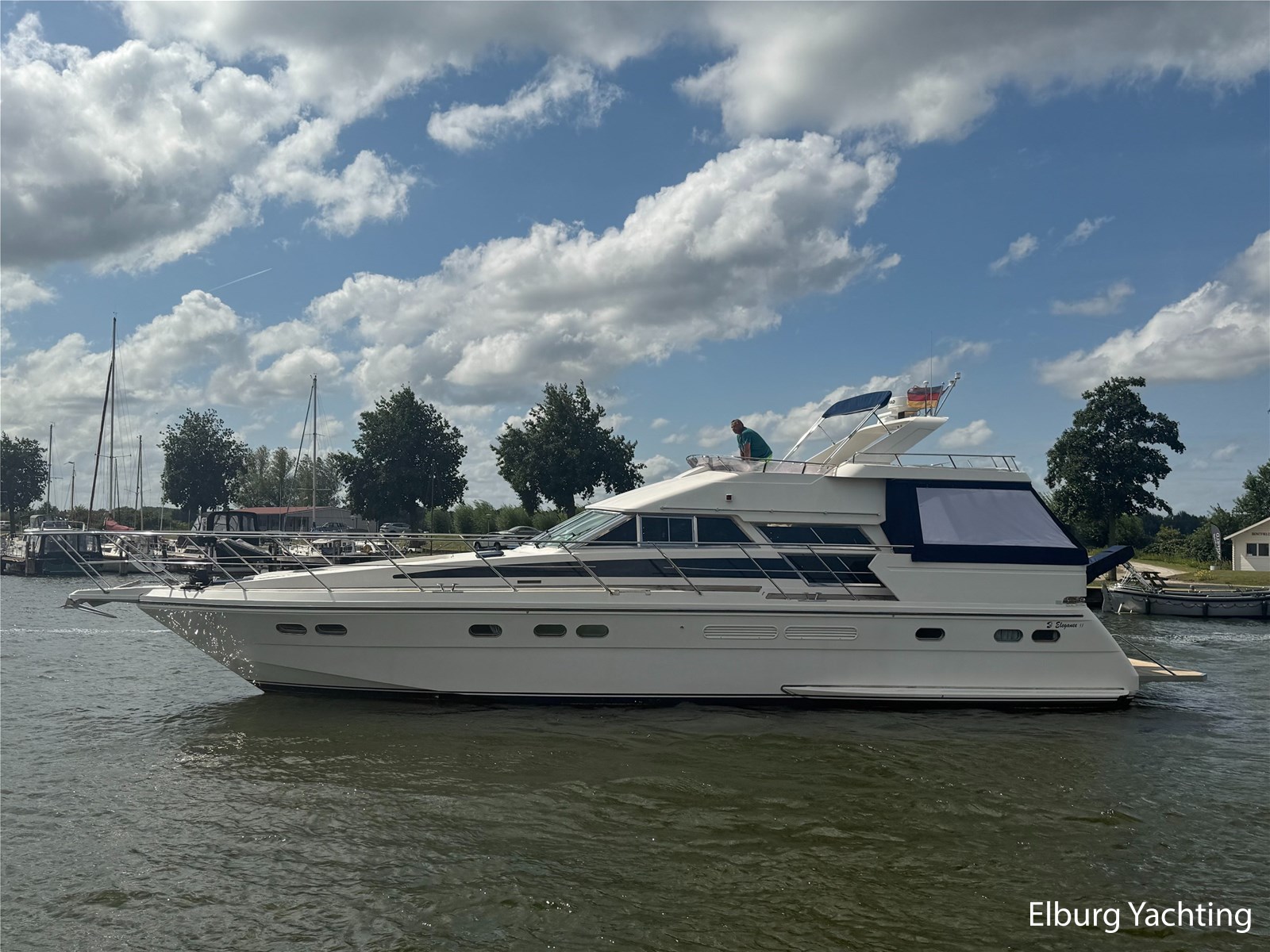 Deze Elegance 53 is een veelzijdig schip met veel ruimte zowel boven als benedendeks. Door haar layout met een achterdek en flybridge biedt het schip veel bruikbare buitenruimte. Verder is er voor de afwerking gebruik gemaakt van hoogwaardige materialen. Deze Elegance wordt verder geleverd met o.a: groot zwemplatform, r.v.s. gangway, luie trap naar zwemplatform, dubbele r.v.s. reling, overdekt achterdek, flybridge, eigenaarshut met aparte ingang achterin salon, schuifraam in salon, volledige tent rondom achterdek (2023), anti fouling (2025), romp gepoetst (2025), boegschroef vernieuwd 2020, bimini op flybridge, vaatwasser.