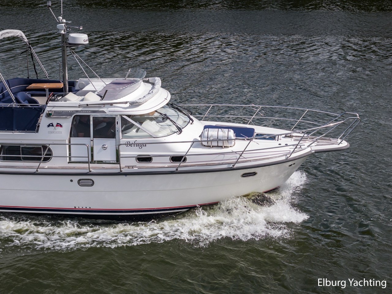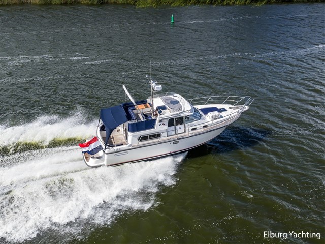 Nimbus 380 Commander, stijlvol en doordacht motorjacht. Zeer complete Nimbus 380 Commander met binnendoor bereikbare flybridge, drie schuifdeuren, veel kastruimte en praktische indeling. Dit Zweedse kwaliteitsjacht is ontworpen met oog voor ruimte, afwerking en functionaliteit. Ideaal voor lange reizen over groot en klein water. Voorzien van vaste trap naar de flybridge, vaste stuurstoelen, biminitop, kuiptent, dubbele rvs reling, trimtabs en twee ankers. Aandrijving via vaste schroefassen met Volvo Penta EVC-systeem. Flybridge zowel binnen- als buitenom bereikbaar. Ieder jaar motoronderhoud uitgevoerd.