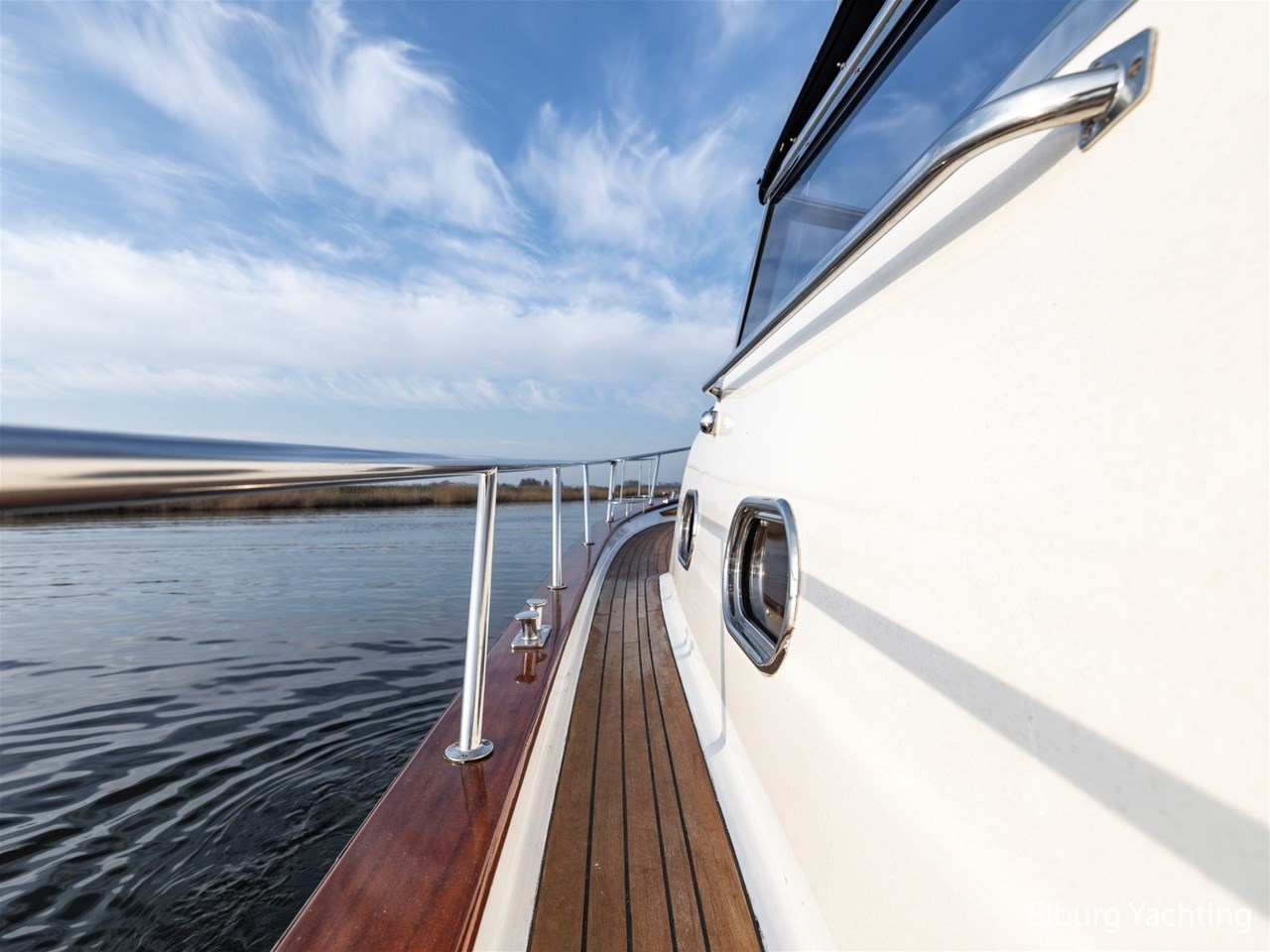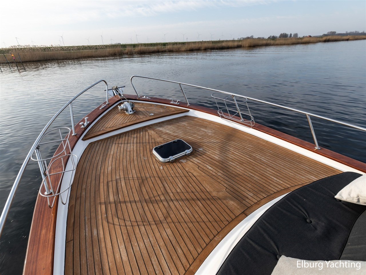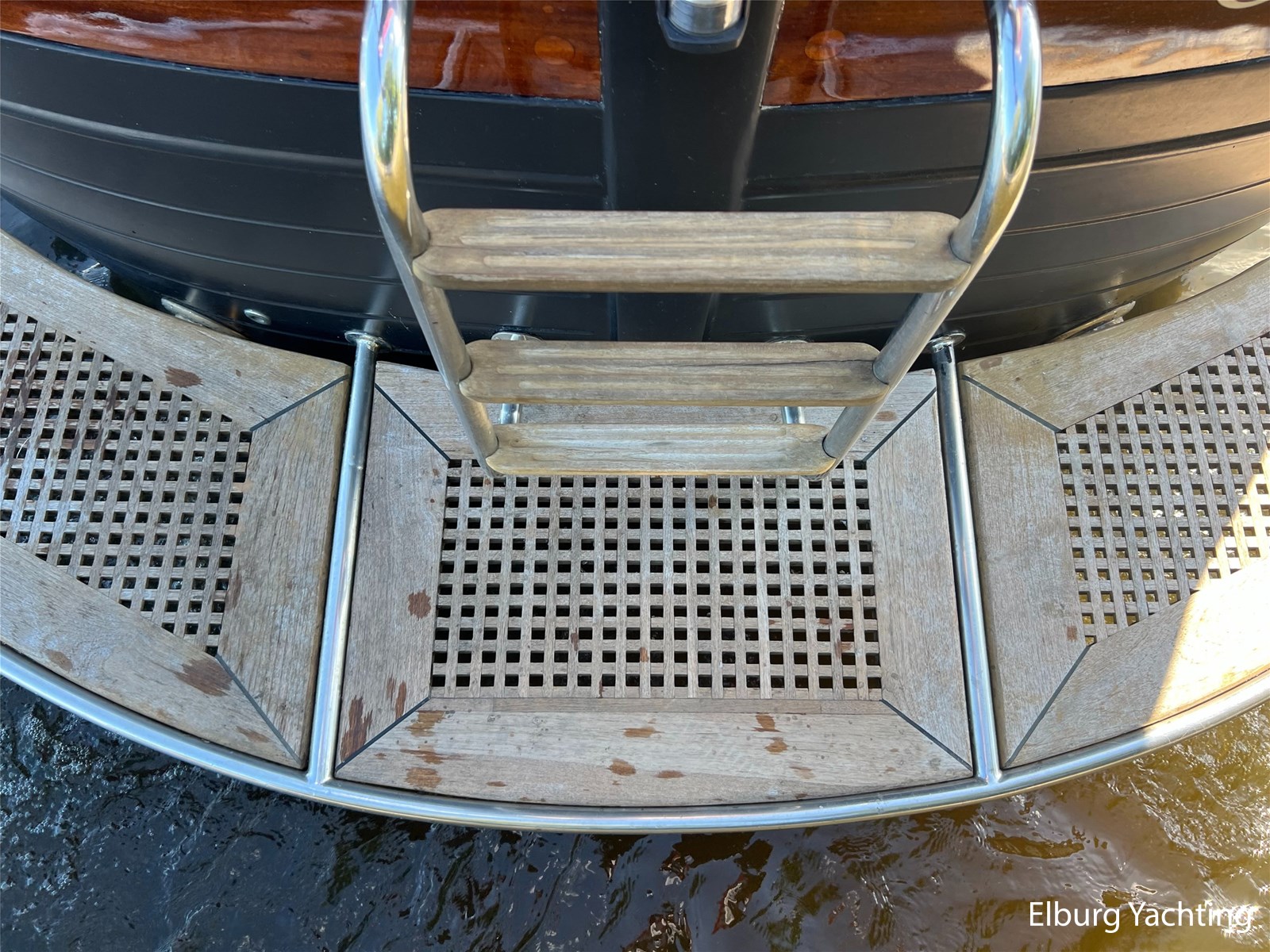 - Aangehangen met teak belegd + r.v.s. zwemtrap