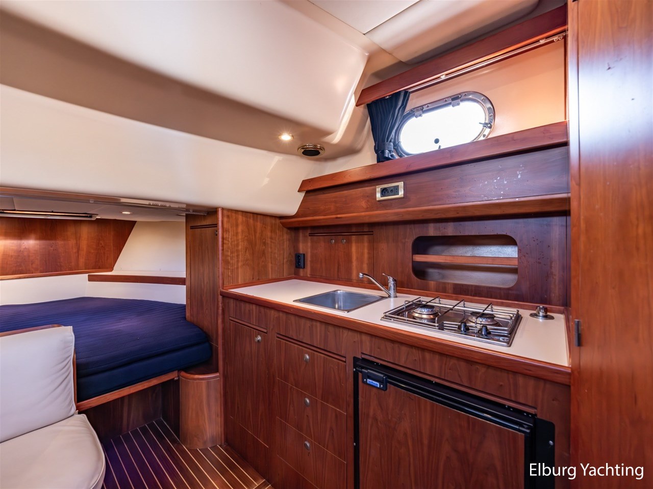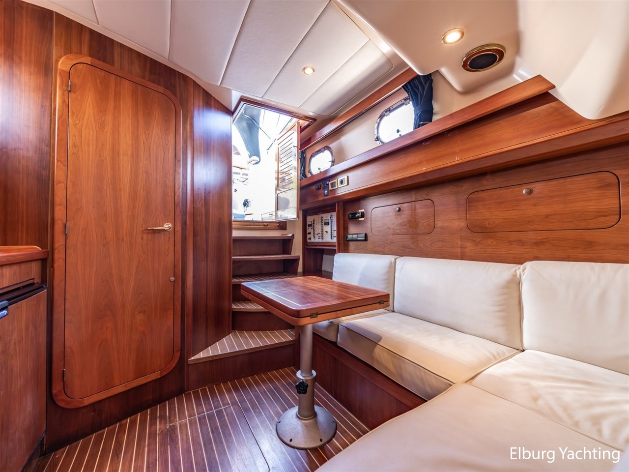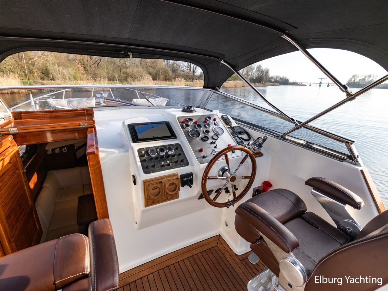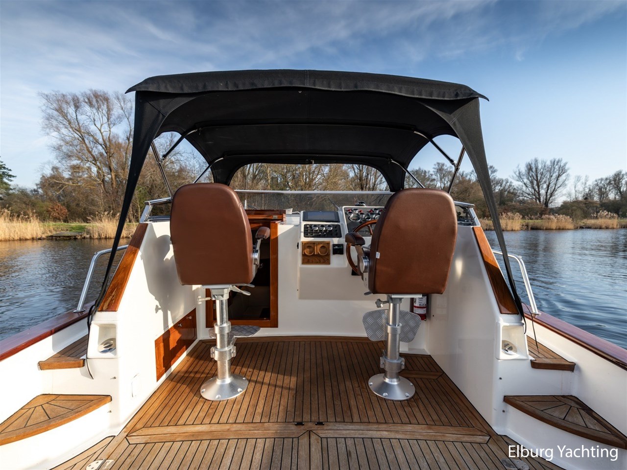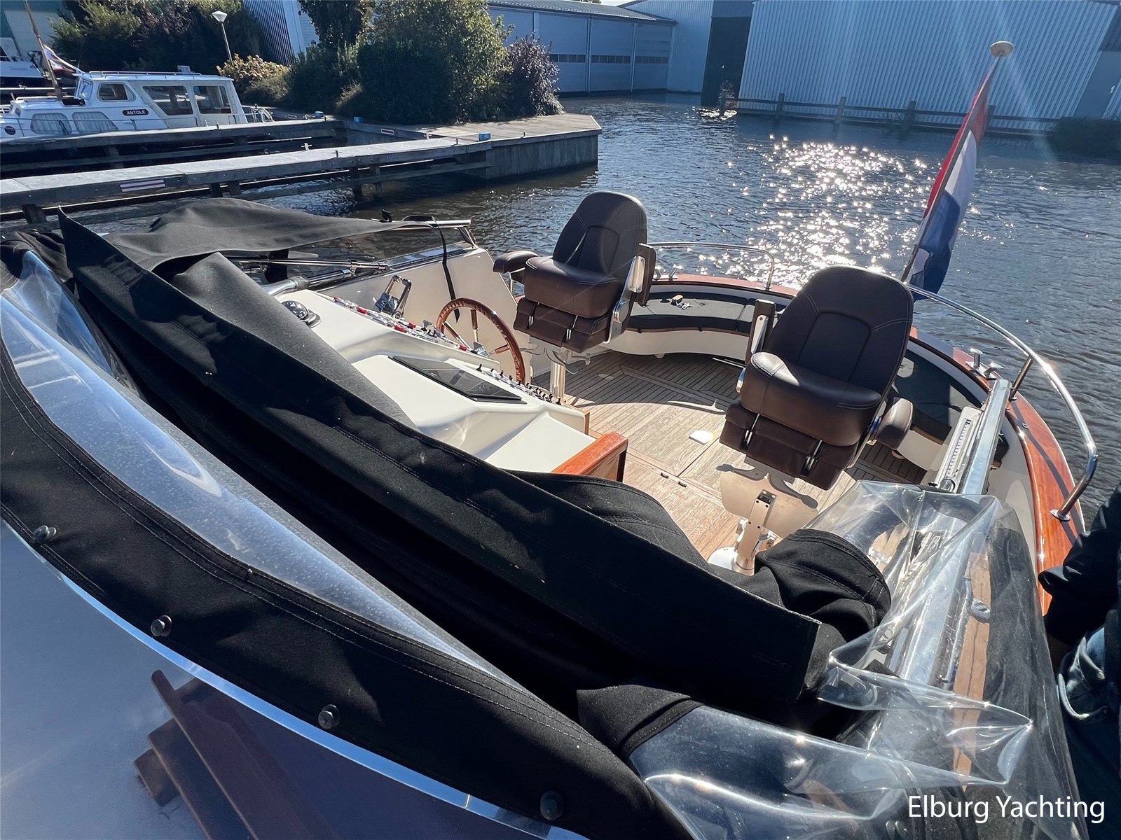 Prachtige Apreamare 10 Semi Cabinato met gezellige leefruimte buiten op zowel het voor- als achterdek. De huidige eigenaar heeft het afgelopen jaren vele zaken vernieuwd en verbeterd aan boord. De volgende werkzaamheden zijn uitgevoerd: Houtwerk/potdeksel in Q2 2025 opnieuw gelakt, keerkoppelingen zijn compleet gereviseerd, boiler 12 liter vervangen door nieuwe 40 liter boiler, Webasto heteluchtverwarming ingebouwd, nieuwe Raymarine plotter touchscreen en nieuwe Raymarine stuurautomaat, Garmin marifoon met AIS, 3000Watt omvormer Victron, Nieuwe accu's geplaatst, Nieuwe koelkast, Nieuwe lattenbodem en matrassen, onderwater schip kaal gehaald en opnieuw antifouling aangebracht. Sinds 2021 heeft dit schip het alle jaren in een schiphuis gelegen. Dit schiphuis in Ossenzijl is separaat overdraagbaar in de vorm van huur of koop. Deze Apreamare 10 Semi Cabinato is voorzien van: vaste bank in kuip en op het voordek met afneembare kussens, biminitop over achterdek, bakskisten, r.v.s. fenderhouders, volledige kuip tent over stuurstand met uitneembare delen, machinekamer bereikbaar via twee grote kuipluiken, dubbele Separ brandstoffilters, twee luxe vaarstoelen in hoogte verstelbaar, trimtabs, radio, victron battery display. De tent is over de stuurstand is neerklapbaar waarmee een minimale doorvaarthoogte van 2,20meter kan worden verkregen.