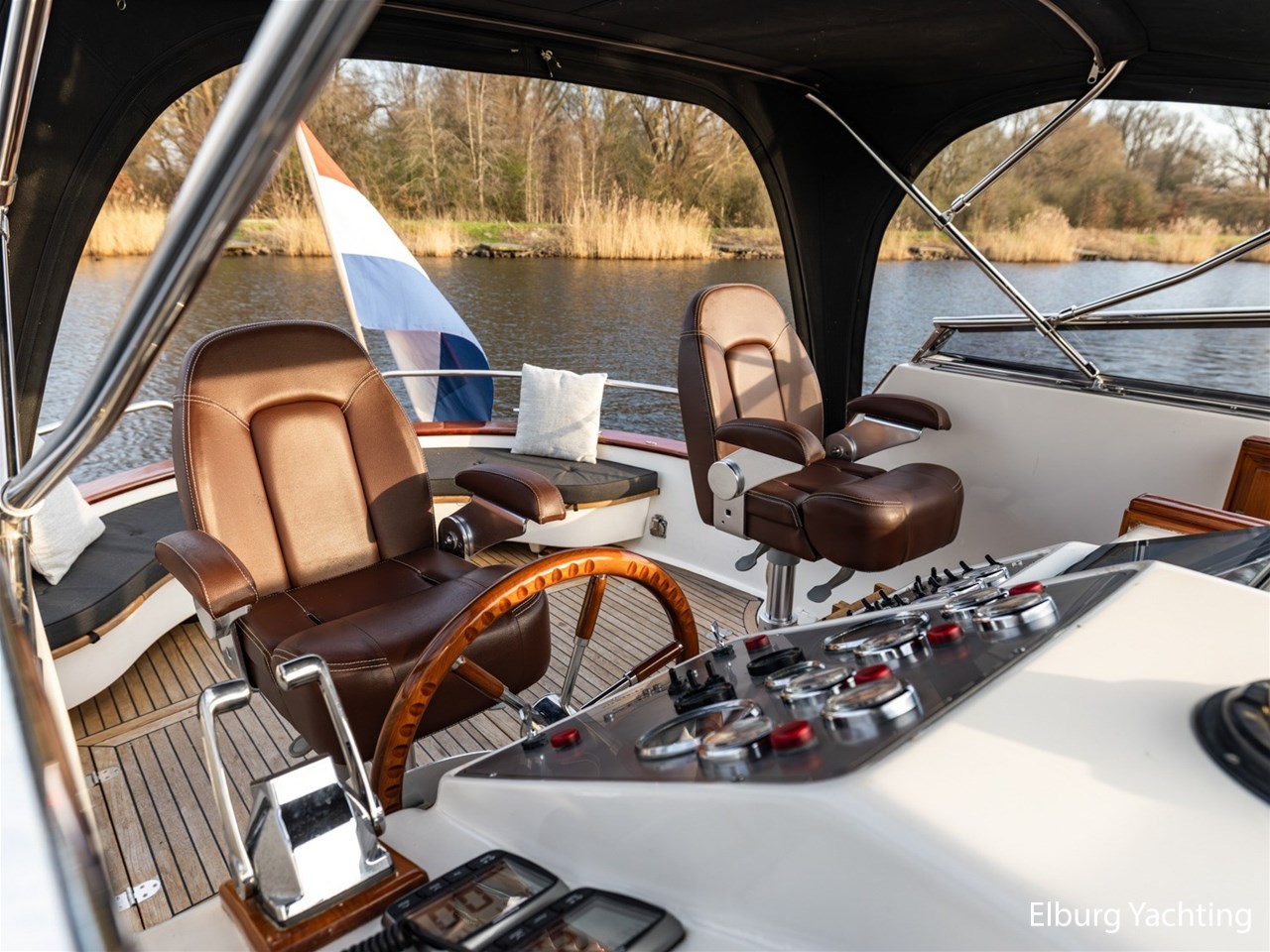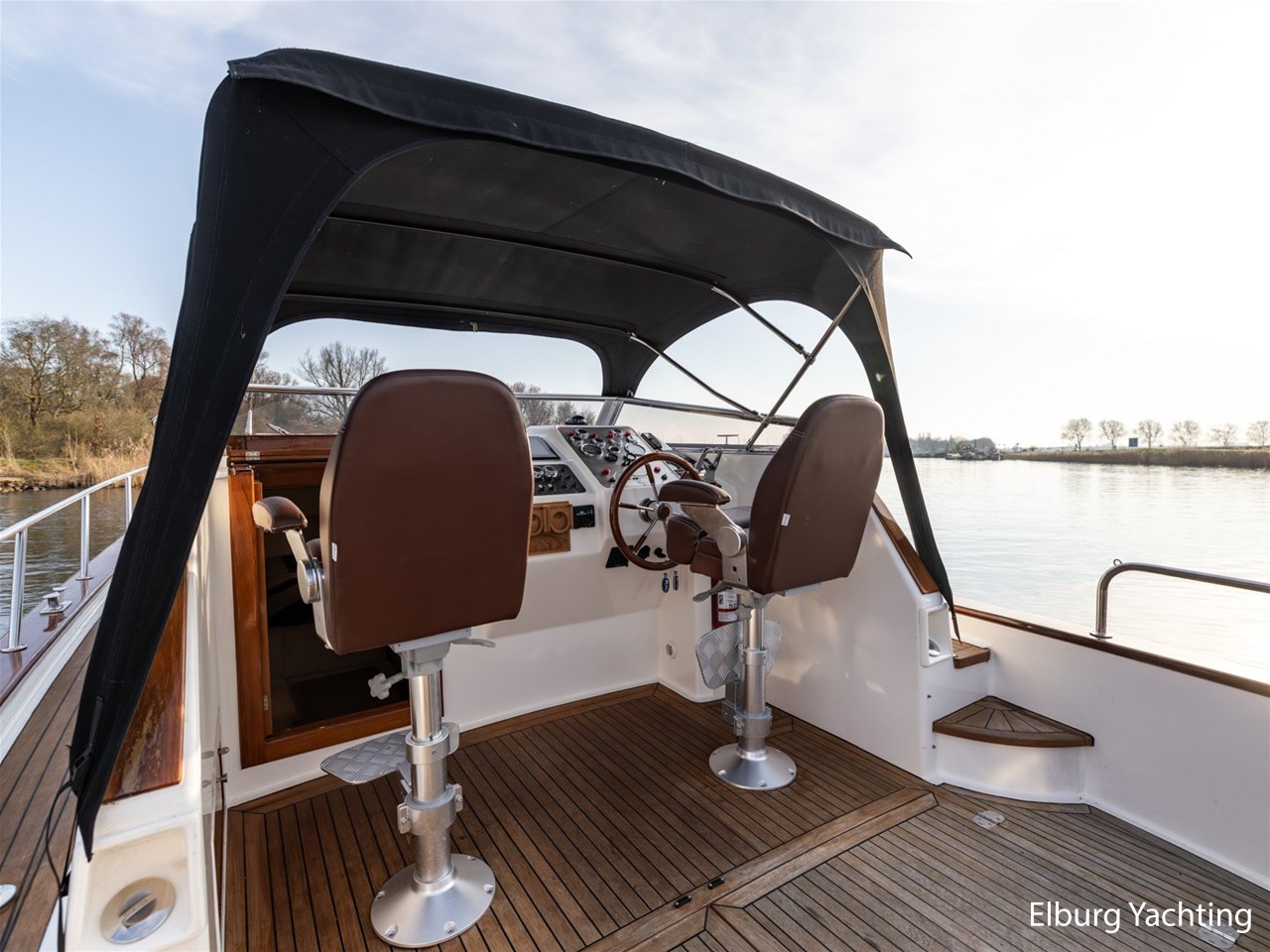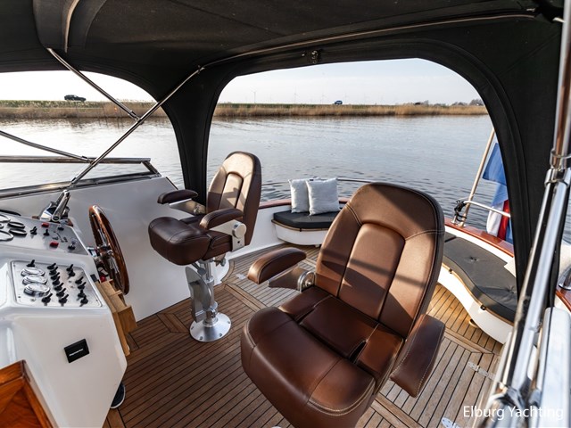 - Teak scheepsinterieur met creme kleurig lederen binnen bekleding