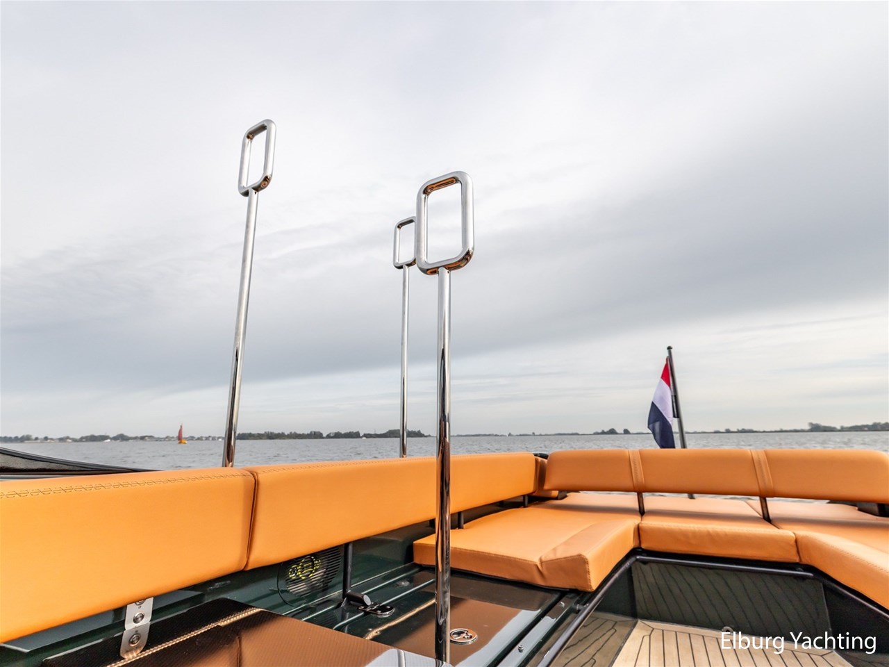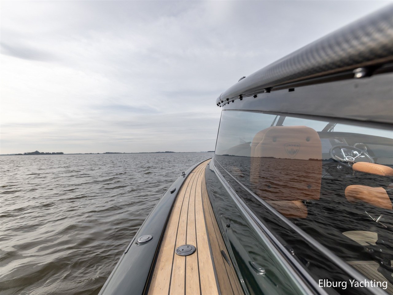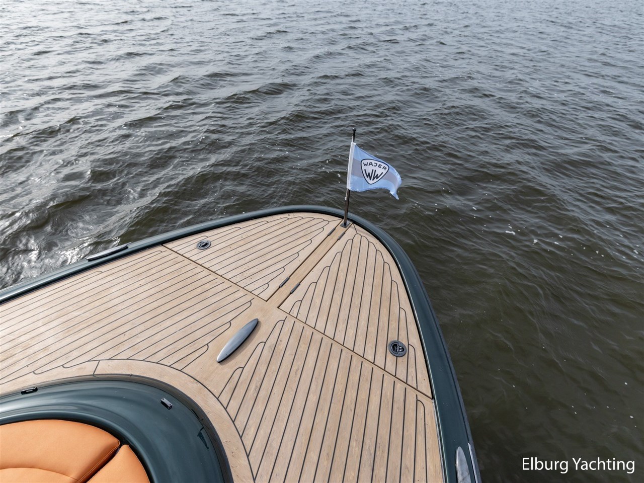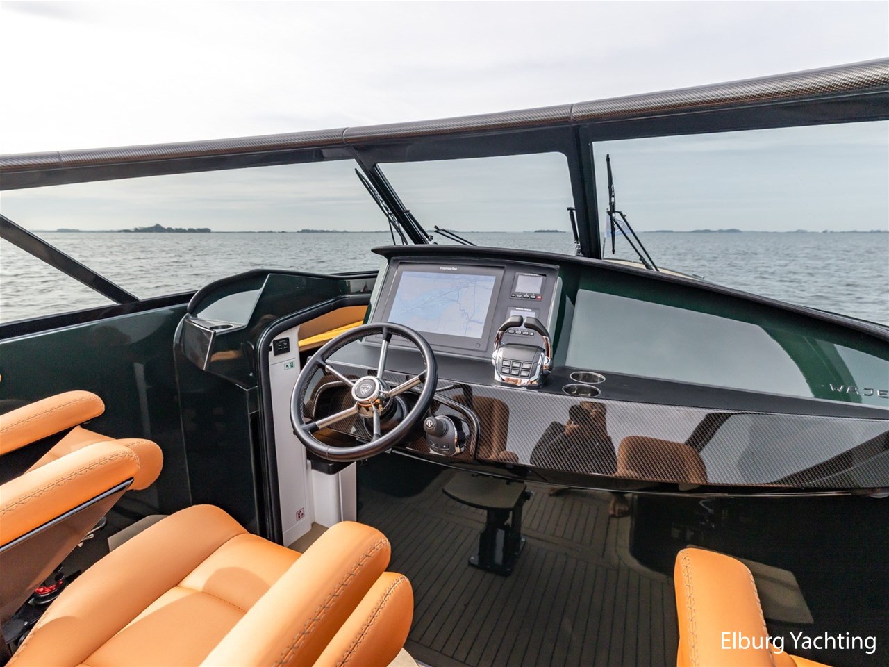 Prachtig uitgevoerde Wajer 38 met de IPS600 topmotorisering van Volvo Penta. Deze Wajer 38 is begin 2025 volledig door Wajer Yachts herspoten in de kleur Bentley Cumbrian Green, de binnen- en buitenbekleding is vernieuwd, er is een uitneembaar ligbed in het achterdek toegevoegd en de zwemtrap is vergemakkelijkt met een uitneembare handreling. In het oog springende elementen is het carbon fiber afgewerkte exterieur design, zwart geanodiseerd r.v.s. dekbeslag, Fusion audio met 4 versterkers / 8 speakers / 2 woofers, onderwaterverlichting, Webasto verwarming en airconditioning. Verder is deze Wajer 38 uitgerust met: dimbare sfeerverlichting in de kuip en kajuit, zonnebed op het voordek met afdekhoes, ankerkluis met bergruimte en water aansluiting, inklapbare fenderogen en bolders, wegneembare r.v.s. handgeleiders voor op- en afstappen van boord, klapbare voorruit, multifunctioneel display voor bediening boordsystemen en verlichting, drie keer Stidd stoelen met X-craft vering, afneembare zwarte biminitop over de stuurstand, volledige Wajer afdekhoes over de kuip. De kuipbank kan gebruikt worden in U-opstelling, volledig zonnebed of door het wegnemen van het middenstuk wordt er een volledige doorloop gecreëerd naar het zwemplateau. Topsnelheid ca. 45 knopen, kruissnelheid ca. 25 knopen.