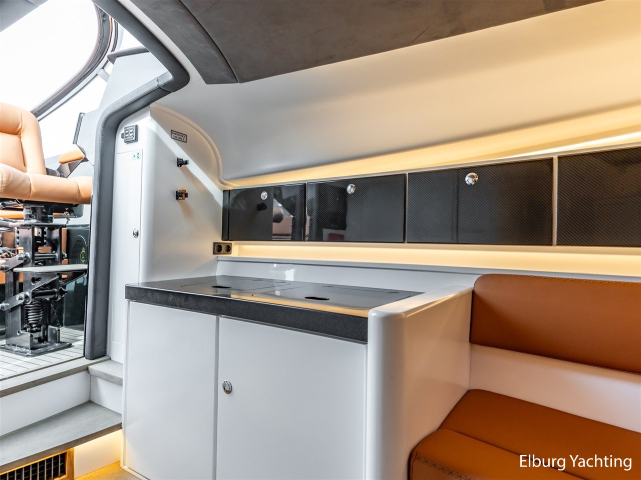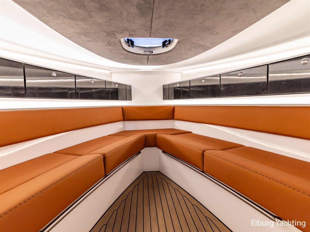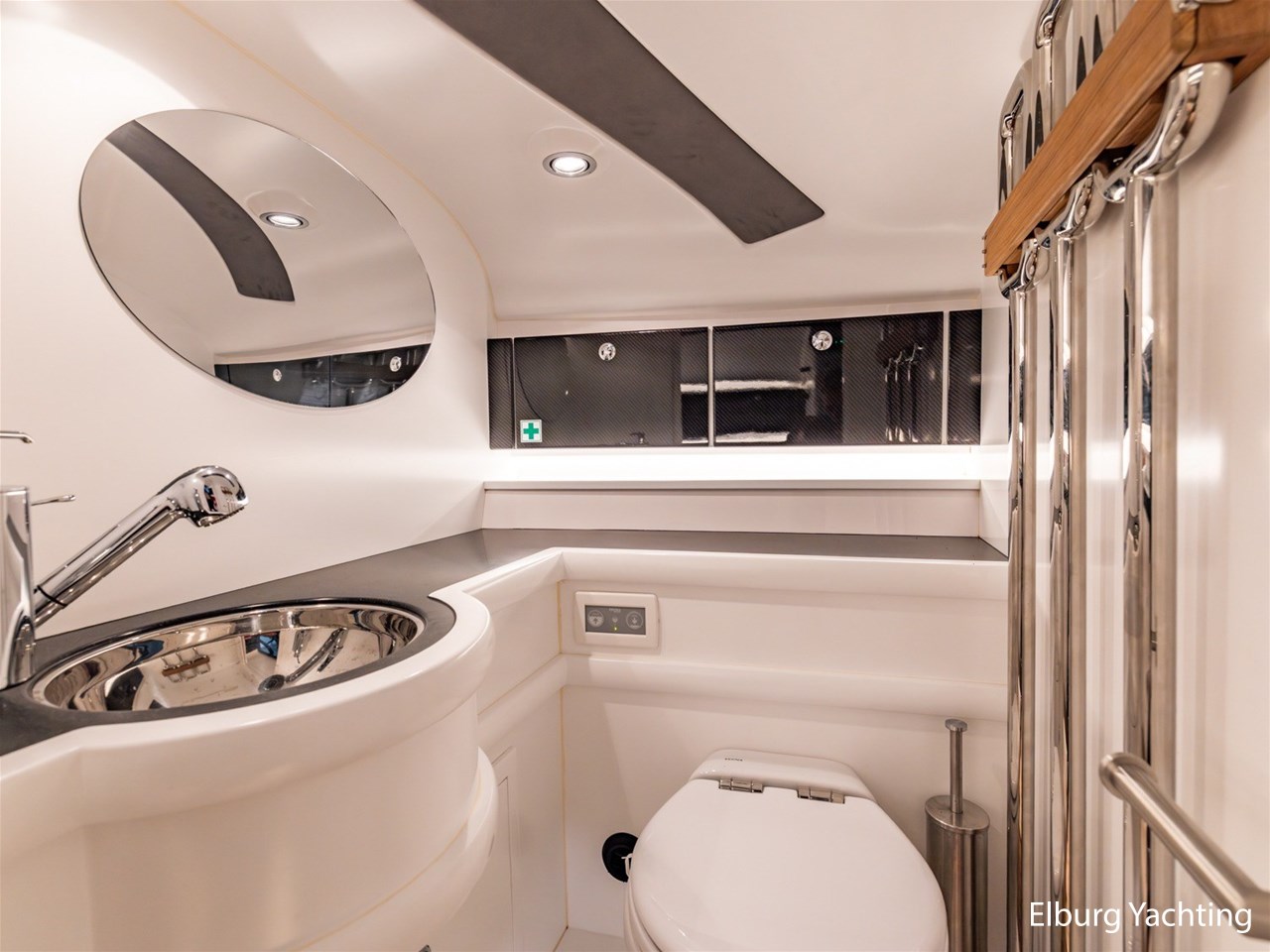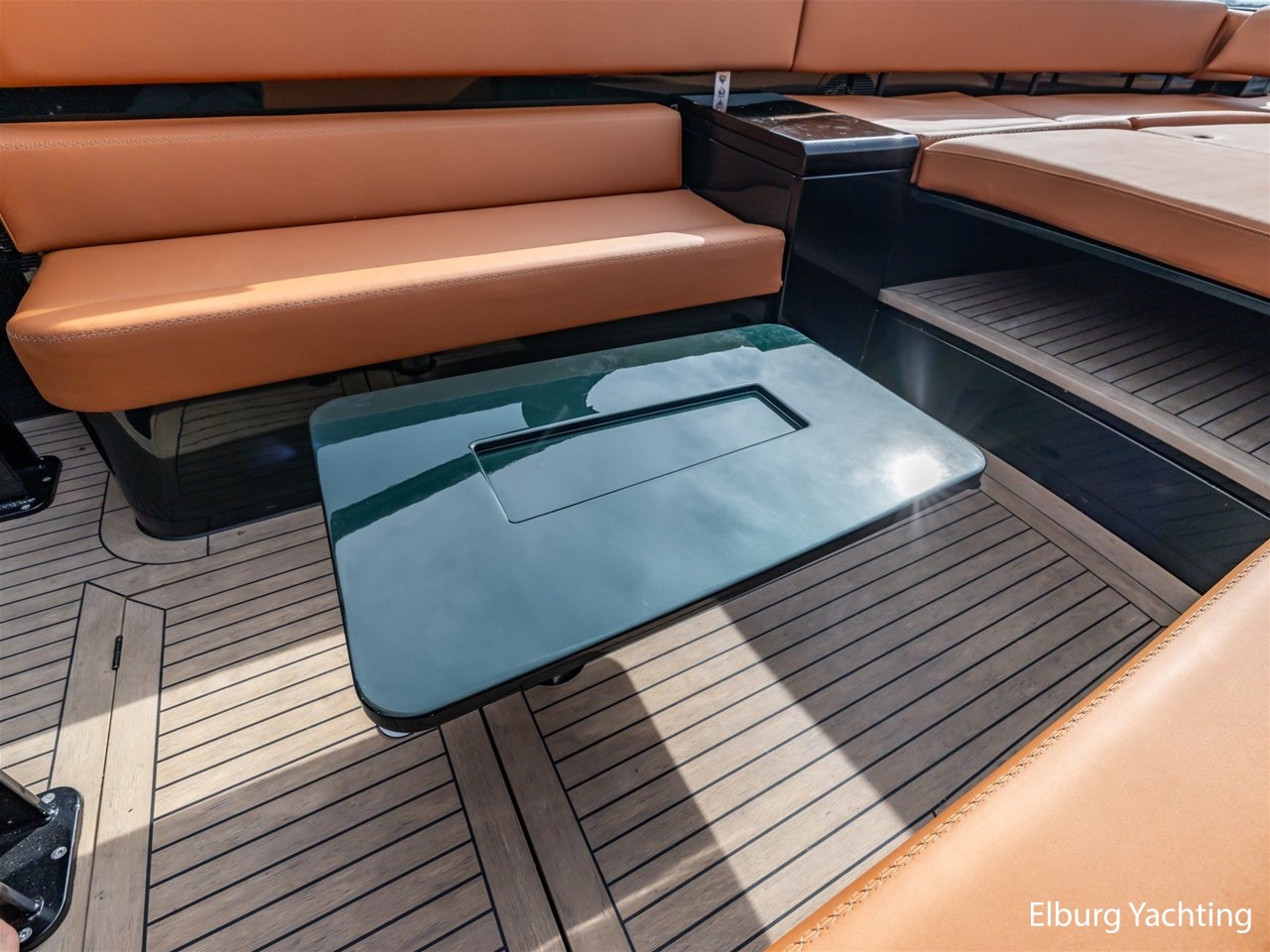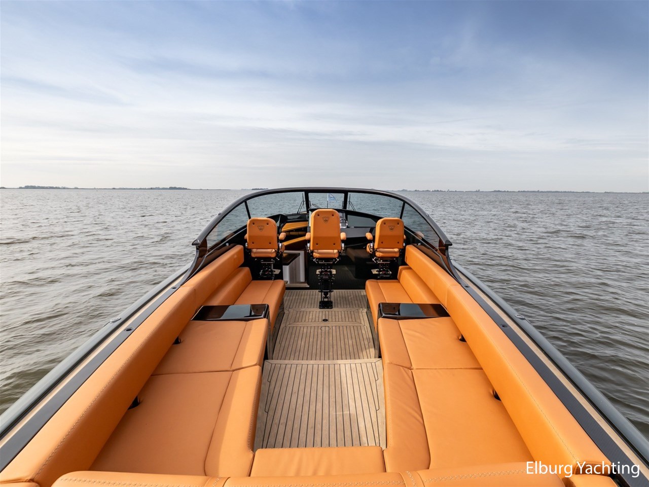 Prachtig uitgevoerde Wajer 38 met de IPS600 topmotorisering van Volvo Penta. Deze Wajer 38 is begin 2025 volledig door Wajer Yachts herspoten in de kleur Bentley Cumbrian Green, de binnen- en buitenbekleding is vernieuwd, er is een uitneembaar ligbed in het achterdek toegevoegd en de zwemtrap is vergemakkelijkt met een uitneembare handreling. In het oog springende elementen is het carbon fiber afgewerkte exterieur design, zwart geanodiseerd r.v.s. dekbeslag, Fusion audio met 4 versterkers / 8 speakers / 2 woofers, onderwaterverlichting, Webasto verwarming en airconditioning. Verder is deze Wajer 38 uitgerust met: dimbare sfeerverlichting in de kuip en kajuit, zonnebed op het voordek met afdekhoes, ankerkluis met bergruimte en water aansluiting, inklapbare fenderogen en bolders, wegneembare r.v.s. handgeleiders voor op- en afstappen van boord, klapbare voorruit, multifunctioneel display voor bediening boordsystemen en verlichting, drie keer Stidd stoelen met X-craft vering, afneembare zwarte biminitop over de stuurstand, volledige Wajer afdekhoes over de kuip. De kuipbank kan gebruikt worden in U-opstelling, volledig zonnebed of door het wegnemen van het middenstuk wordt er een volledige doorloop gecreëerd naar het zwemplateau. Topsnelheid ca. 45 knopen, kruissnelheid ca. 25 knopen.