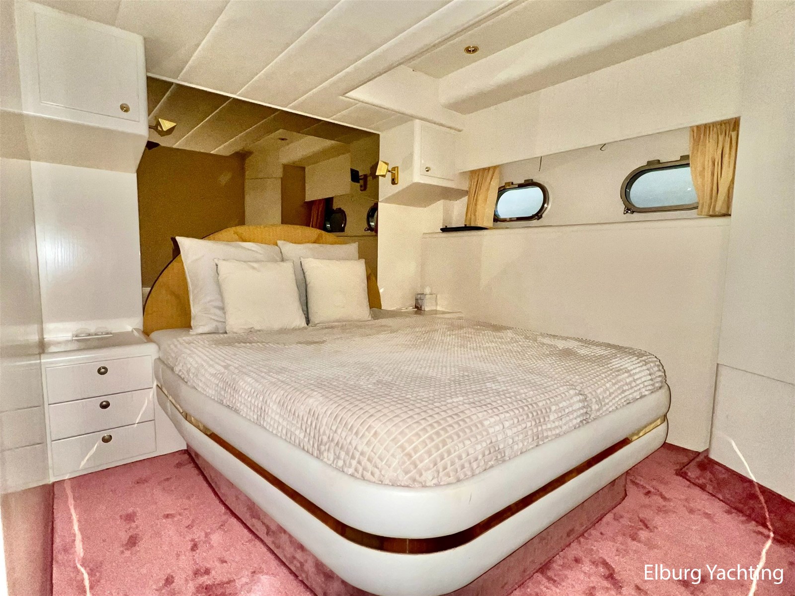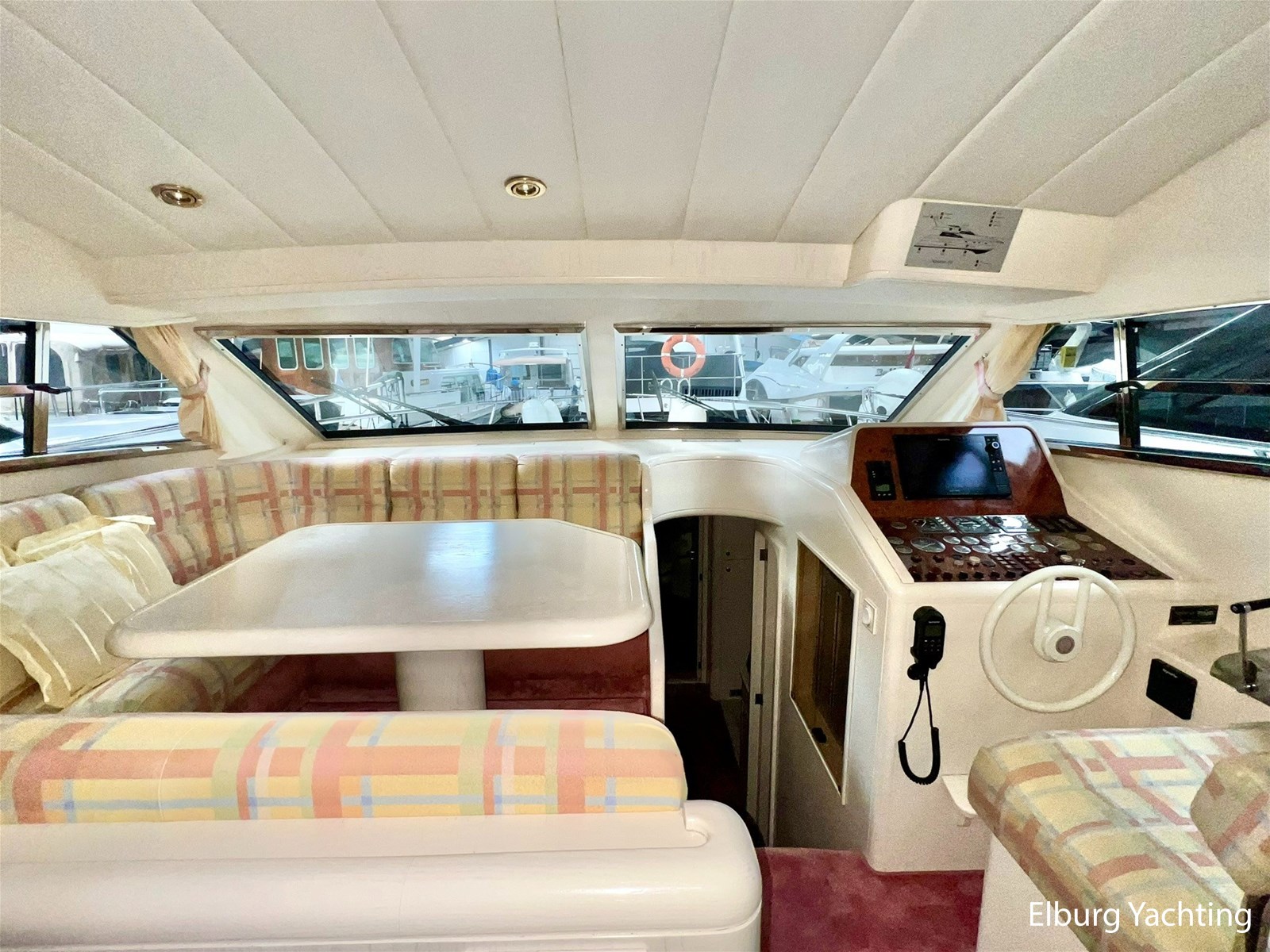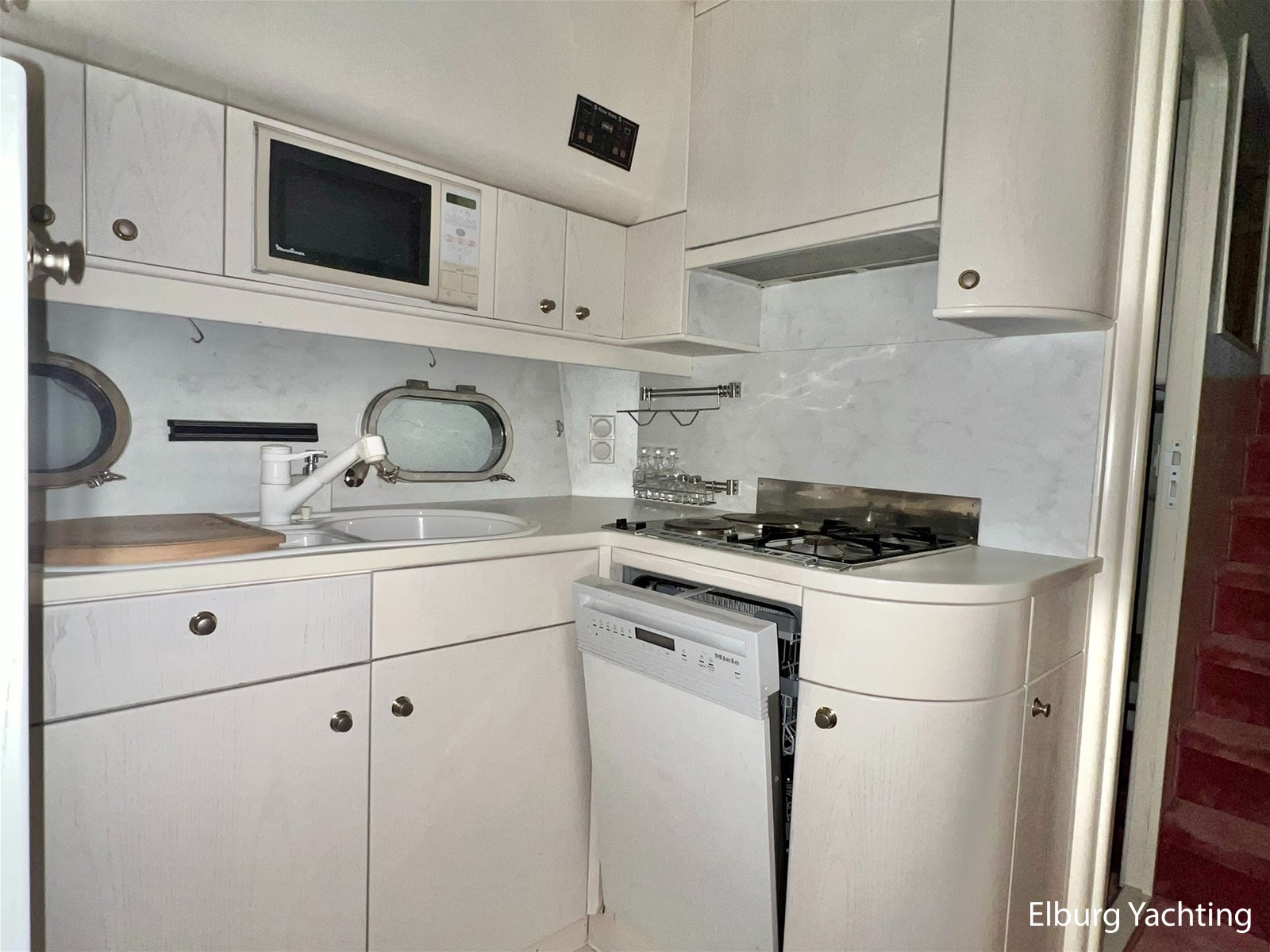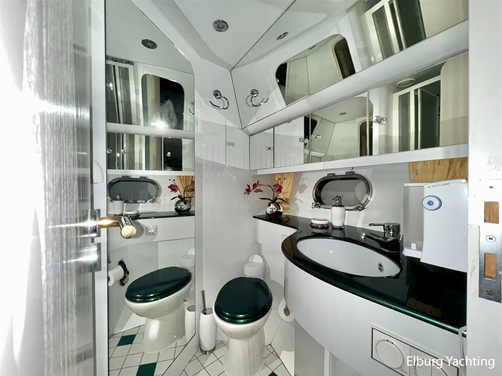 Deze ruime en sportieve Neptunus 156 verkeert in nette staat voor zijn leeftijd en wordt verkocht door de eerste eigenaar. Het jacht beschikt over drie hutten voor minimaal 6 opvarenden en heeft twee aparte badkamers. De open kuip en de salon zijn gelijkvloers met elkaar verbonden. Een complete tent dekt de open kuip af met grote zichtvensters. Via een vaste trap in de kuip krijg je krijg je toegang tot de riante flybridge met een U-vormige zitbank. De stuurstand heeft een 2-persoons vaarbank en biedt een overzichtelijke dashboard met alle benodigde apparatuur waaronder een vernieuwde Raymarine Axiom Pro 9 S plotter. De salon wordt betreden via een afsluitbare r.v.s. schuifpui. Een riante L-bank met twee geïntegreerde fauteuils bieden veel zit comfort. Er zijn veel opbergmogelijkheden in banken en kasten. De dinette bevindt zich tegen over de stuurstand waardoor de gehele crew op vaarhoogte kan meekijken. Benedendeks bevind zich de kombuis met een koelkast / vriezer / magnetron / vaatwasser / kookplaat en spoelbak. Aan SB-zijde bevind zich een 2 x 1-persoons gastenhut en aan BB-zijde een 1 x 2 persoons hut met frans bed. De gasten badkamer bevind zich midscheeps en is vrij toegankelijk. In het voorschip bevind zich de eigenaarshut met een 1 x 2 persoons bed met badkamer en-suite. Onder het bed van de voorhut bevind zich een ruime berging. Via een breed luik in de kuipvloer wordt het achterschip betreden. In het achterschip bevind zich opbergruimte, zowel een wasmachine als droger, de generator en nog verdere techniek. Via het achterschip is er een doorloop naar de machinekamer. De bakboordmotor is in de winter van 2023-2024 vervangen, rekeningen van deze werkzaamheden zijn beschikbaar. Deze Neptunus 156 is verder voorzien van: Afneembare kussens voor het achterdek, flybridge en voordek, bimini top over de flybridge, delen op de flybridge voorzien van afdekhoezen, r.v.s. fenderhouders, afsluitbare kuip met deur naar zwemplateau, buiten verlichting, 4 x schuifraam in salon voor ventilatie + 2 horren, muggenhorren voor patrijspoorten, afneembaar zonnescherm op voorruit, zijladder. Stahoogte in het interieur ca. 2 meter.